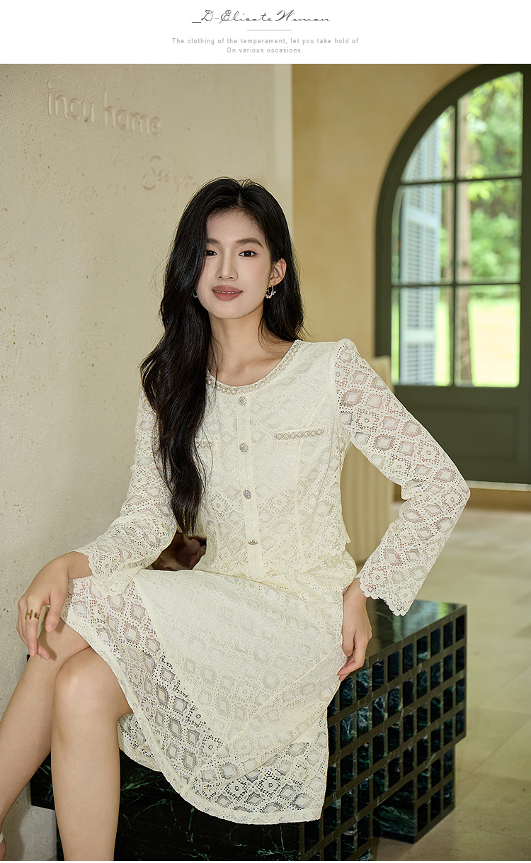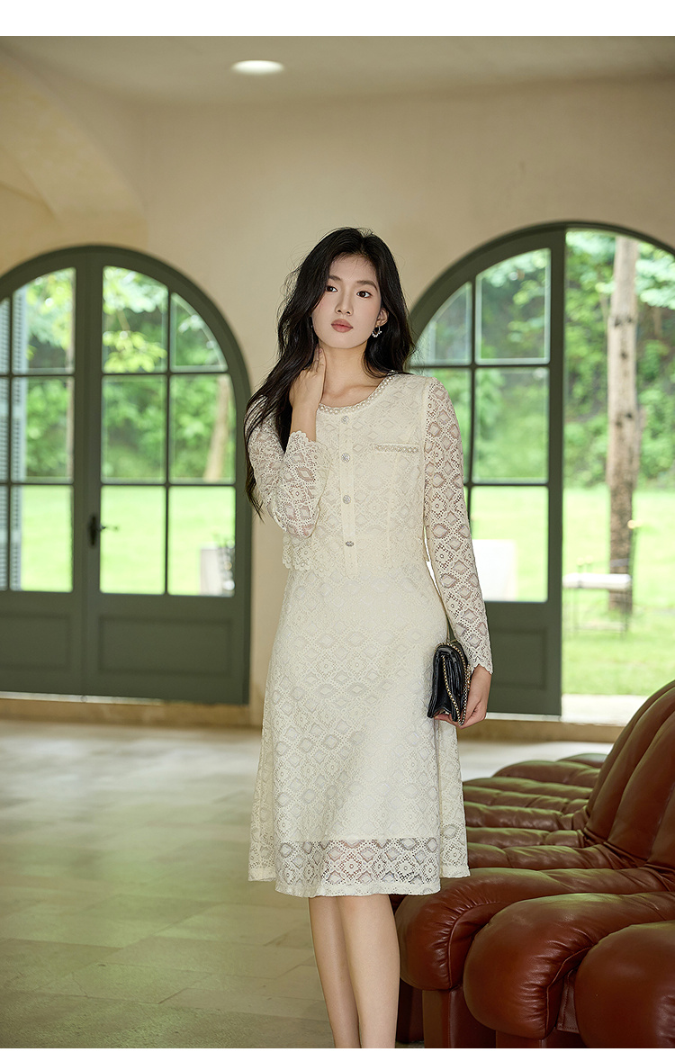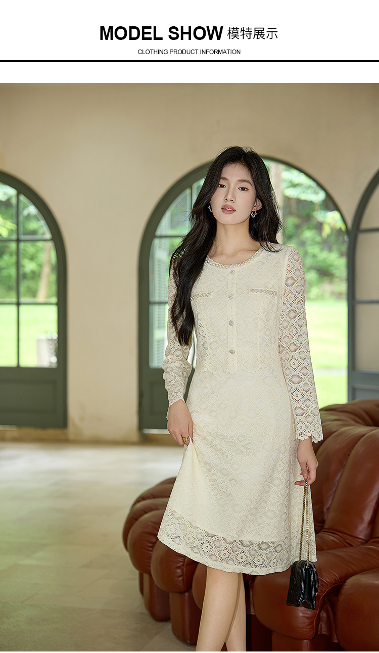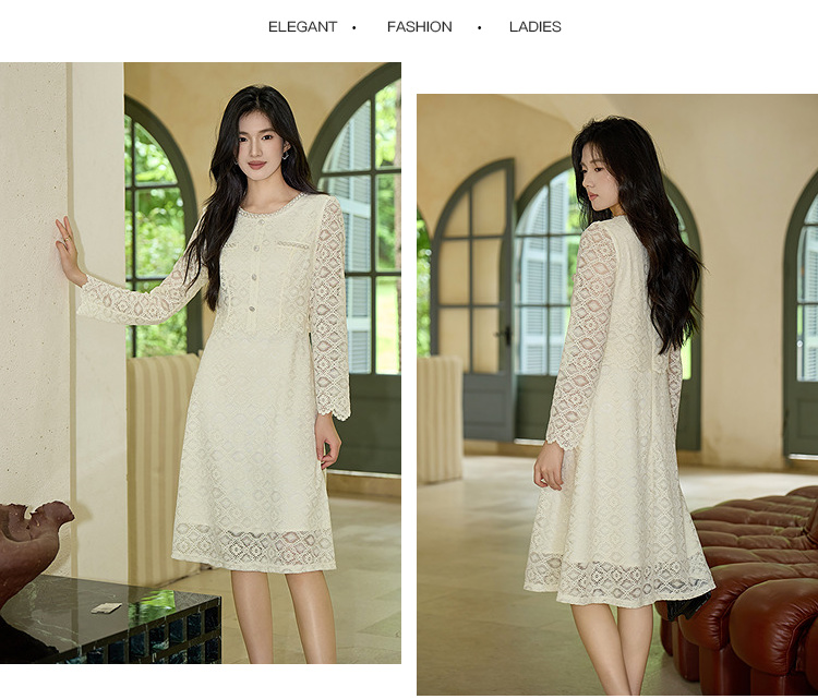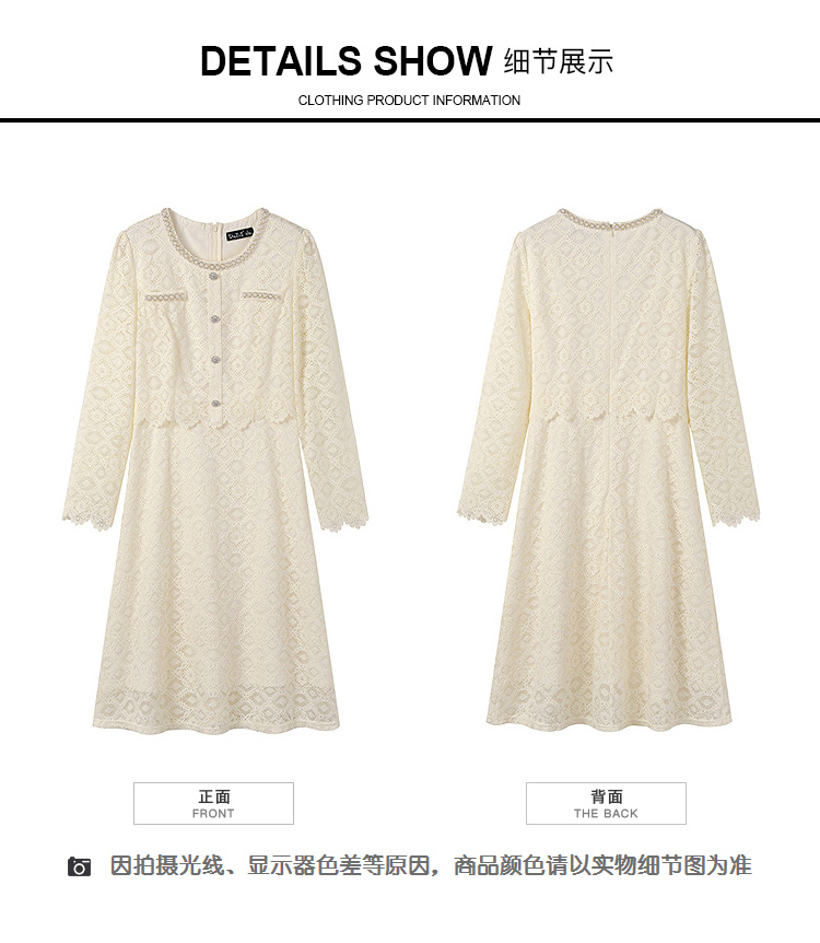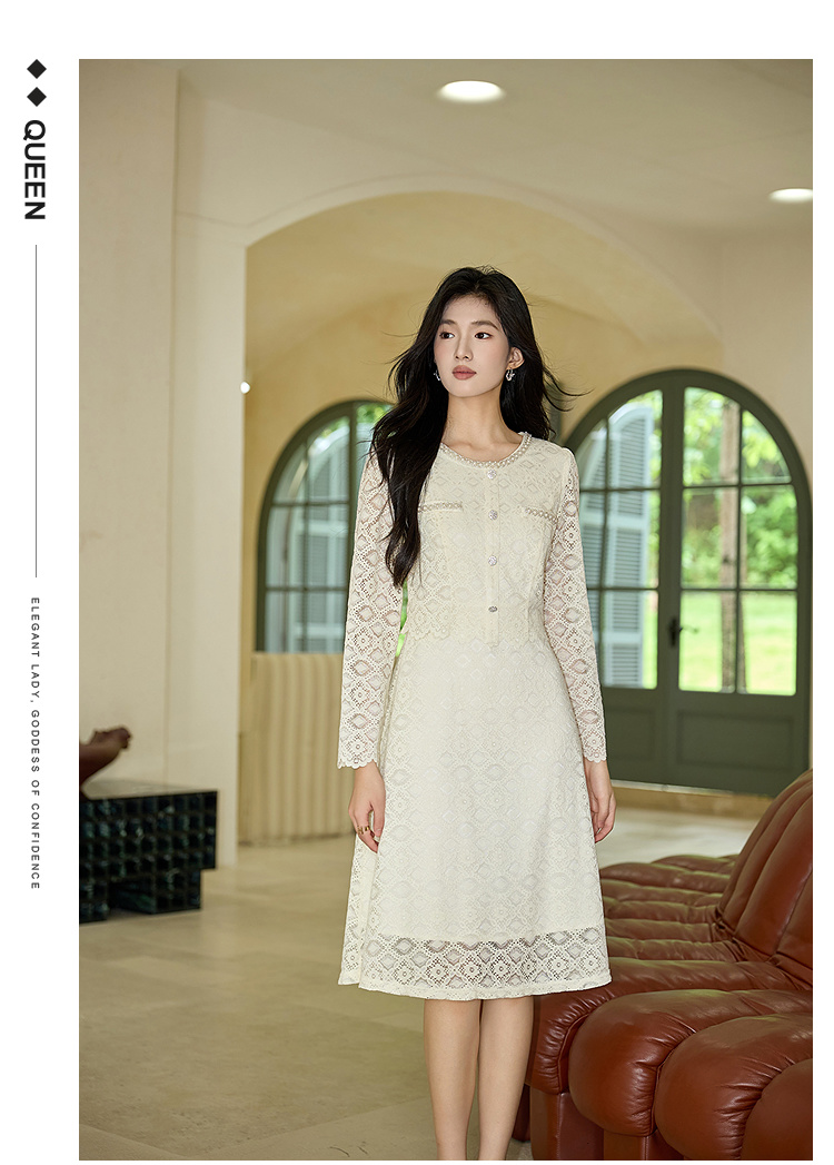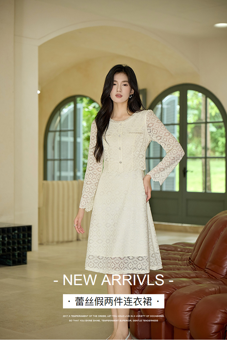 奢姿大码女装2025秋装新款胖妹妹假两件优雅镂空蕾丝长袖连衣裙9953853632