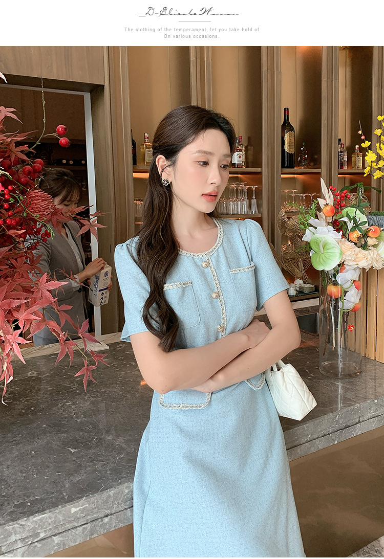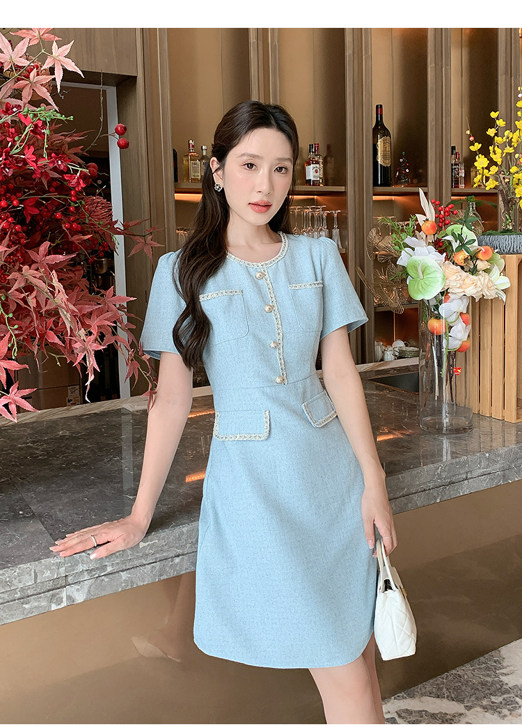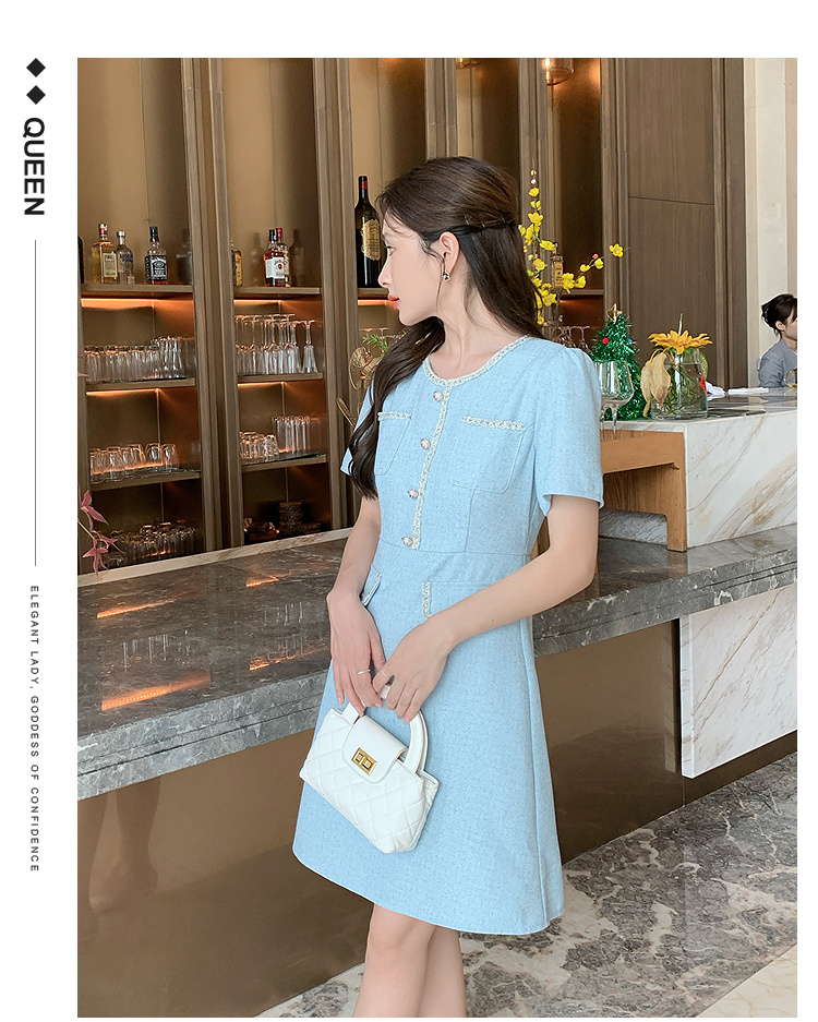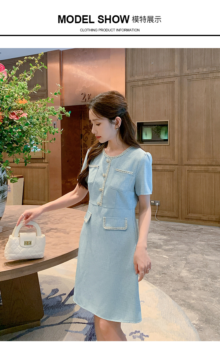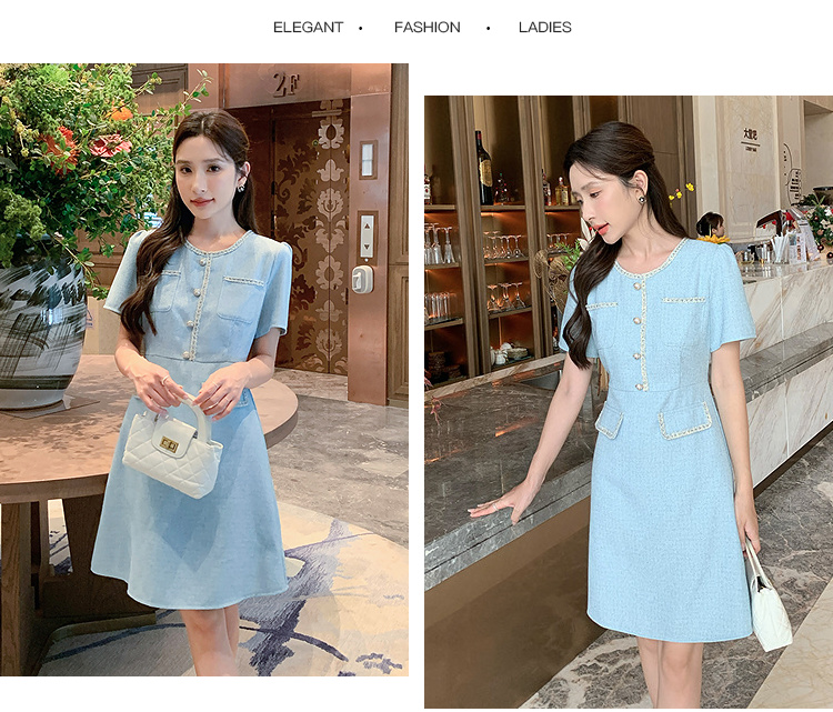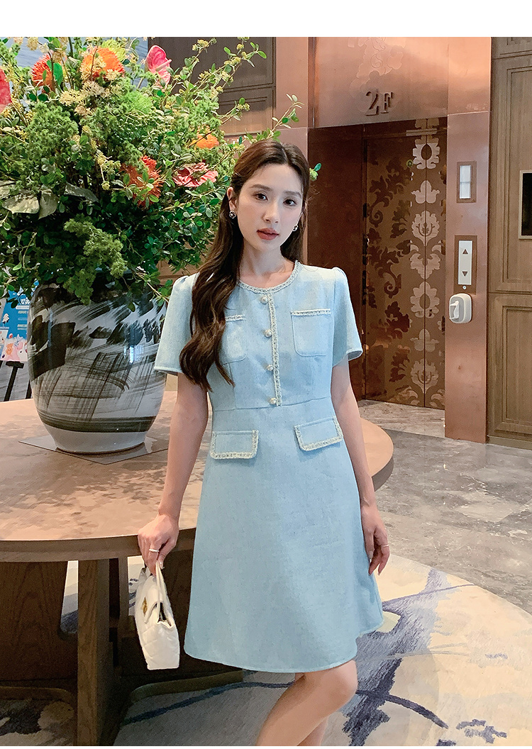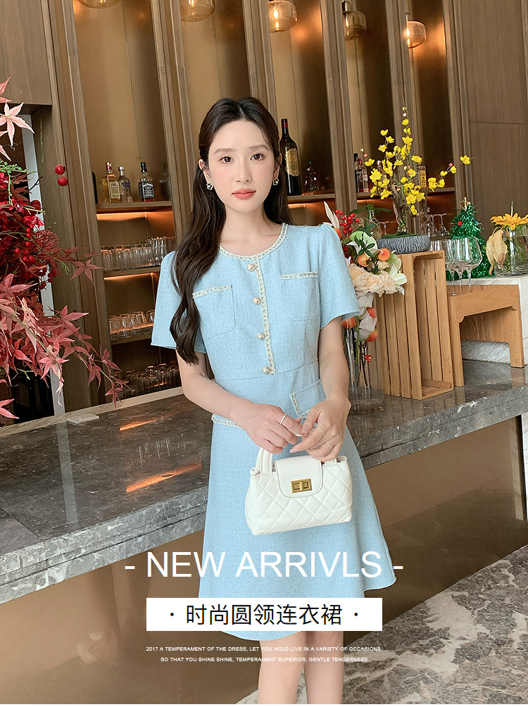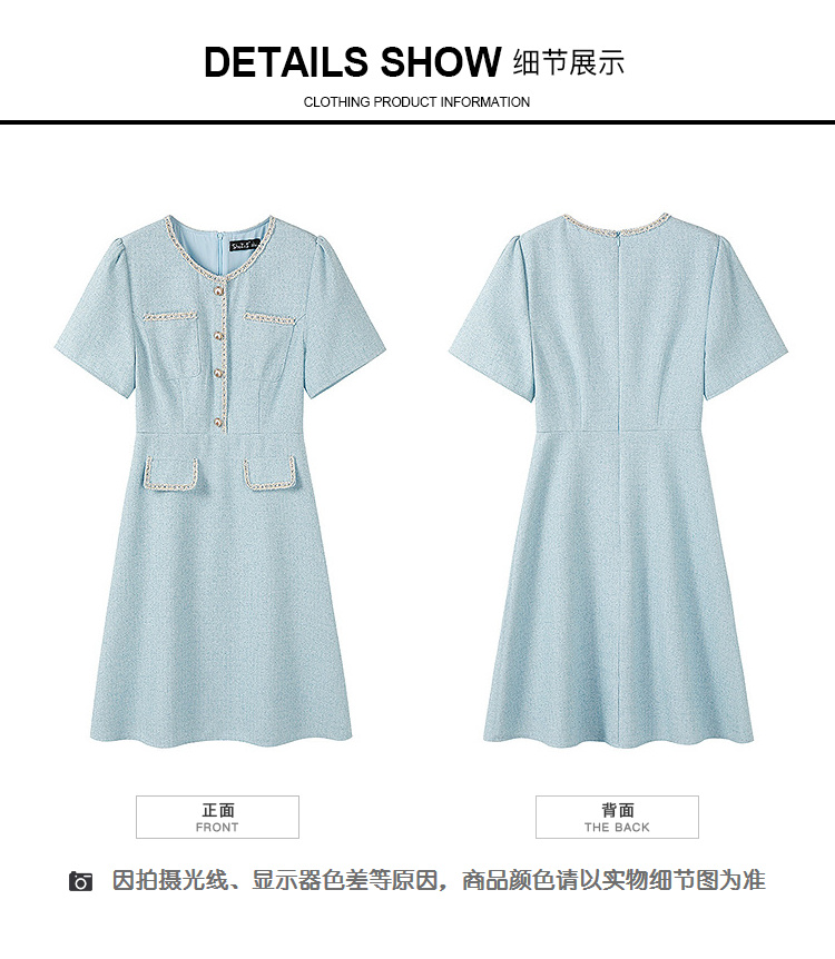 奢姿大码女装2025夏季时尚减龄圆领连衣裙胖妹妹气质纽扣织带裙子9952869695