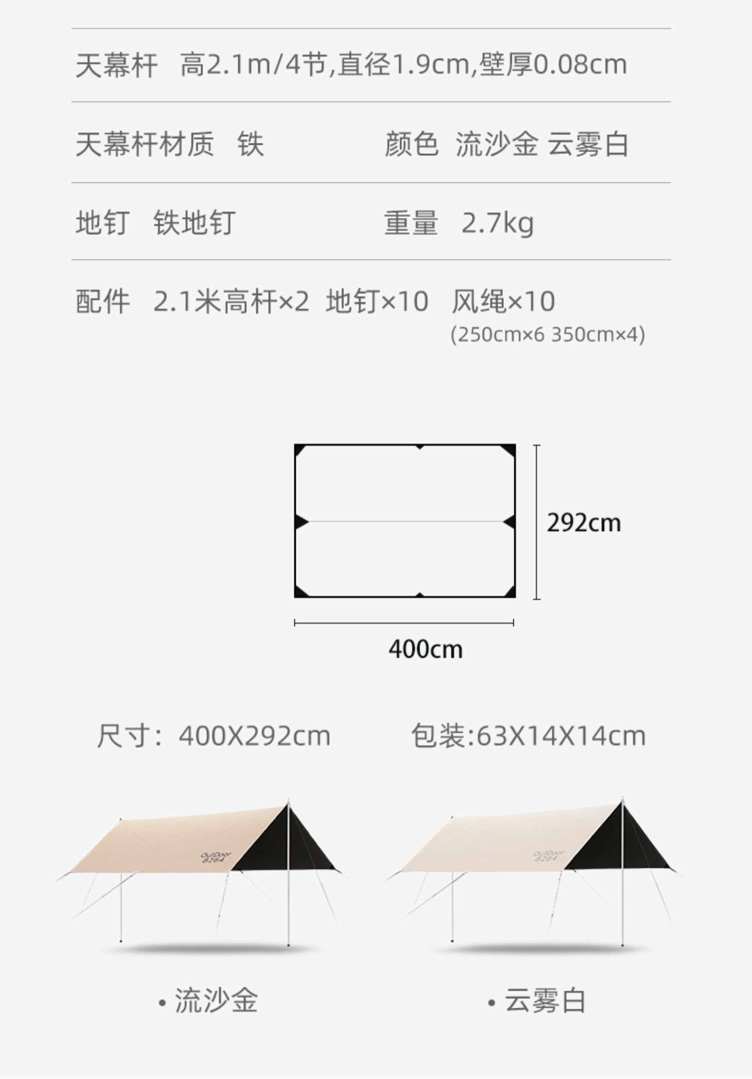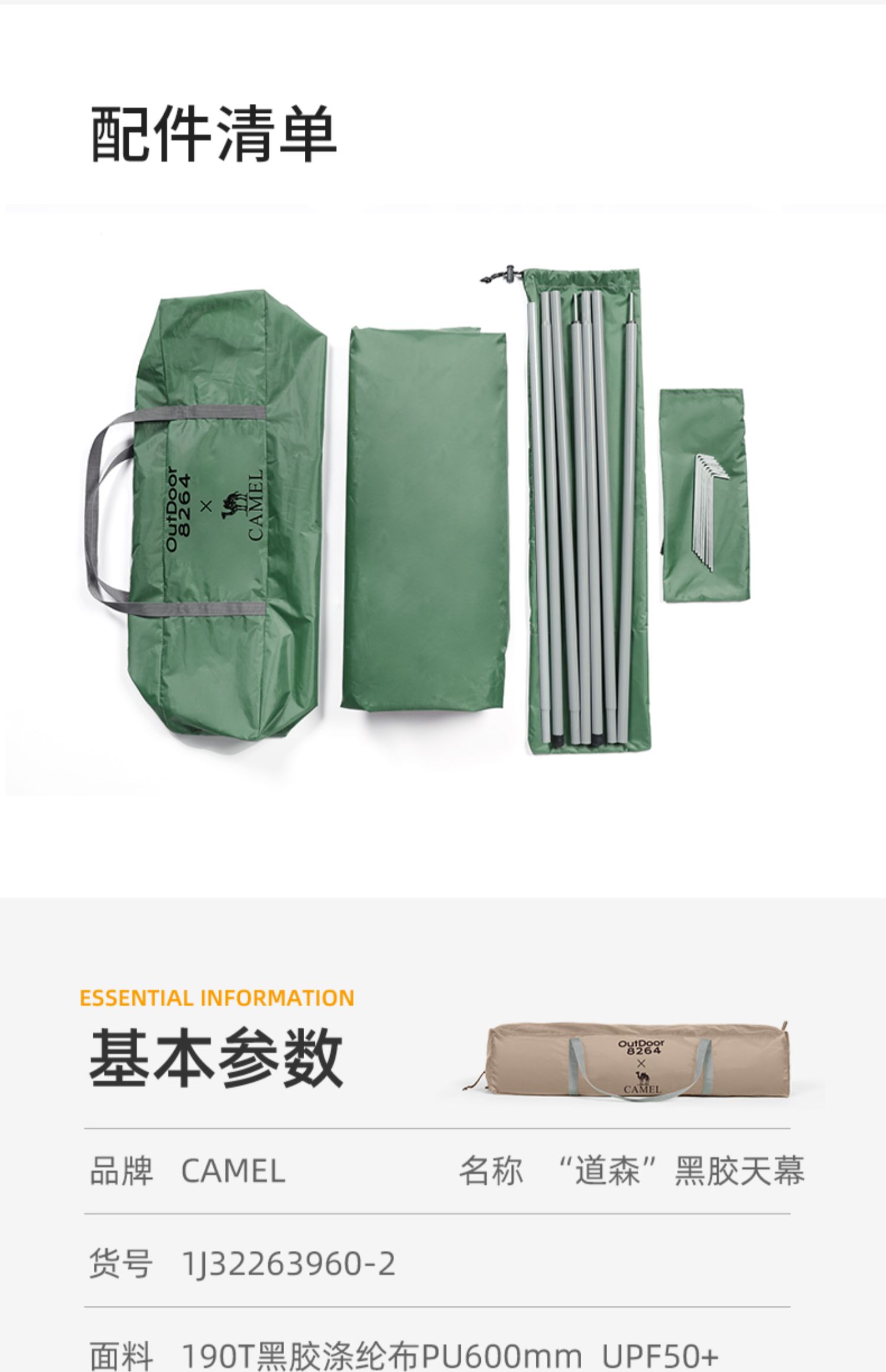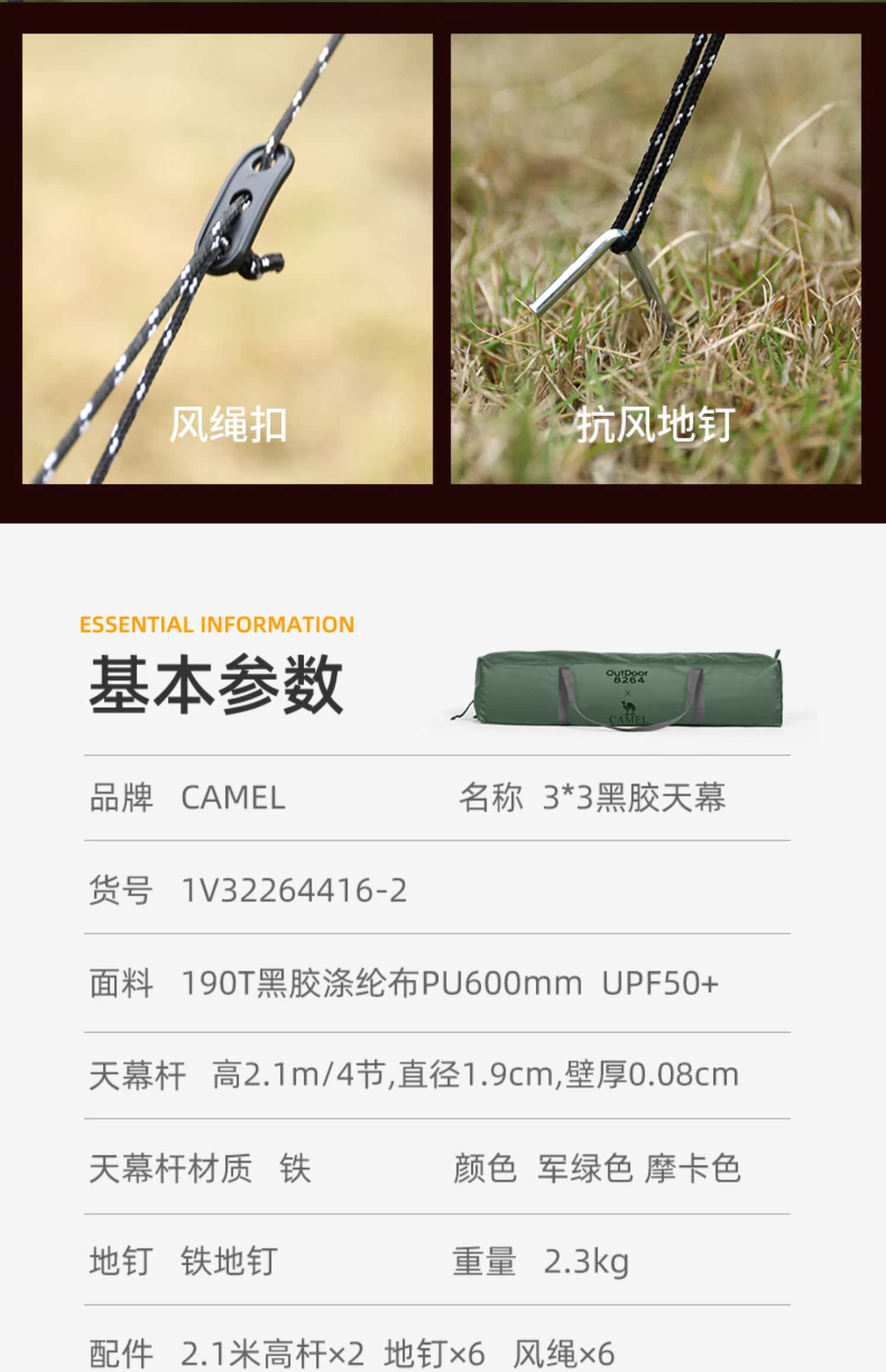 *【骆驼】户外涂银防晒天幕野餐公园便携防雨遮阳沙滩野营野炊凉棚 1V32264416-2