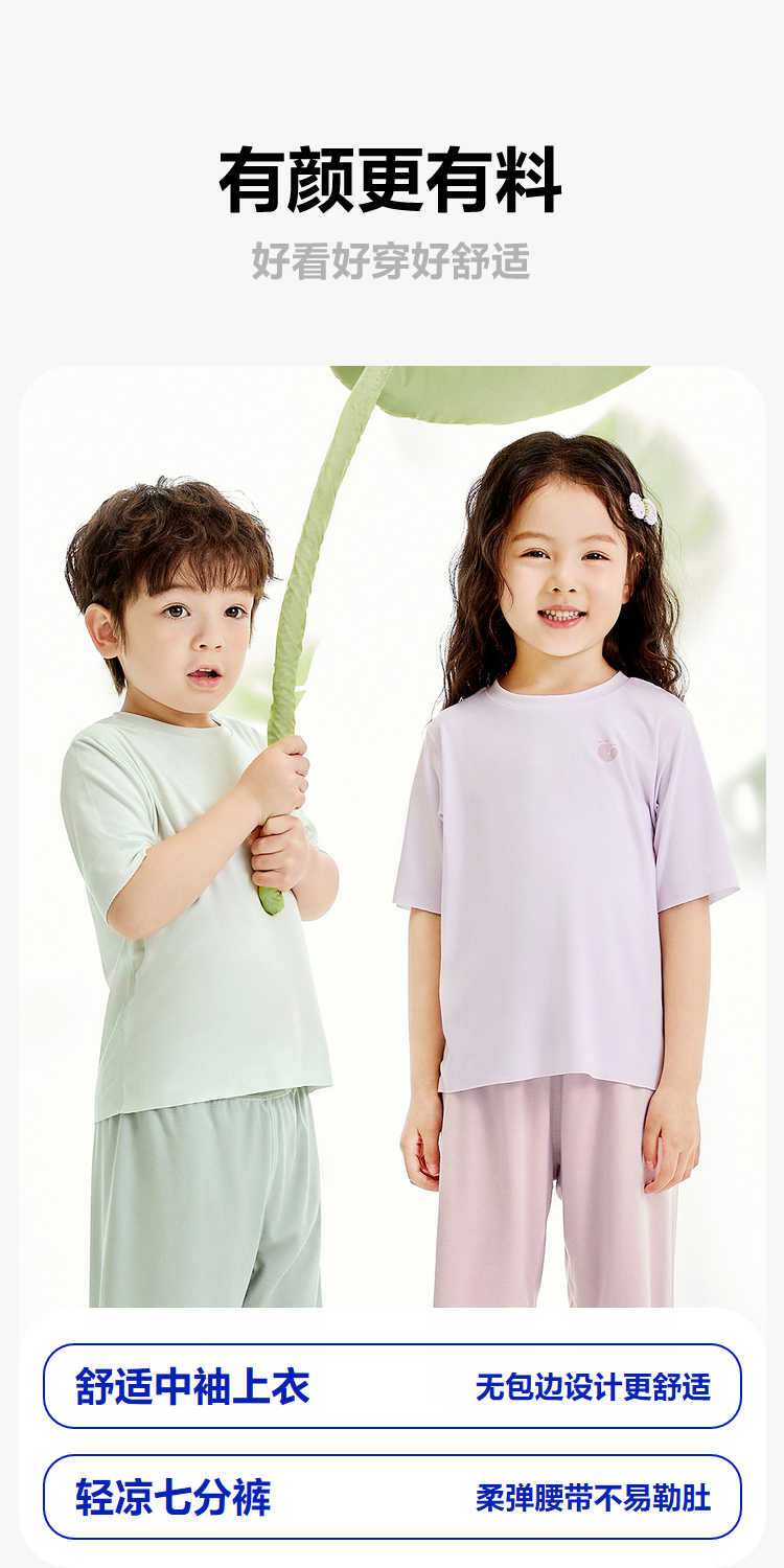 【植物芯天丝™】迷你巴拉男女童儿童短袖套装柔顺透气家居服