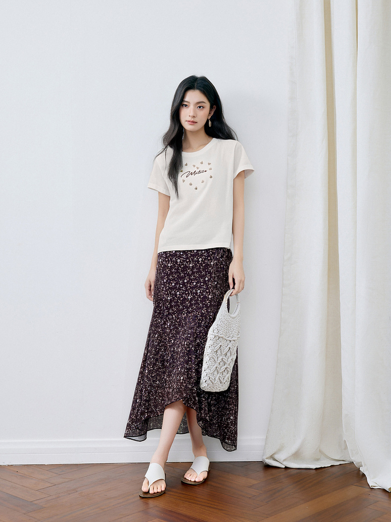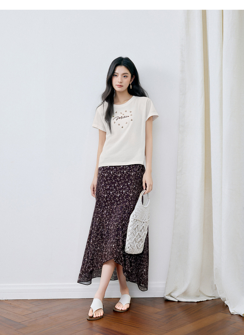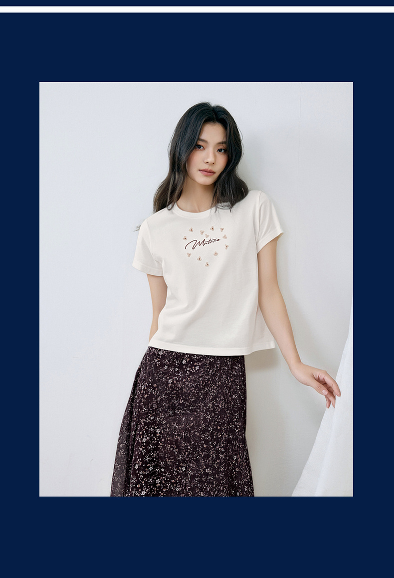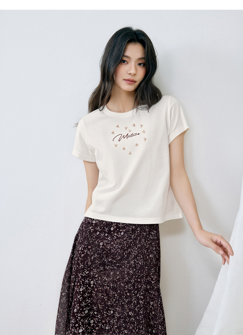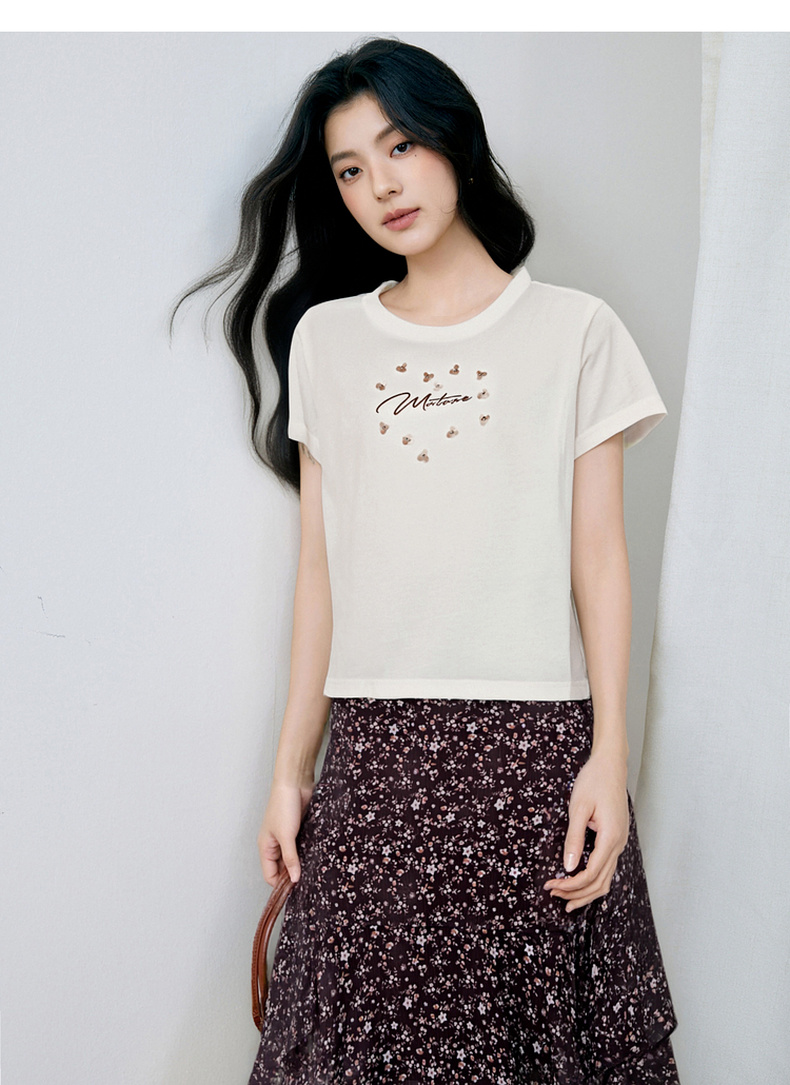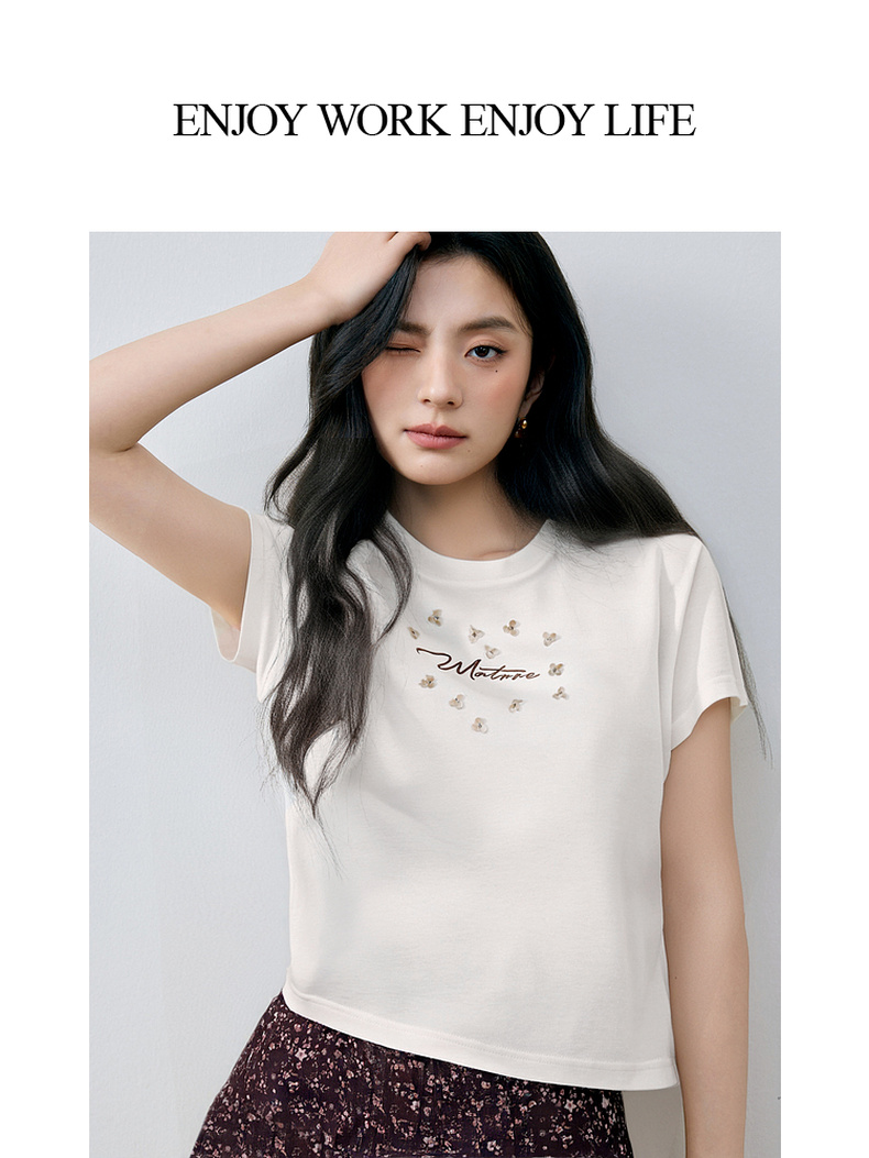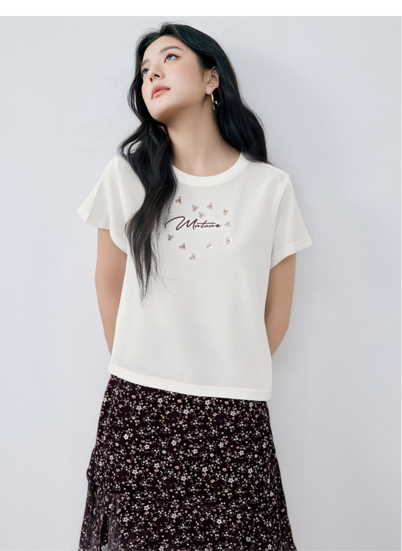 【商场同款】诗凡黎字母亮片小花T恤2025秋新款短袖上衣3G8700831