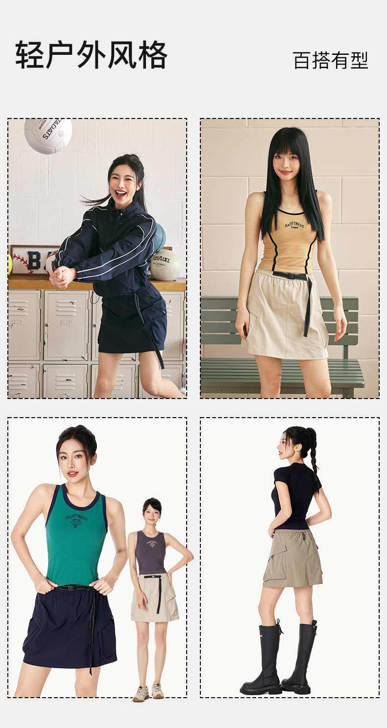 Leorrey/乐拉休闲复古简约宽松高腰防水防晒工装跑步运动短裙