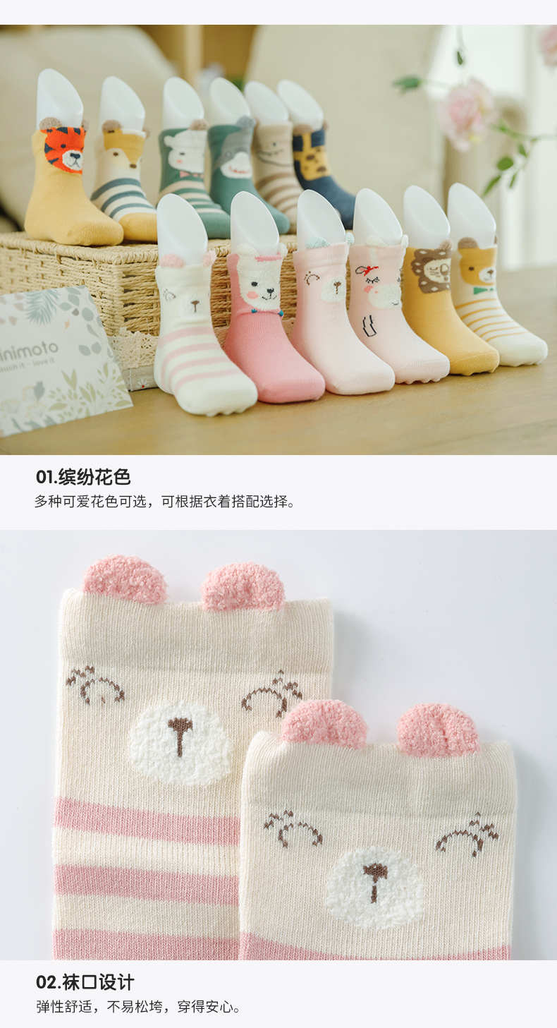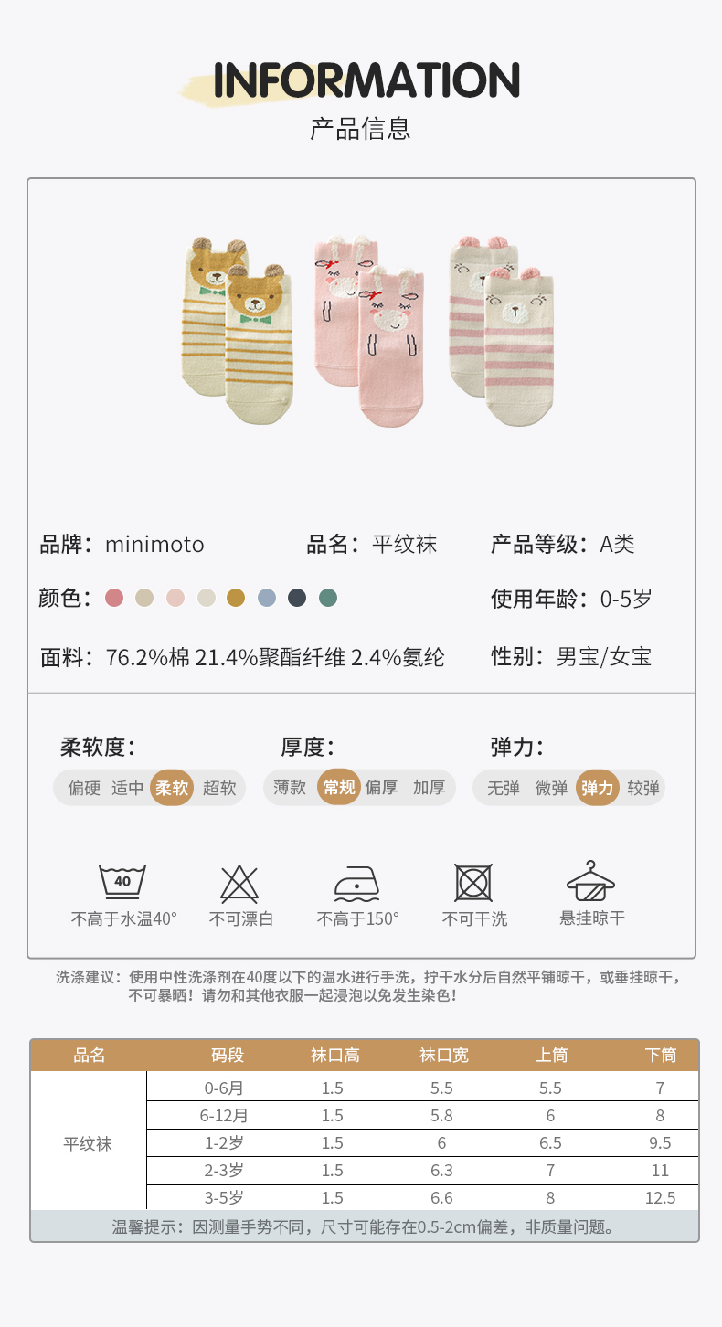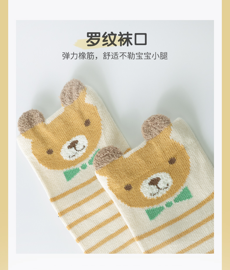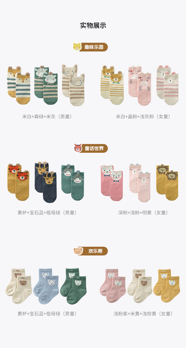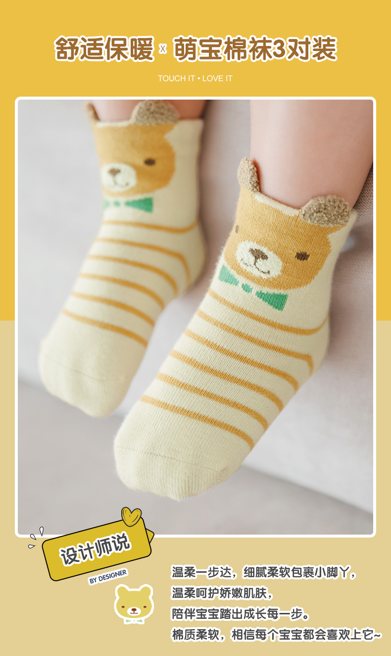 小米米配饰儿童保暖棉袜四季短袜婴儿袜男童袜子秋新款可爱女童四季袜3对装 YA060