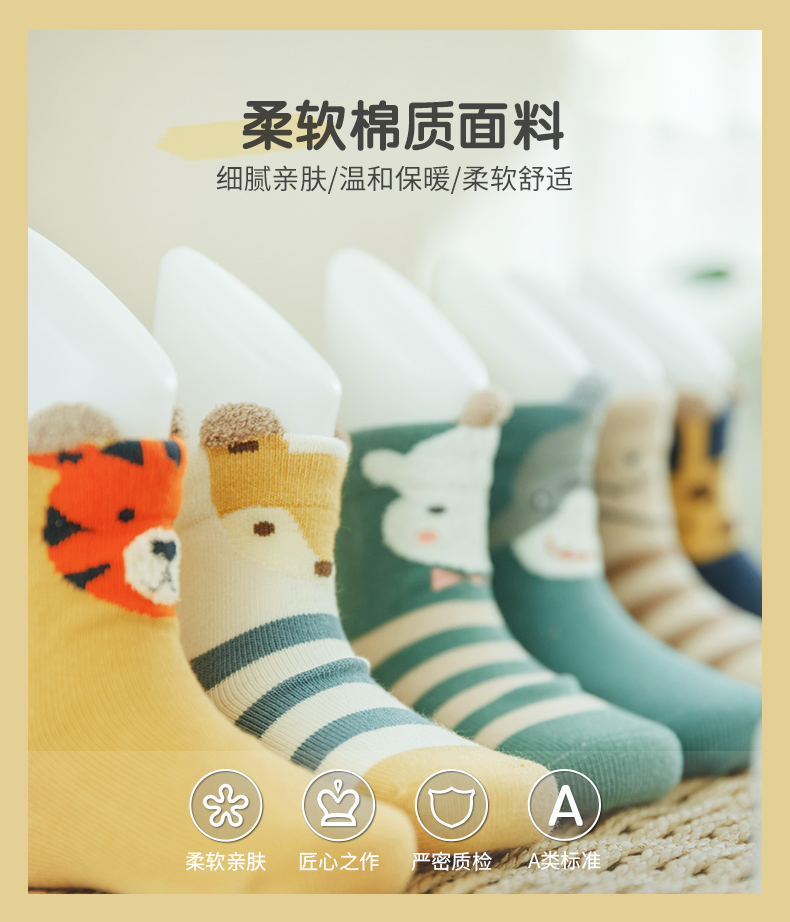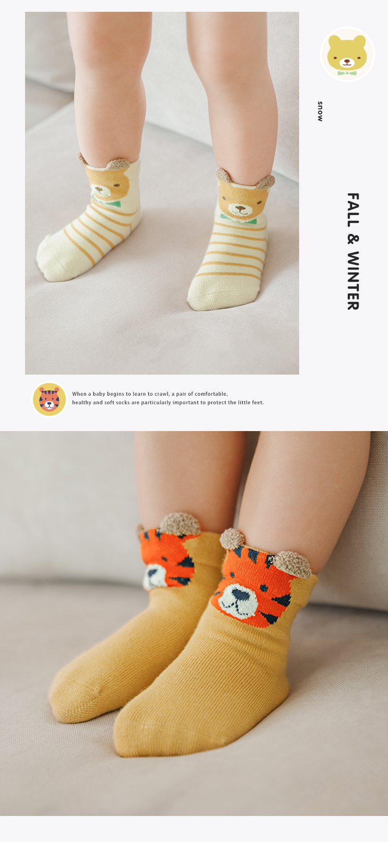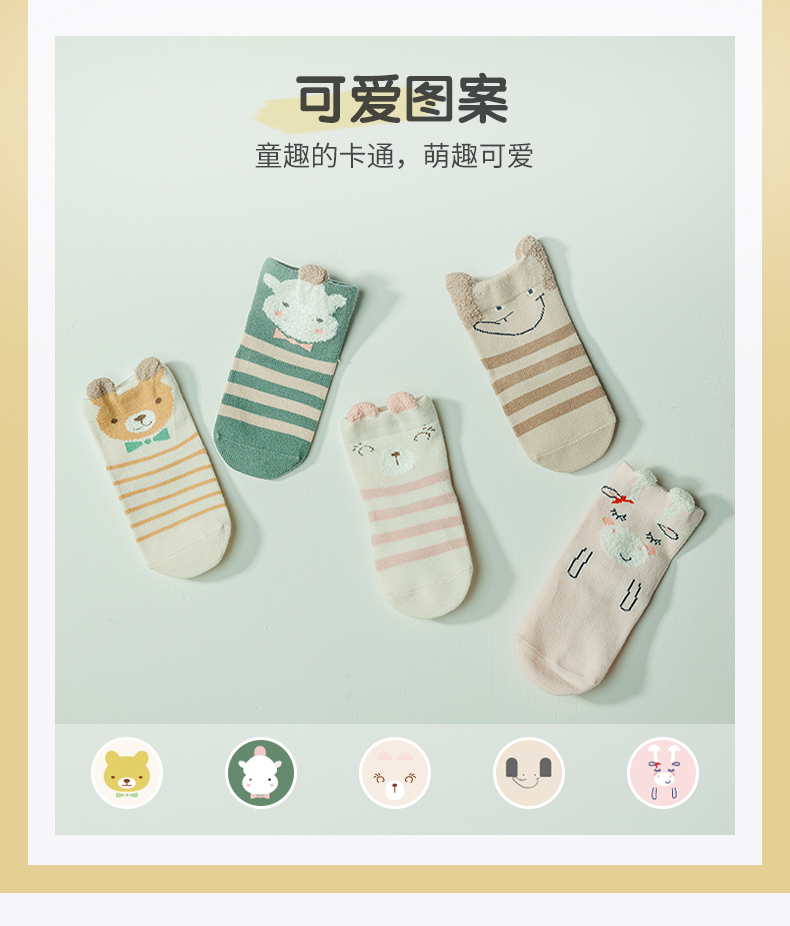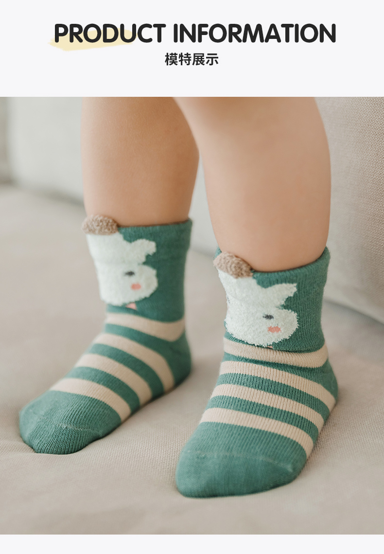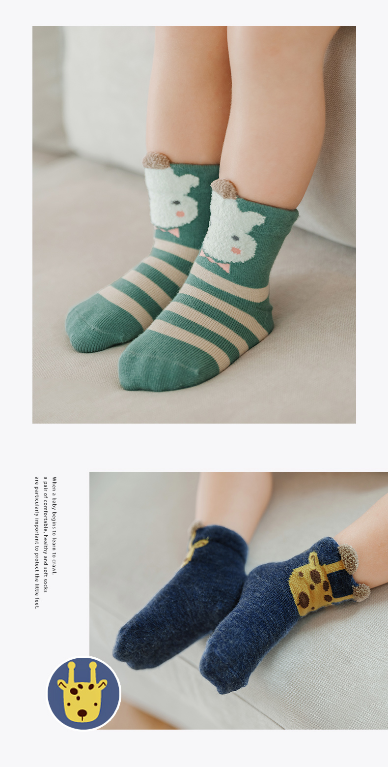 小米米配饰儿童保暖棉袜四季短袜婴儿袜男童袜子秋新款可爱女童四季袜3对装 YA060