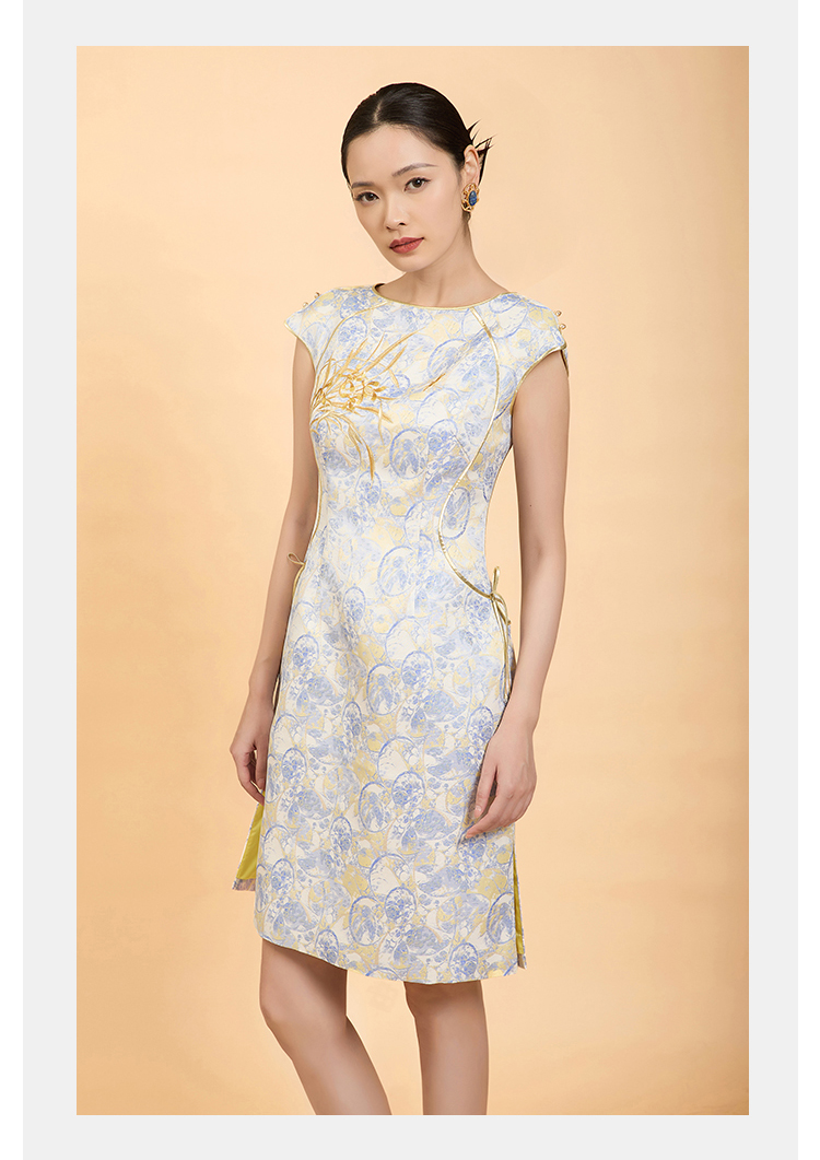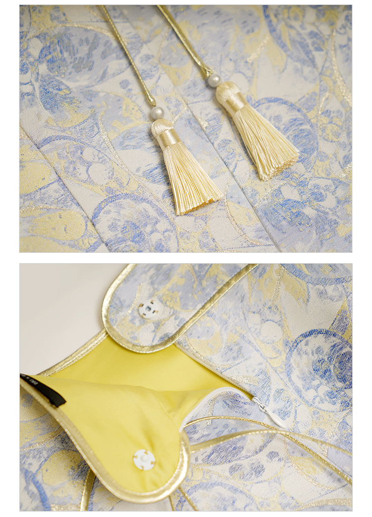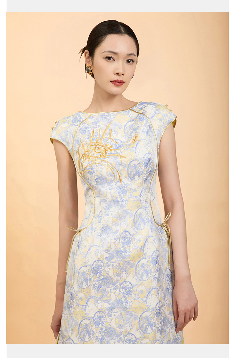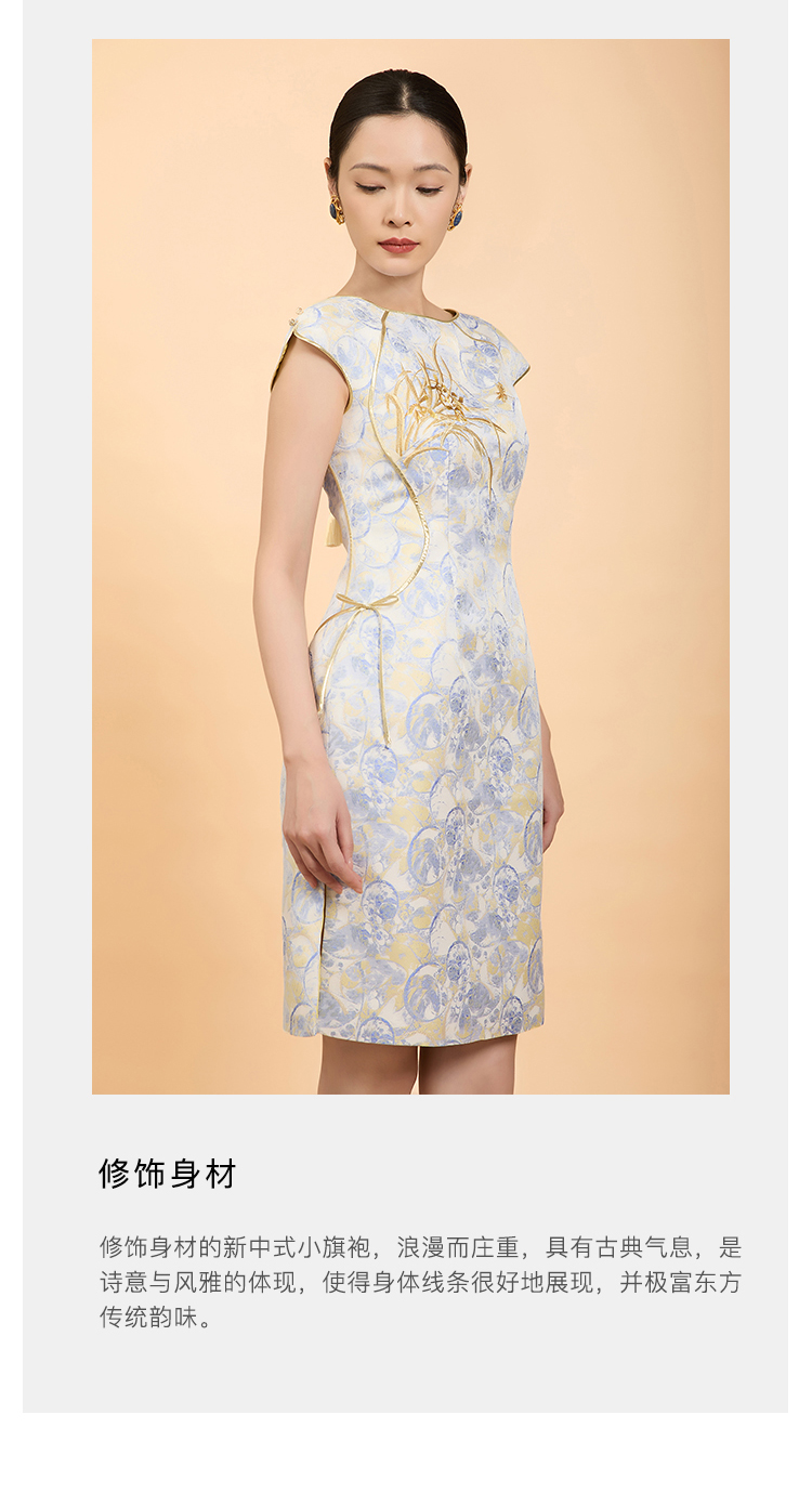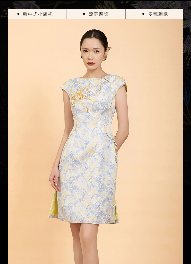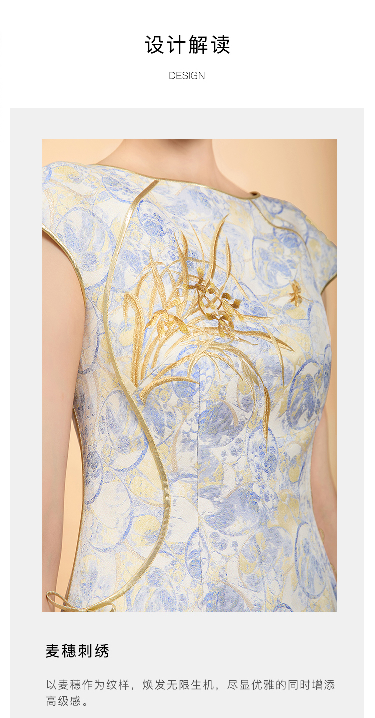 东方境X郭培联名系列:轻高定麦穗刺绣新中式旗袍礼服