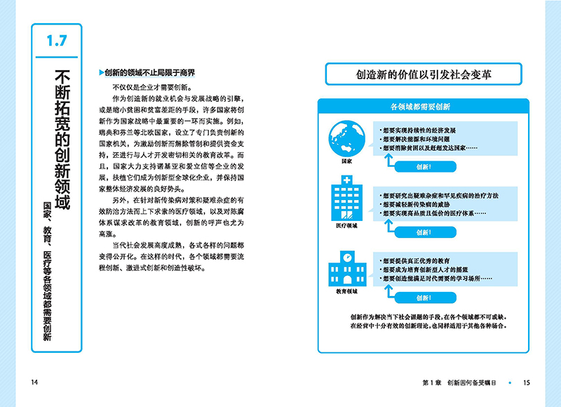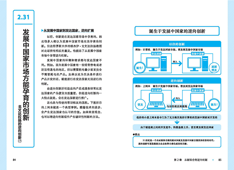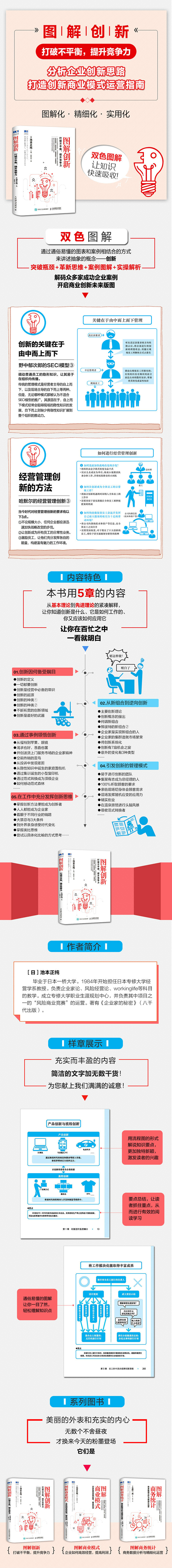 “新结合”“7个机会”“SECI模型”“破坏性创新”“模块化”“开放性创新”“经营管理创新”“逆向创新”从基本理论到先进理论的紧凑解释,让你知道创新是什么、它是如何工作的、你又应该如何应用它容易理解的图解和事例通俗易懂的图解、创新理论的解说和介绍丰富的事例让你在百忙之中一看便明白不仅提到了创新人物、商品,还通过图解的方式列举了成功的企业事例。