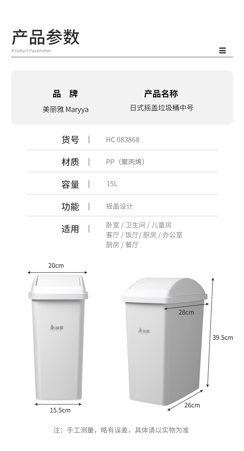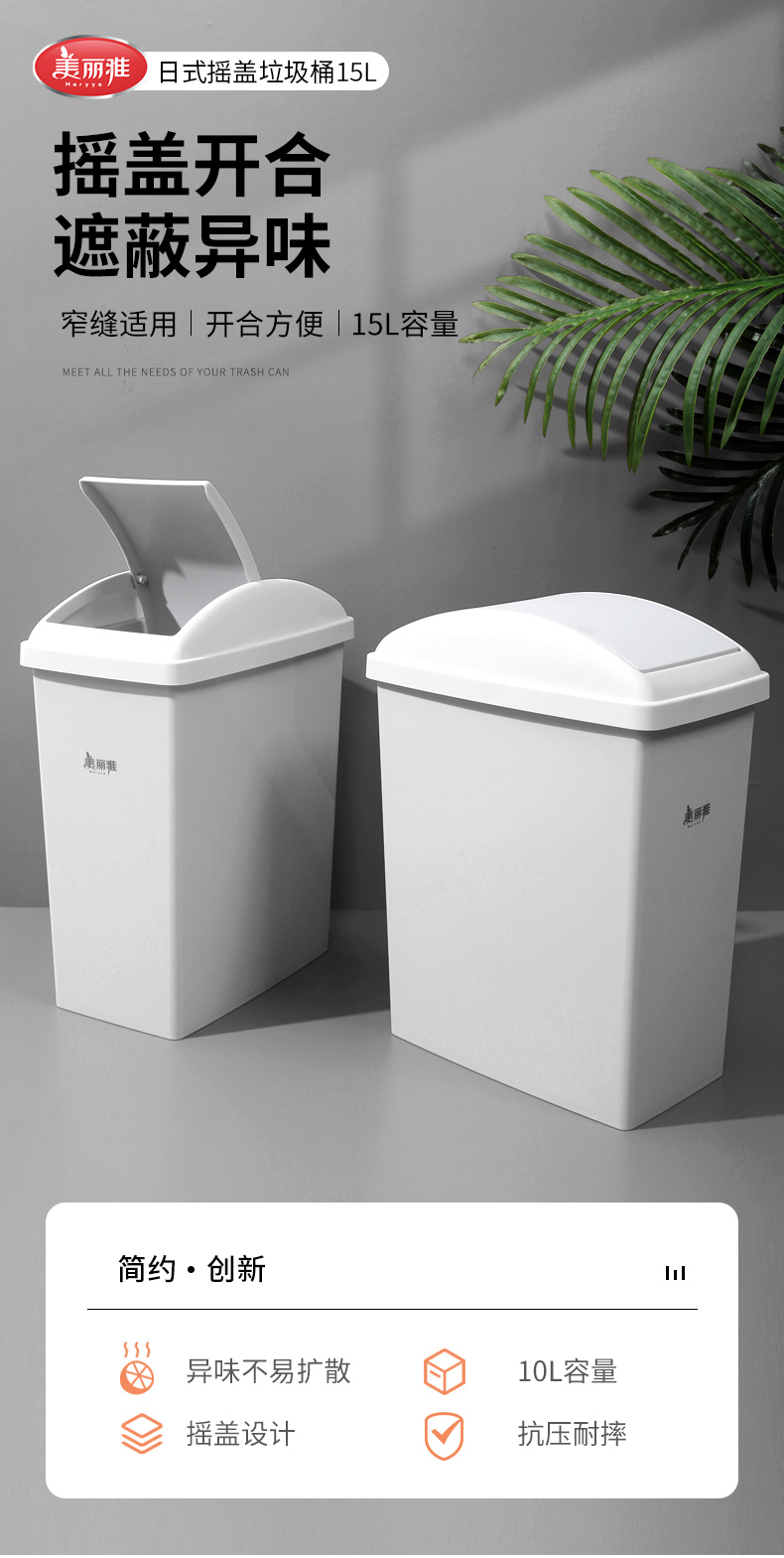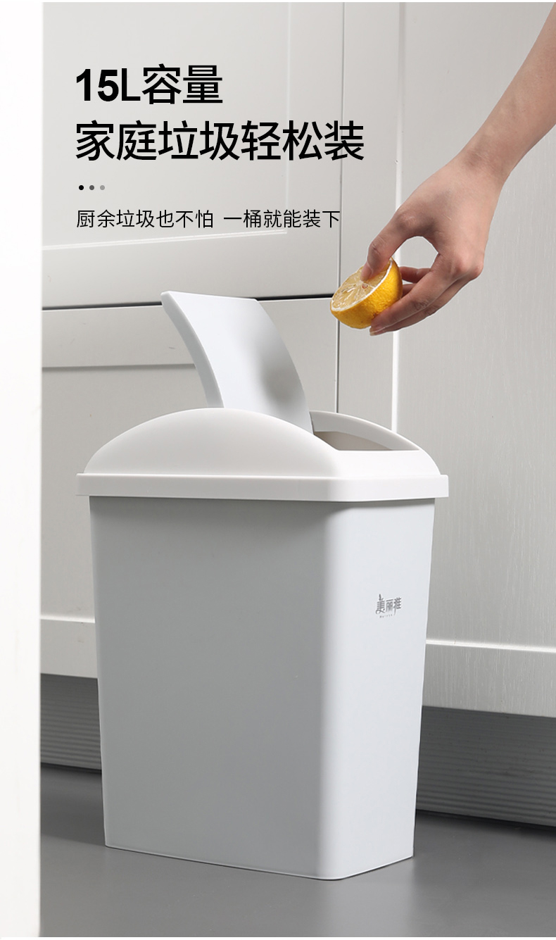 【批发】美丽雅日式摇盖垃圾桶15L大号 1套
