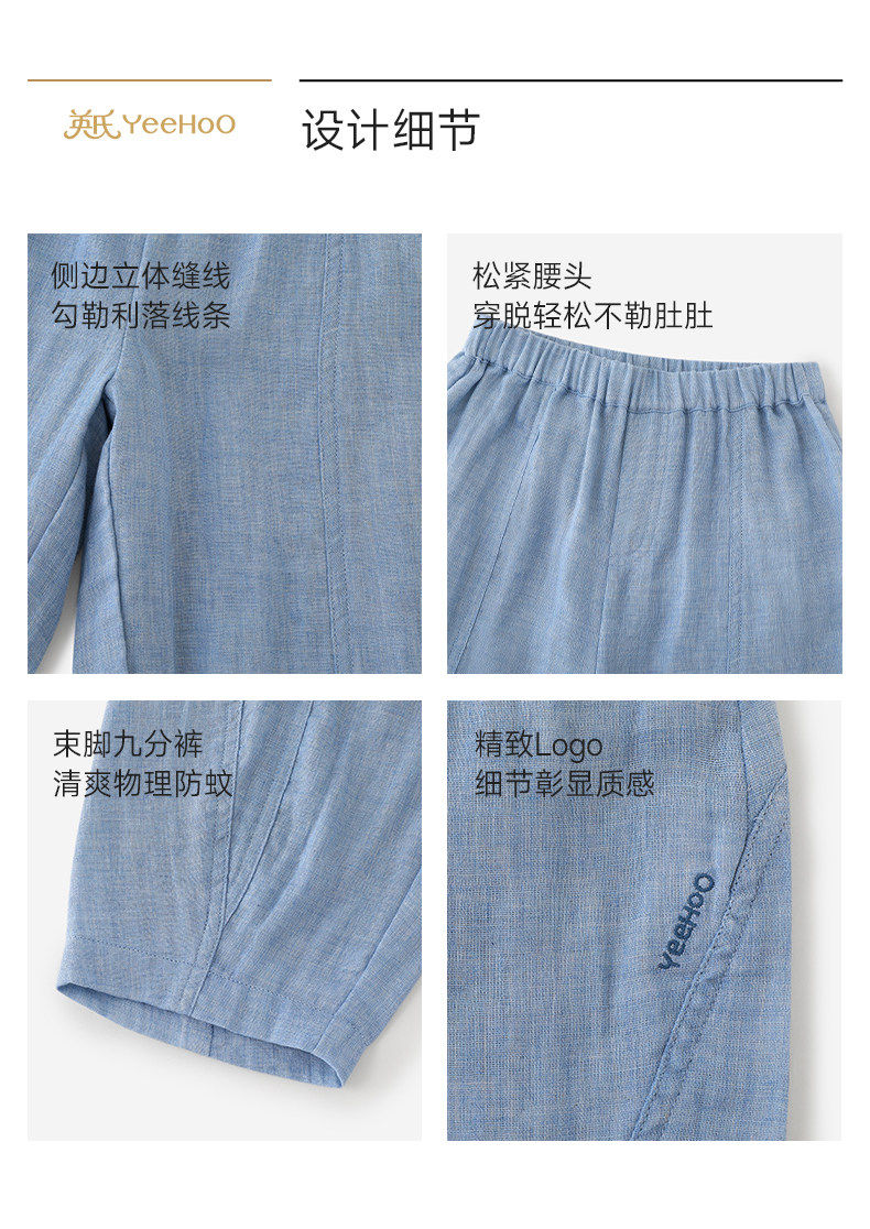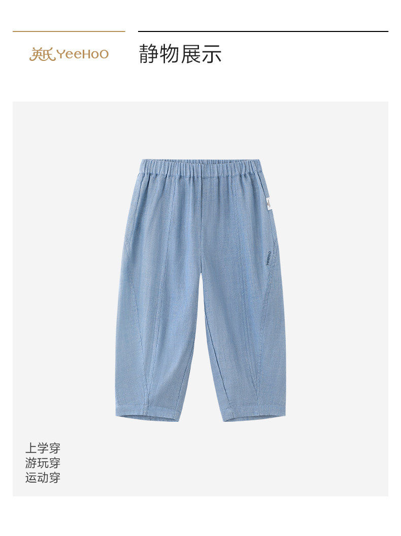 英氏儿童裤子男女宝宝夏季新款防蚊长裤YRKCJ2S042A
