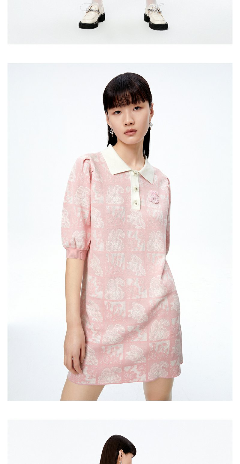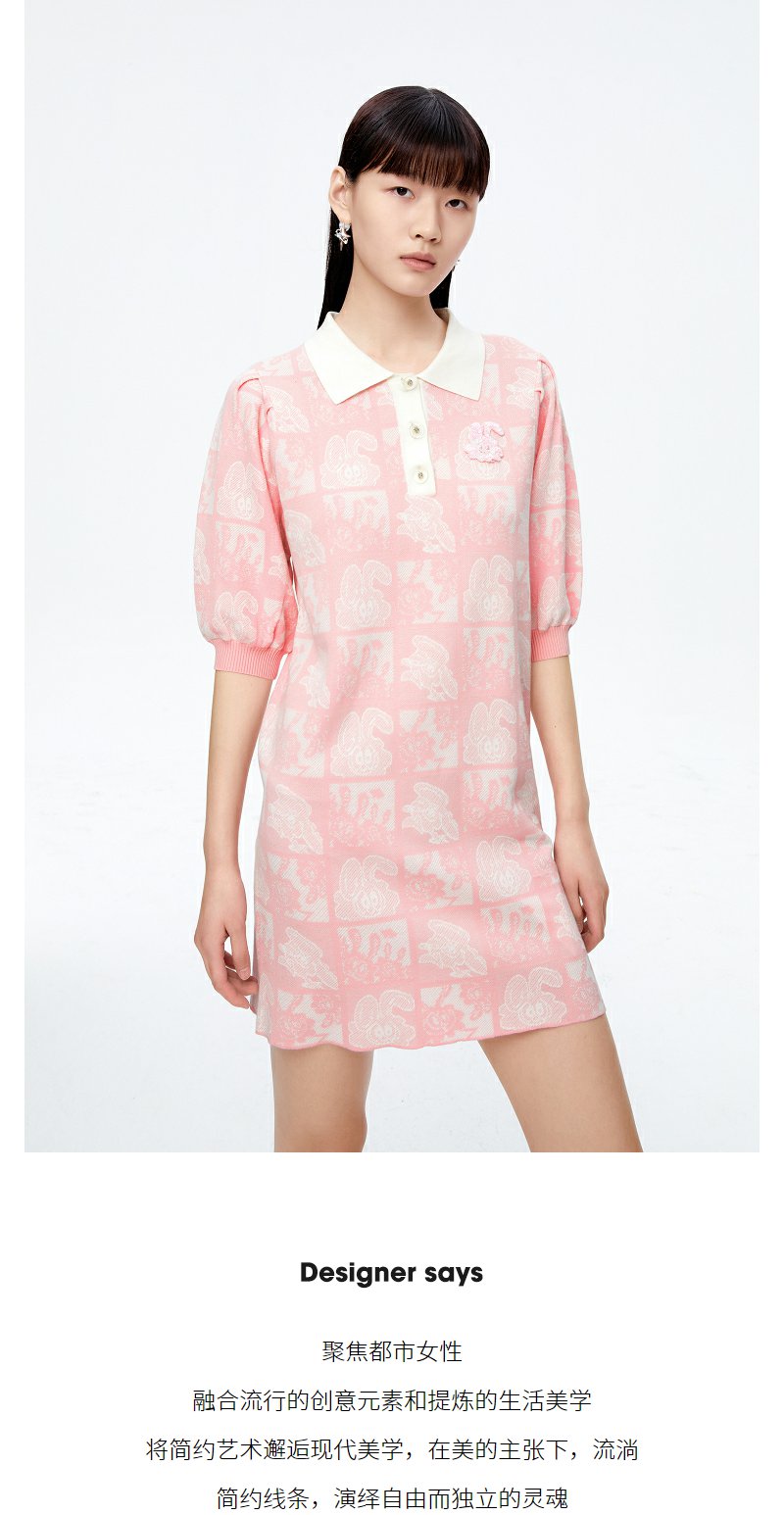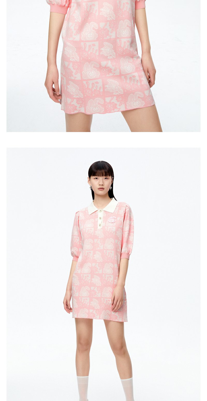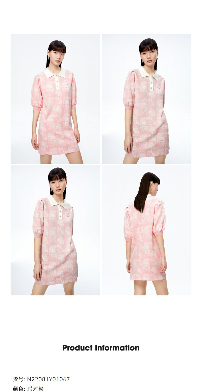 NEELLY纳俪商场同款polo领连衣裙女秋粉色针织显瘦中长款短袖裙子N22081Y01067