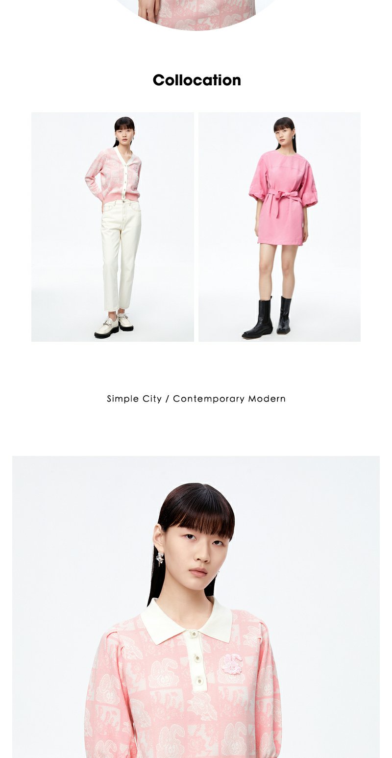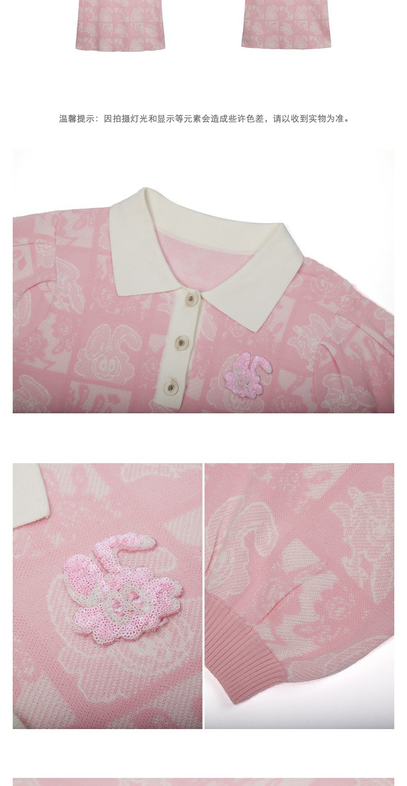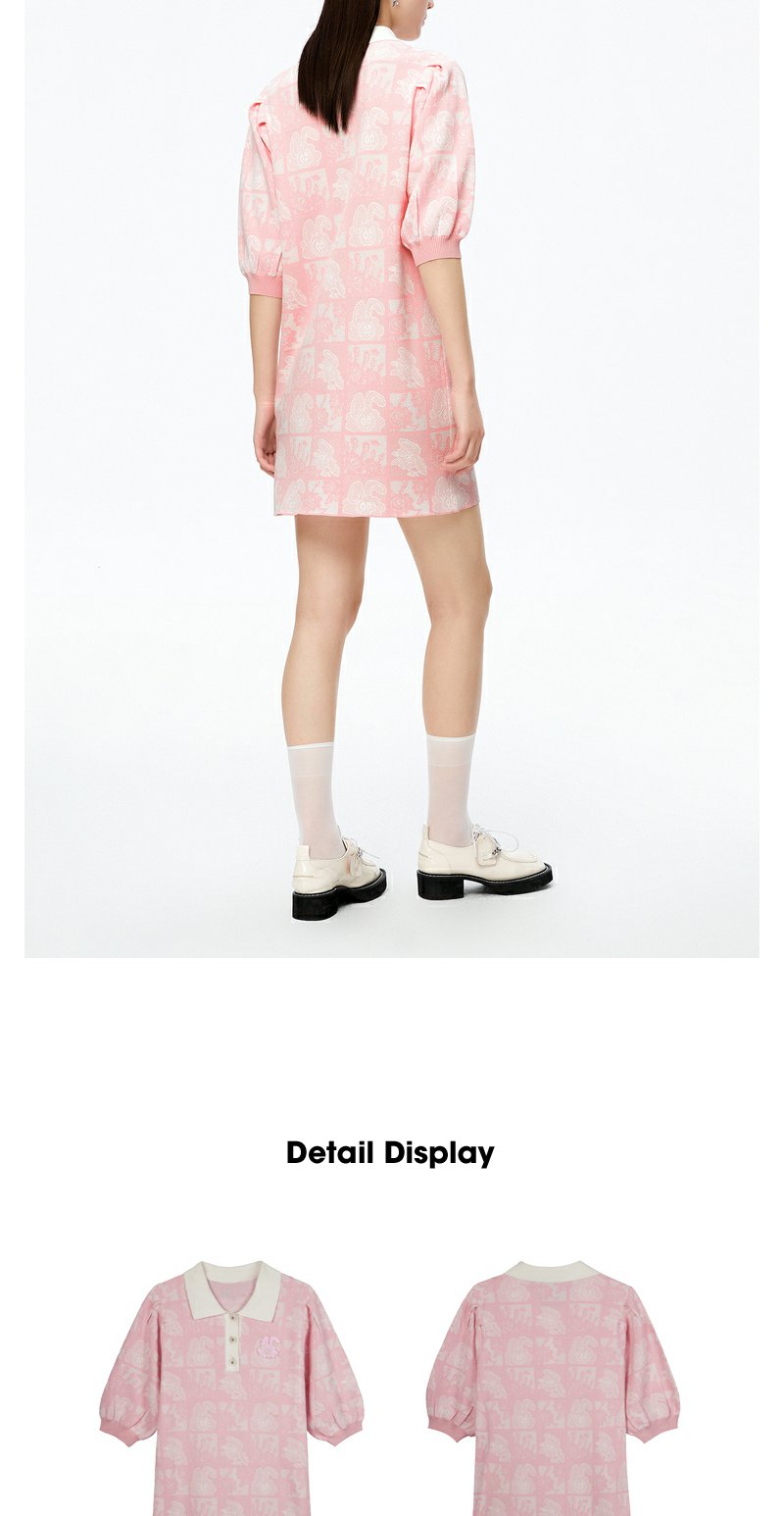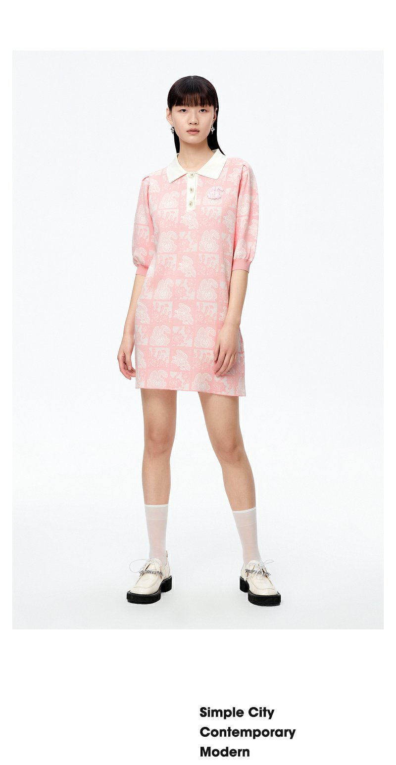 NEELLY纳俪商场同款polo领连衣裙女秋粉色针织显瘦中长款短袖裙子N22081Y01067