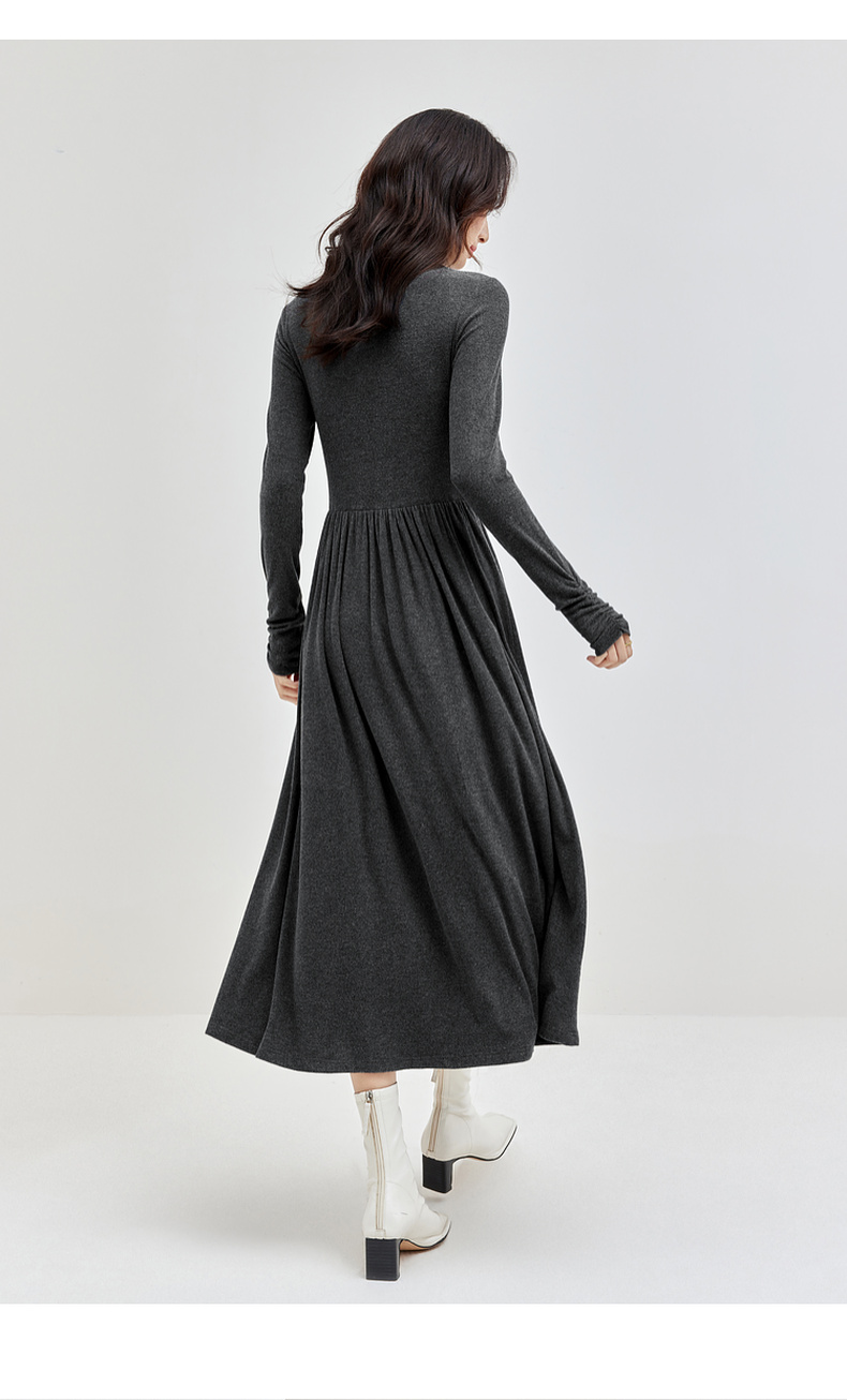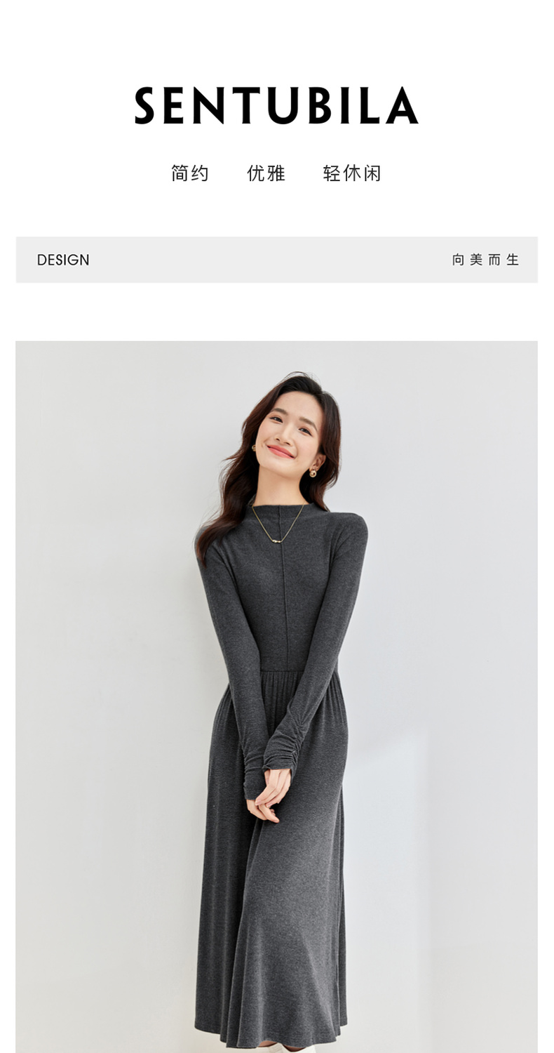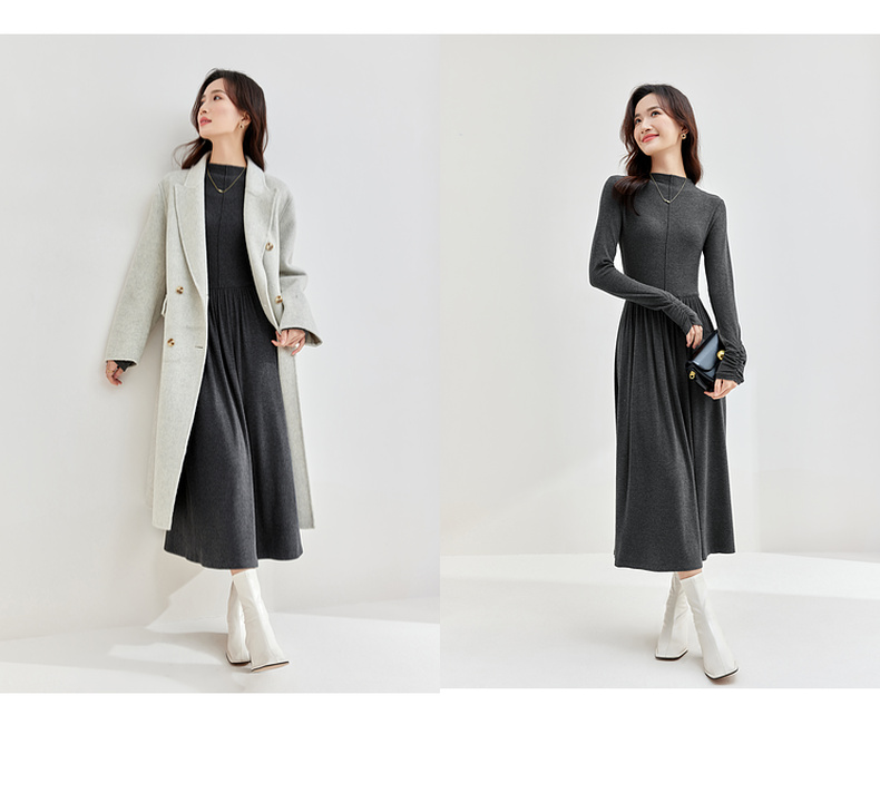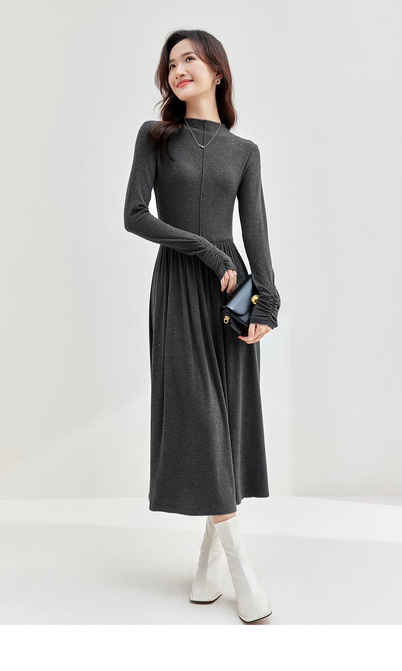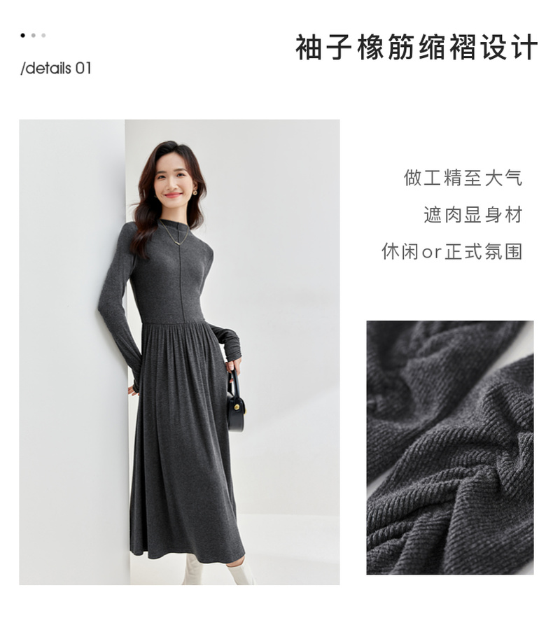 【内购】复古优雅女神范半高领收腰显瘦针织连衣裙-154LG3633X