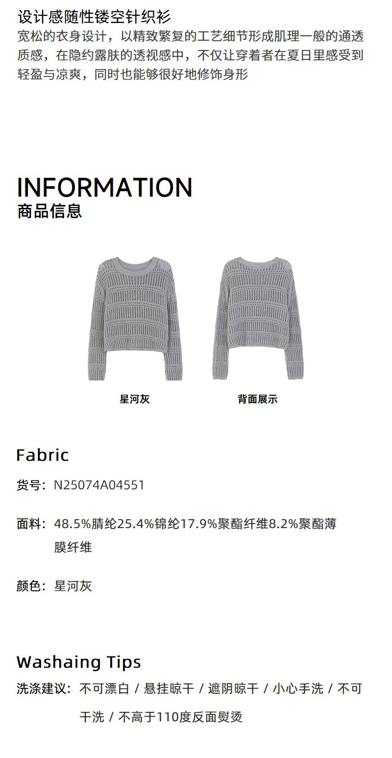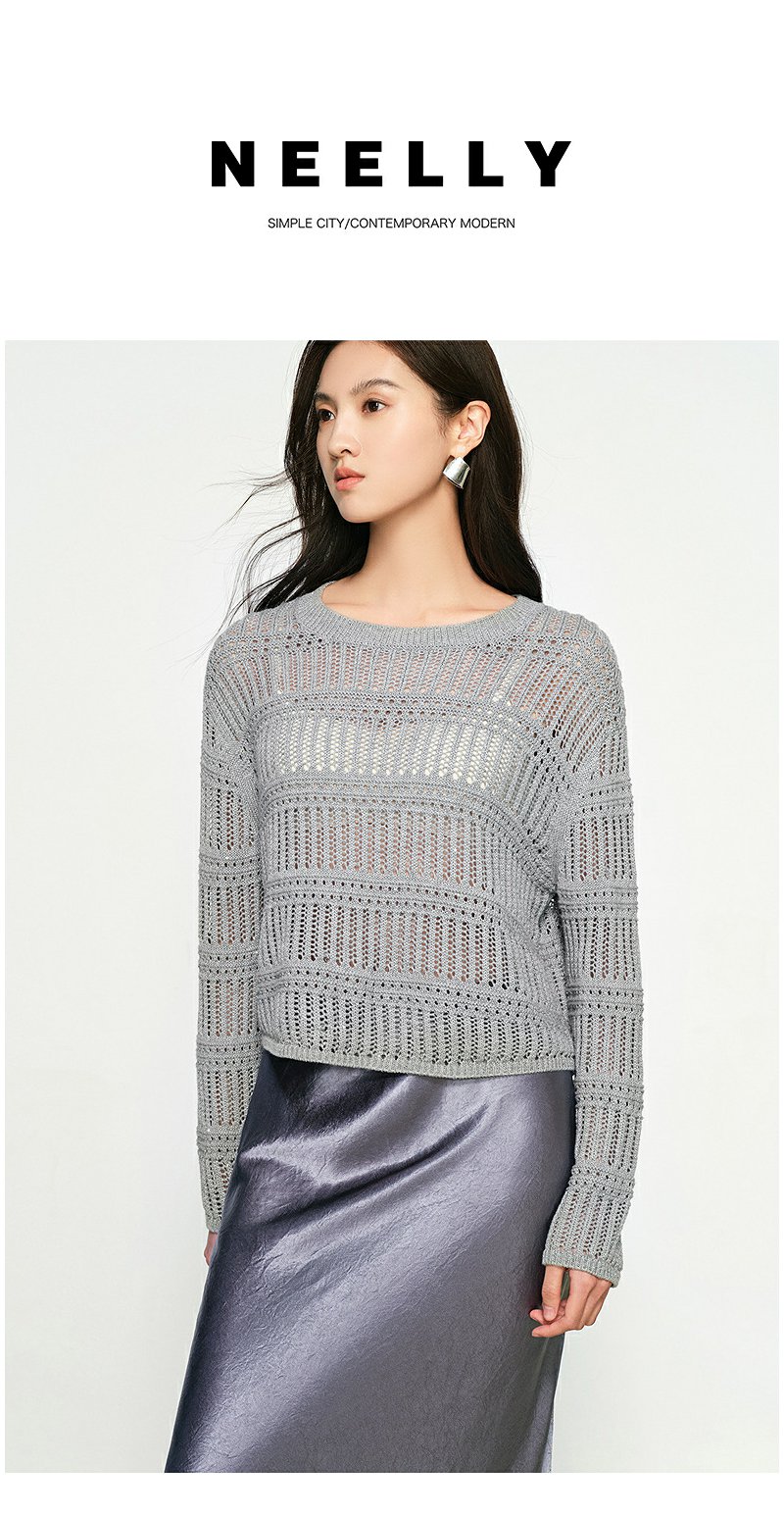 NEELLY纳俪商场同款春季新款设计感随性镂空针织衫女休闲上衣N25074A04551