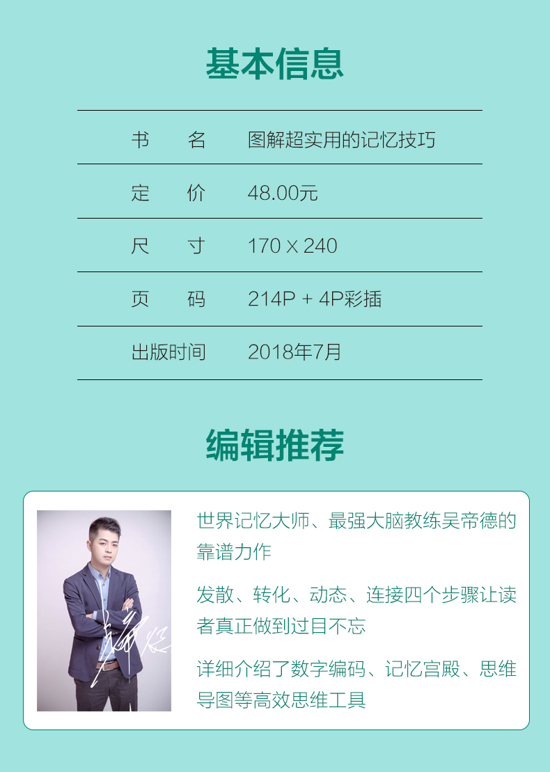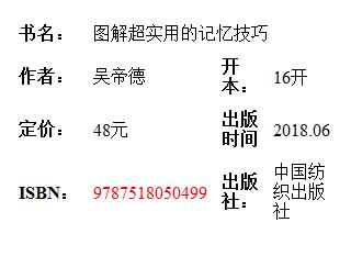 吴帝德世界记忆大师第22届伦敦世界脑力锦标赛中国总“中国大脑人才库”成员强大脑选手教练已出版畅销又实用的图书《思维导图宝典:好看又好用的导图大全集》《漫画中小学生必须知道的记忆法》