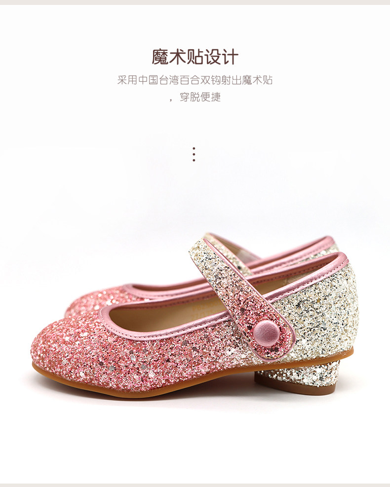 【云优选】Little winkaa童鞋新款渐变格利特爱心跟闪亮魔术贴水晶公主鞋女