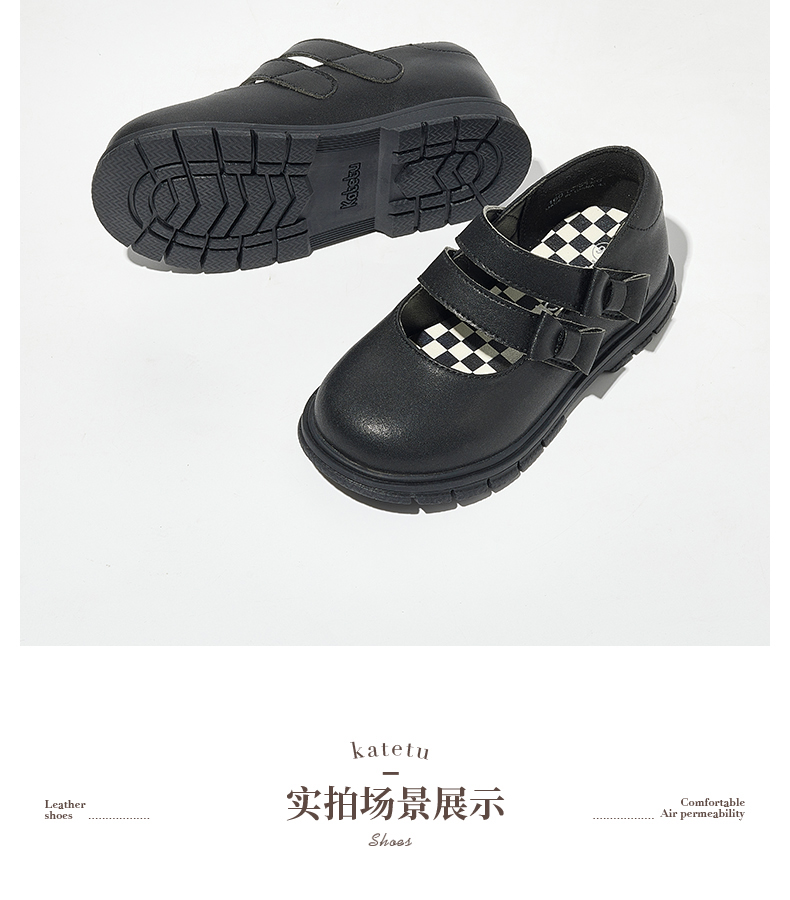 卡特兔儿童小皮鞋秋季新款黑色软底防滑演出鞋女童公主鞋