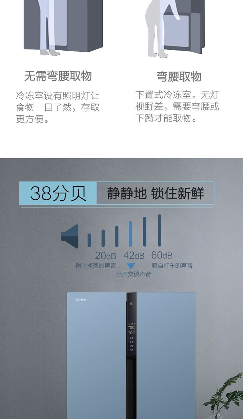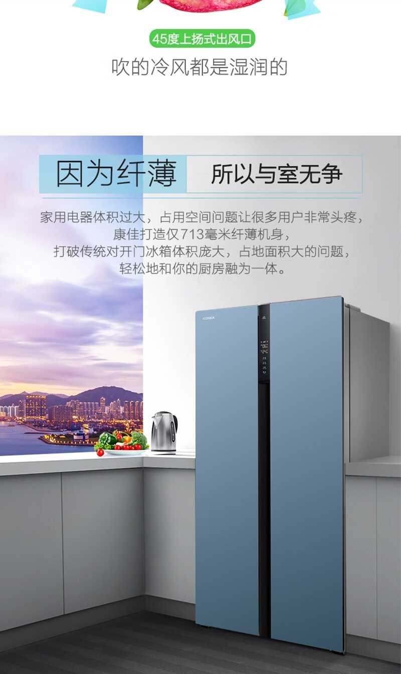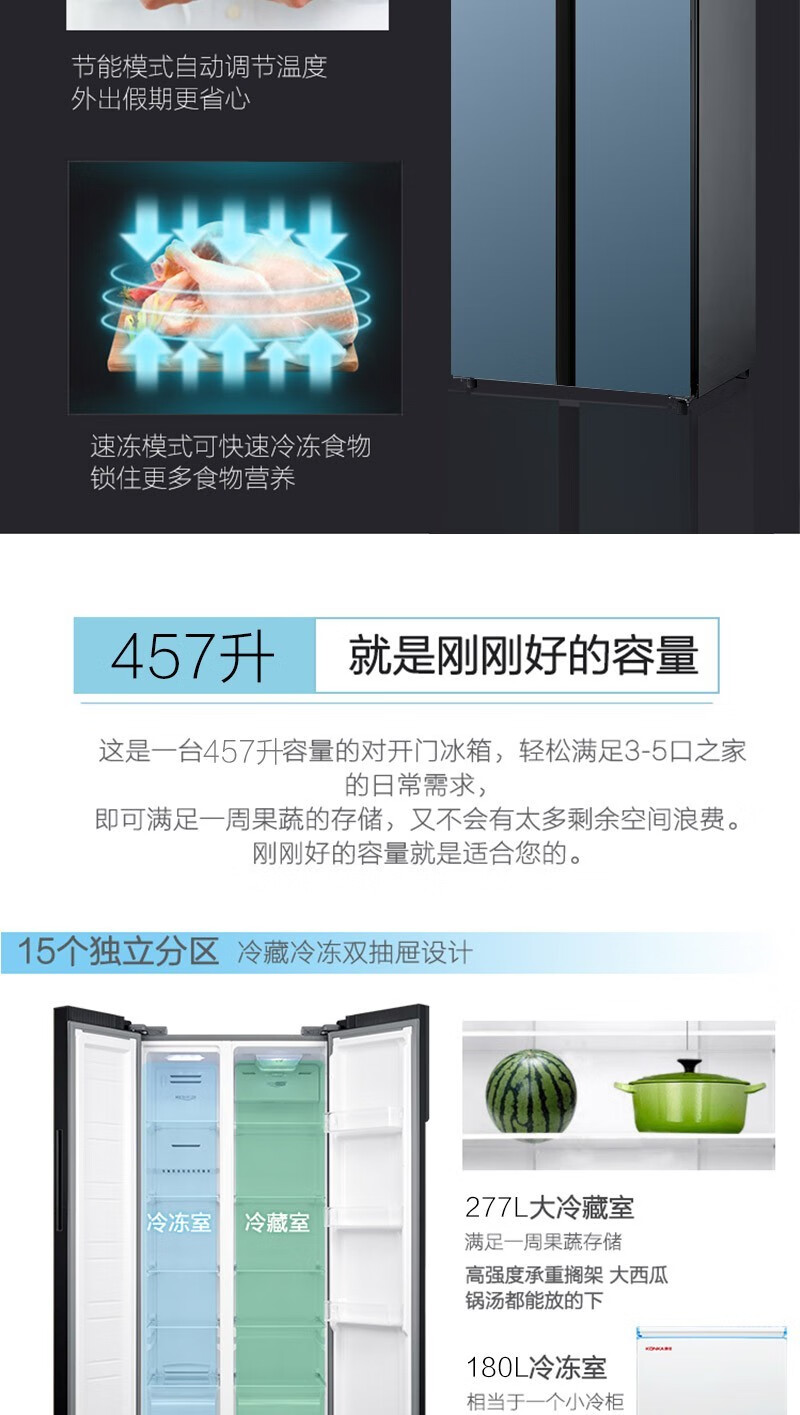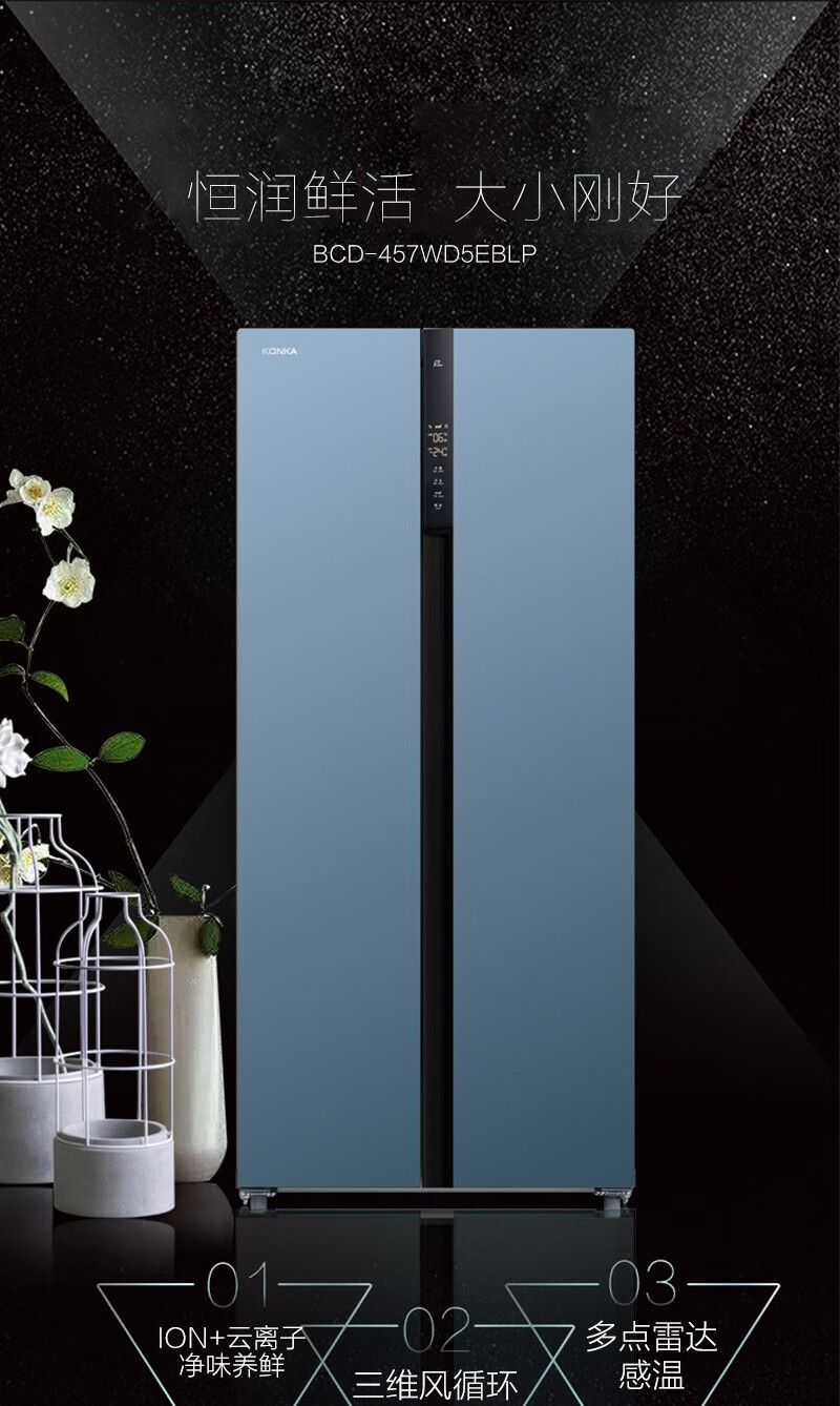 康佳(KONKA)457升 BCD-457WD5EBLP 对开门家用电冰箱风冷无霜 ION+云离子净味养鲜+三维风循环