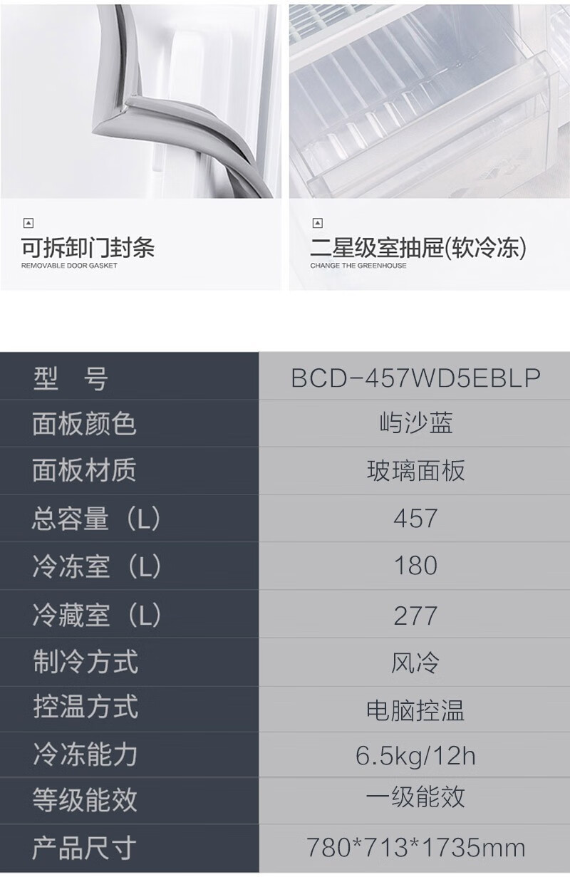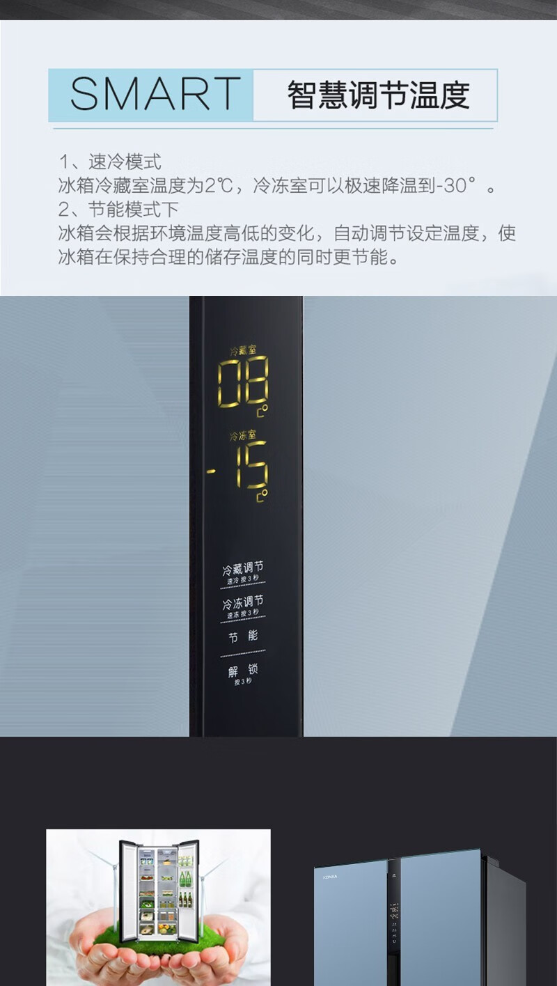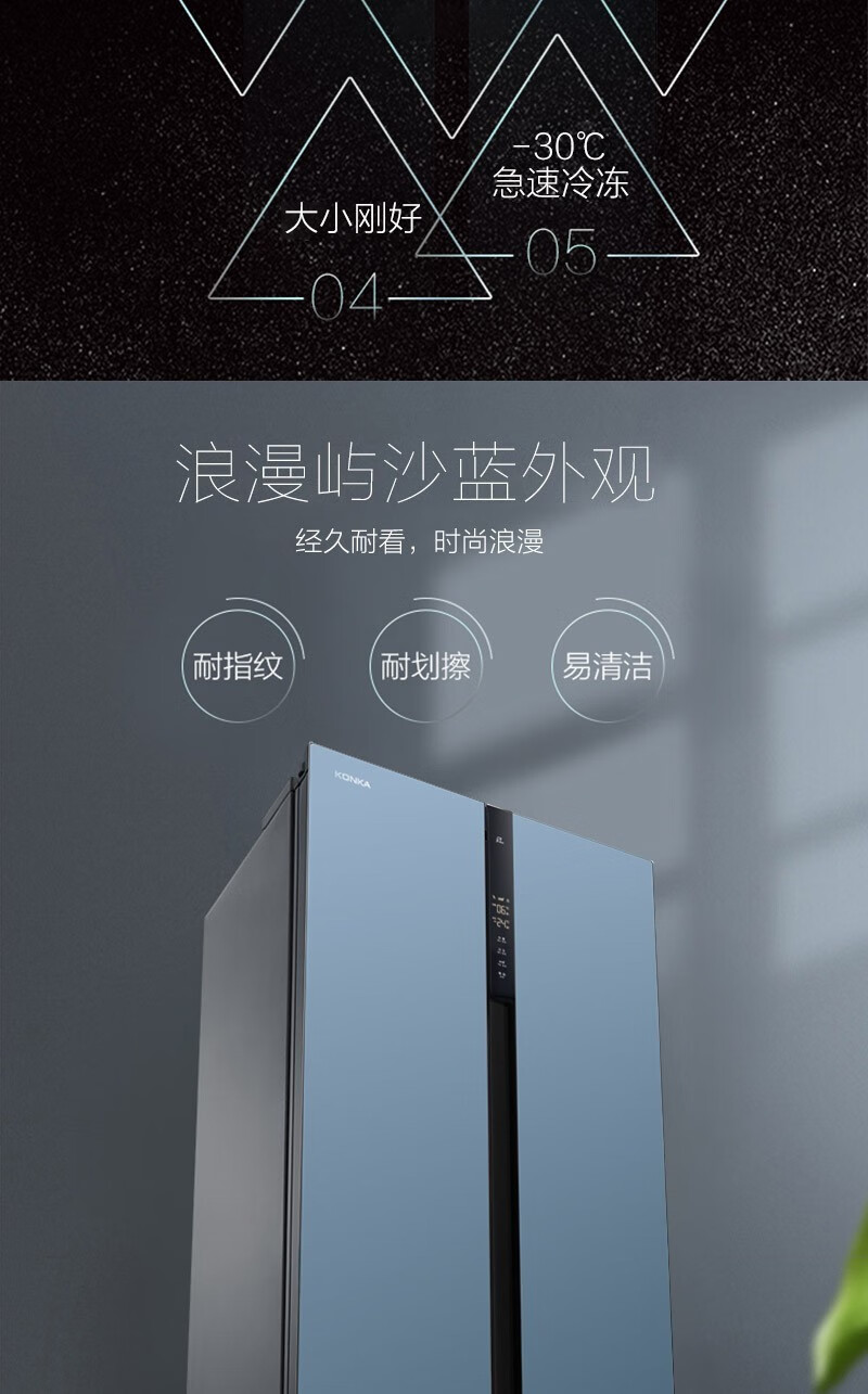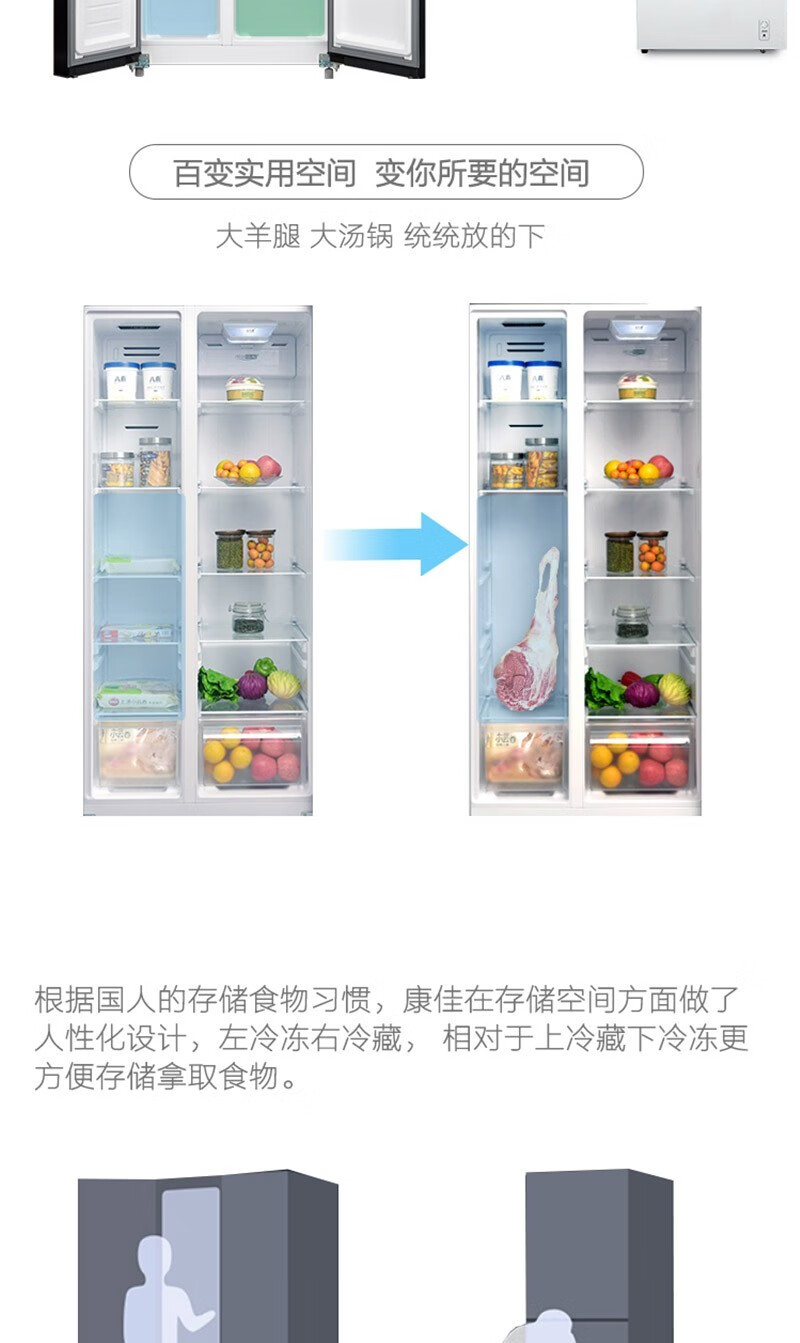 康佳(KONKA)457升 BCD-457WD5EBLP 对开门家用电冰箱风冷无霜 ION+云离子净味养鲜+三维风循环