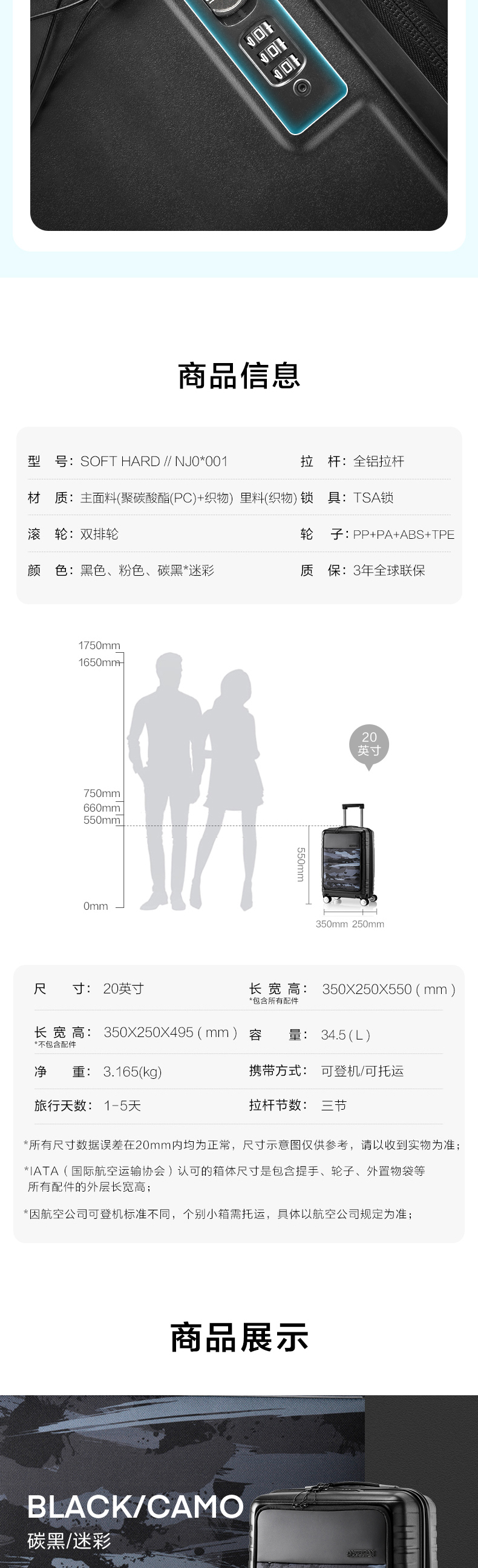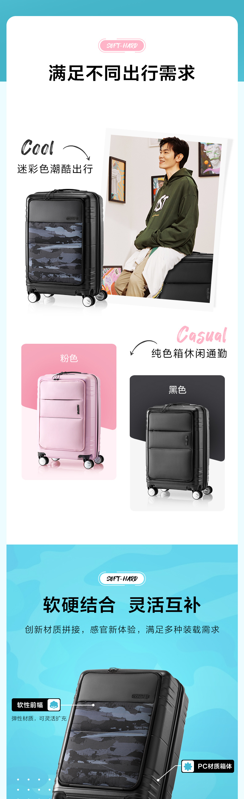 【美旅】SOFT-HARD系列软硬结合前开口拉杆箱NJ0*001