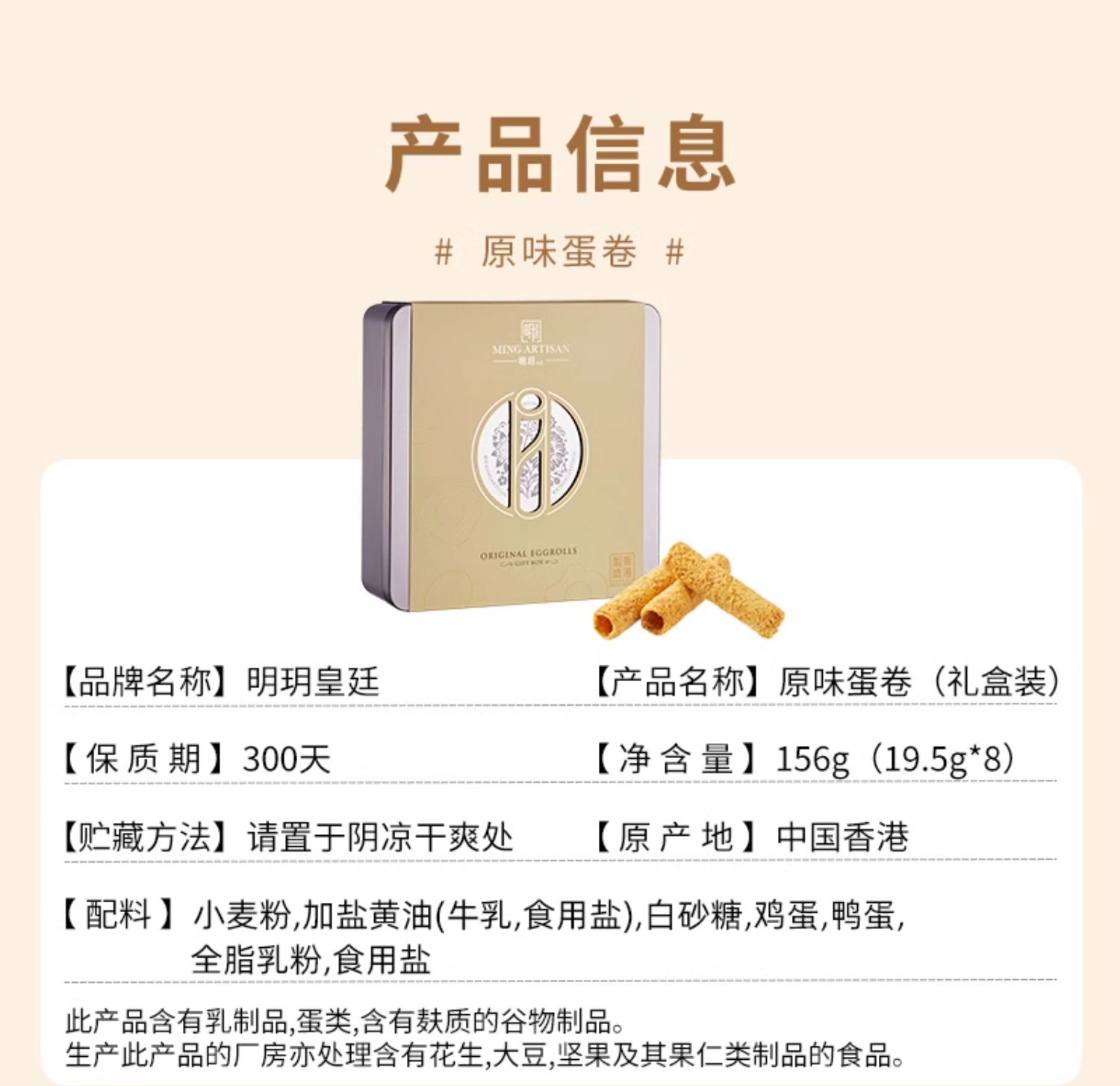明玥皇廷原味蛋卷礼盒156g/055272 蜂巢质感酥松可口送礼佳选