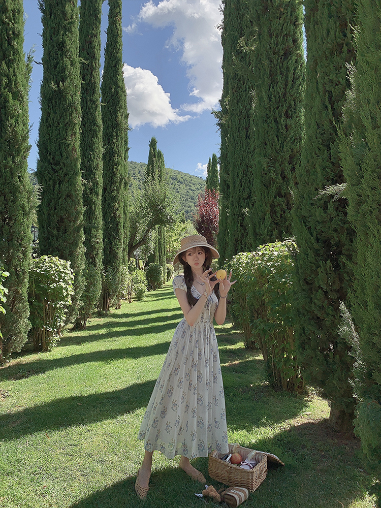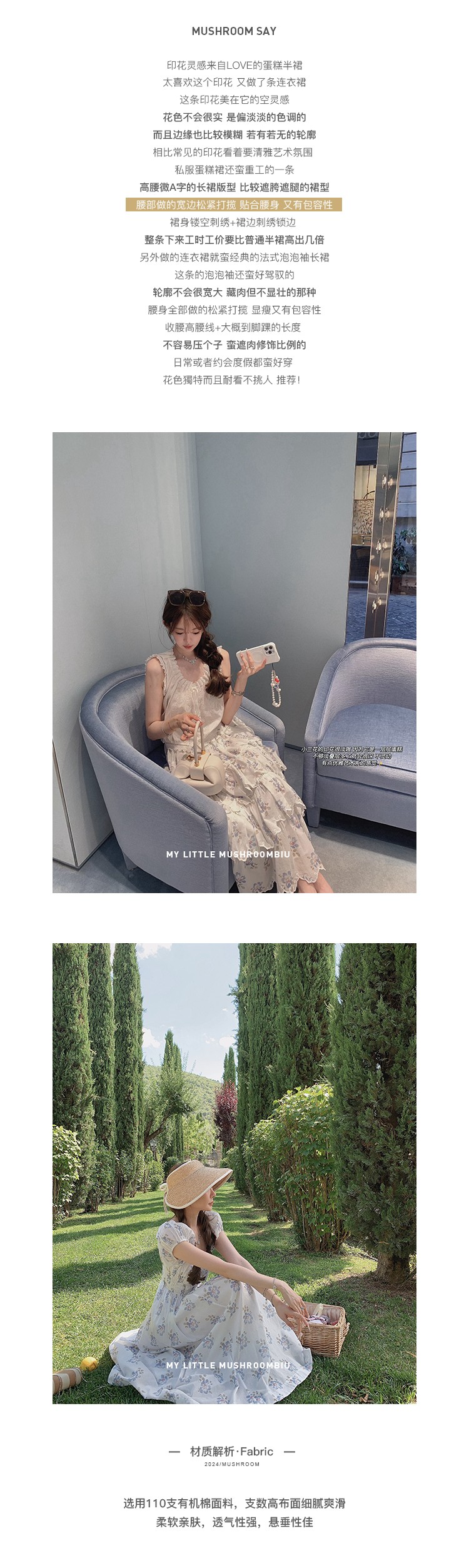 金蘑菇菇 Antica Roma少女的祈祷 / 小兰花法式泡泡袖连衣裙