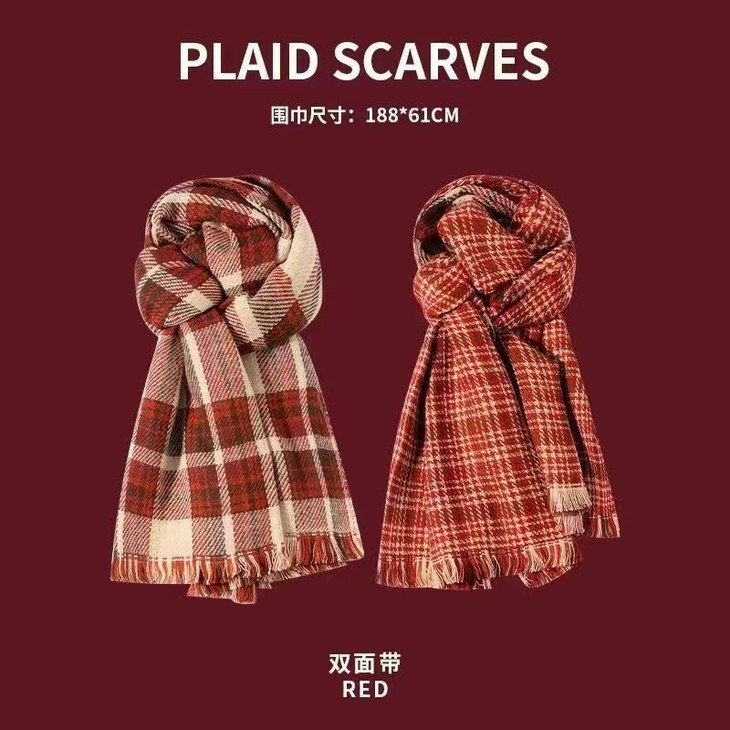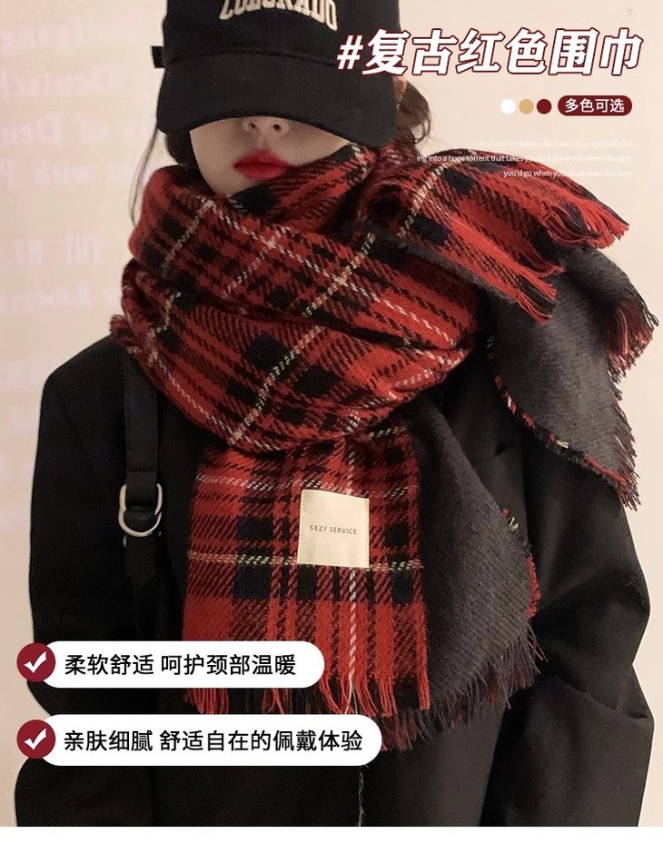 【积分兑换】复古红色围巾新款彩虹围巾女秋冬韩版外搭软糯网红保暖围脖长款围巾馨帮帮格子