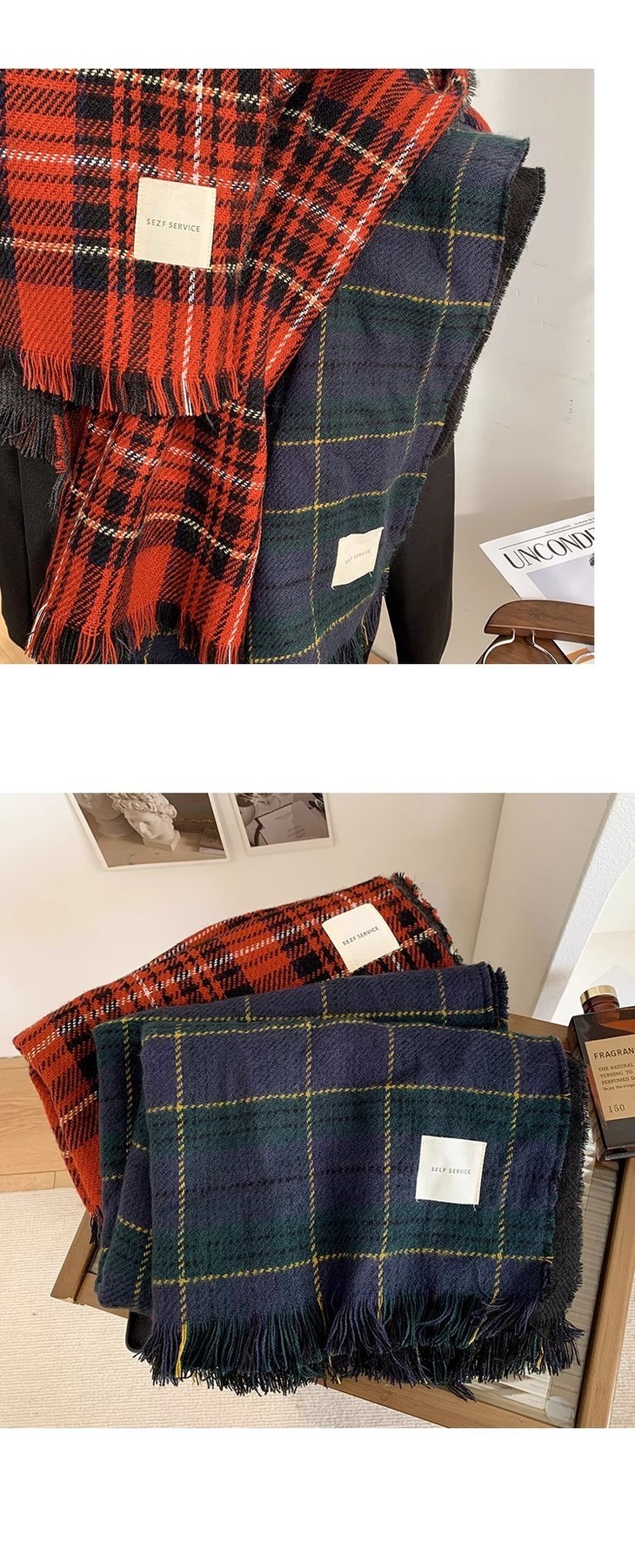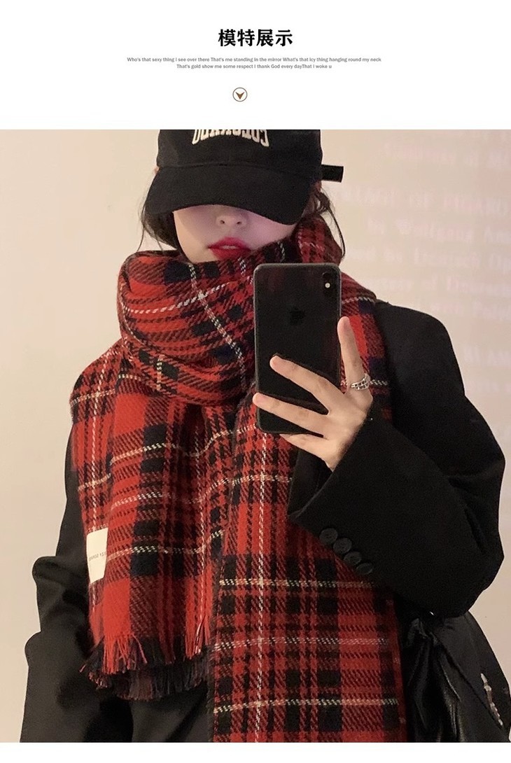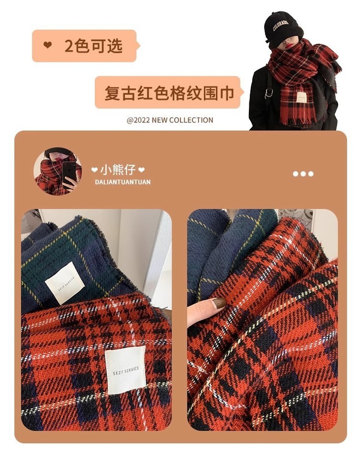 馨帮帮撞色格子围脖加厚保暖披肩学生韩版百搭御寒格纹围巾女冬季,格子围巾女秋冬季高级感韩版送生日礼物针织毛线软糯冬天,可定制色,尺寸,欢迎洽谈