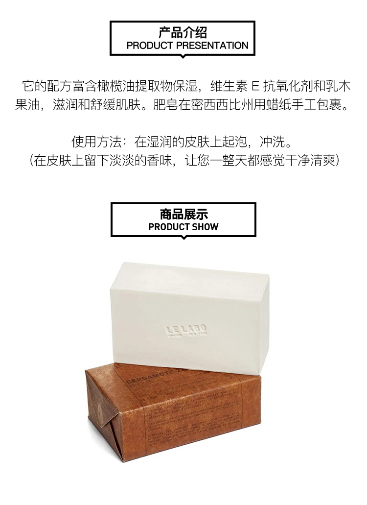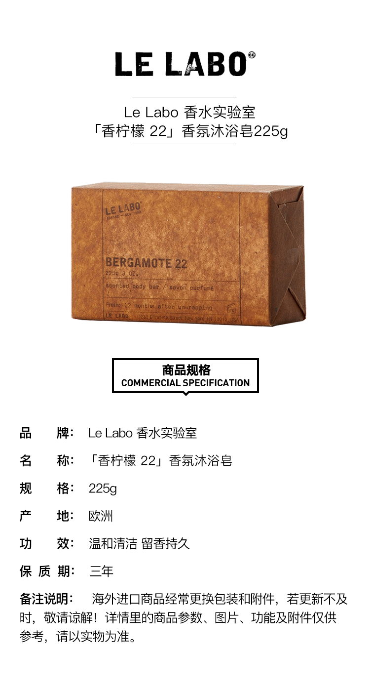 LE LABO/勒拉博香水实验室 香氛BERGAMOTE22-香柠檬22沐浴皂225g 温和留香持久