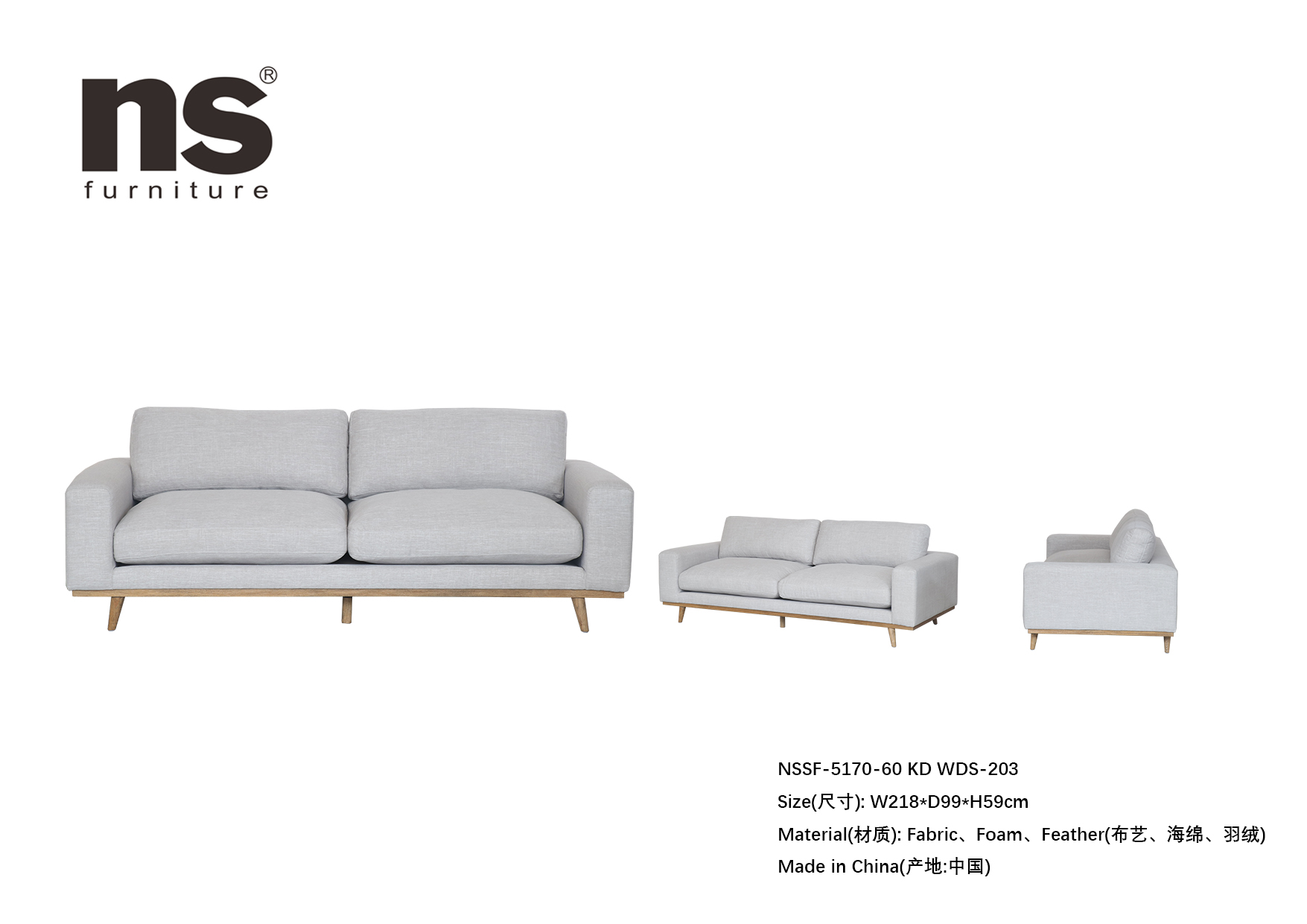 NS家居nsfurniture软包布艺沙发NSSF-5170-60 KD