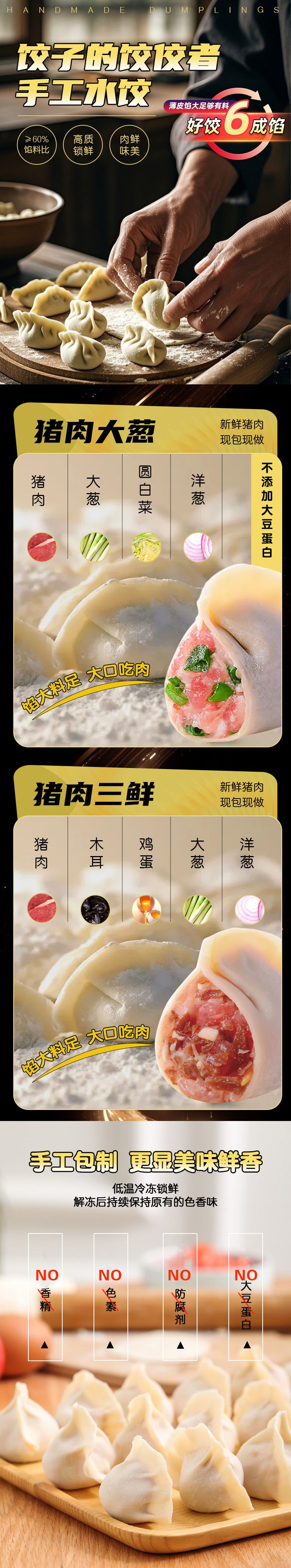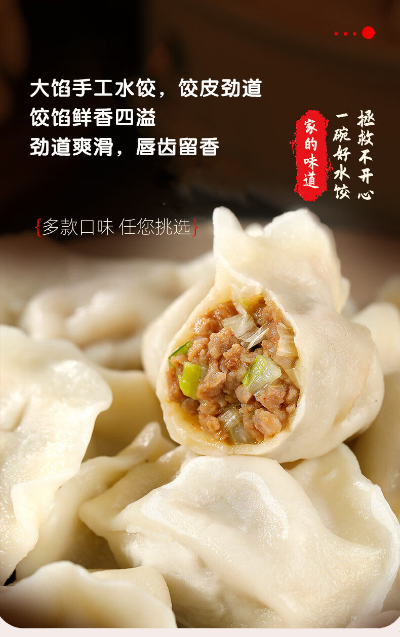 大馅手工水饺,4盒装(2种口味可选),速冻水饺,精选新鲜猪肉和蔬菜,手工制作,馅料鲜香诱人,皮薄馅大,劲道爽滑,制作简单,蒸煮煎炸D