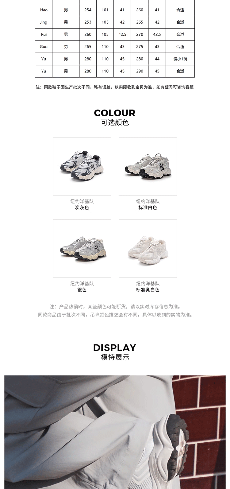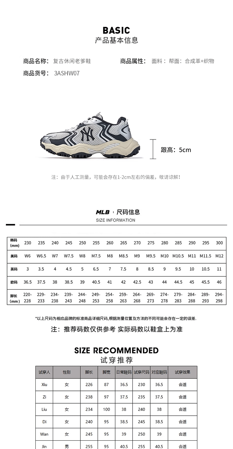 购买须知: 【品牌】:MLB【品名】:明星同款【MLB厚底网面增高老爹鞋】男女运动厚底增高网面老爹鞋25夏季新款 【颜色】白色 灰色 乳白色 银色 【码数】:36.5/37.5/38/38.5/39/40/40.5/41/42/42.5/43/44 【产地】:越南/韩国/中国/柬埔寨 随机发以实物收到的为准 【面料材质】:皮革+橡胶大底 【发货地】:广东仓/福建仓 【发货快递】:中通快递/申通快递 随机发 【包装方式】:盒装 【发货时效】:72小时 【运费标准】:包邮,新疆,西藏不发,其他地区全国包邮 【售后政策】:支持7天无理由退换货,非质量问题客户承担寄回运费 |