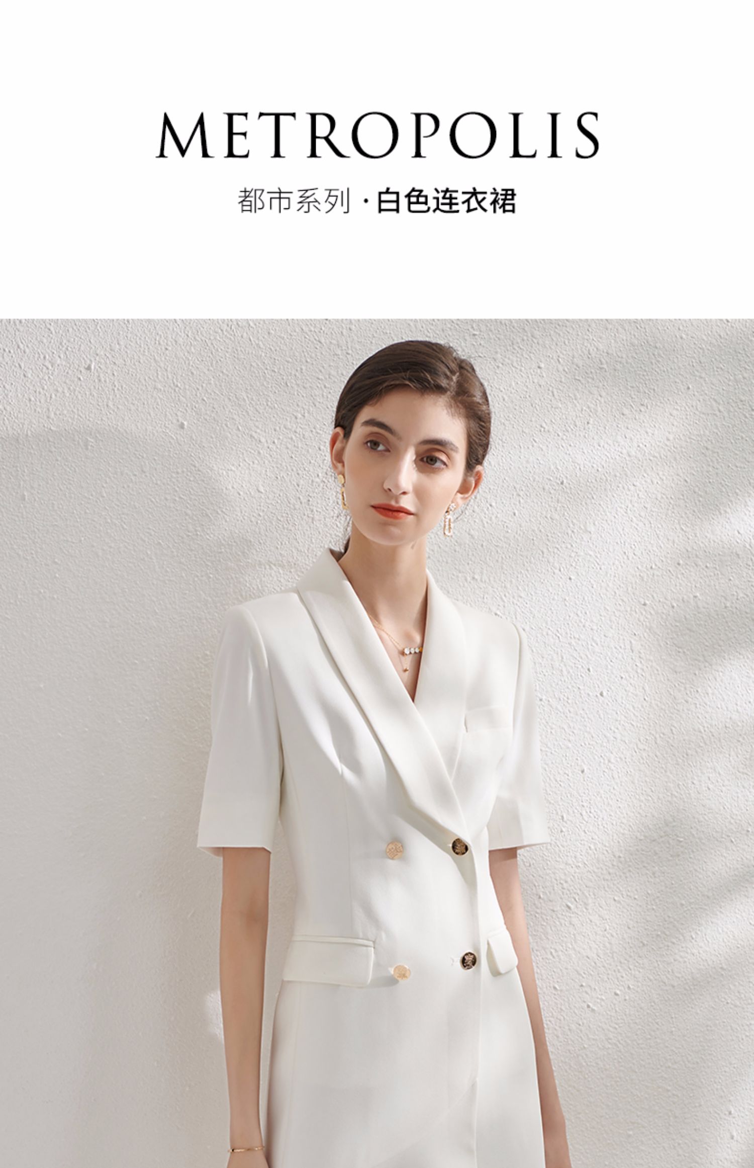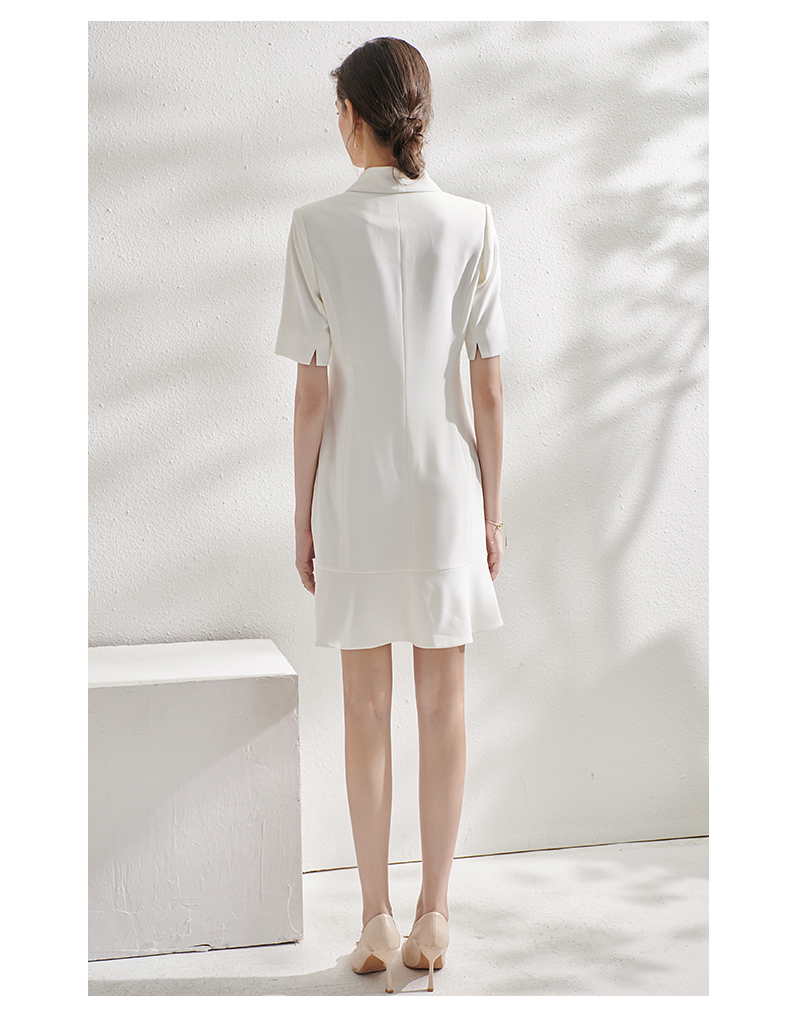 IWY/白色西装连衣裙女短袖时尚通勤高端工作服收腰修身气质职业套裙Q11255