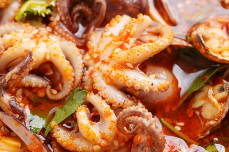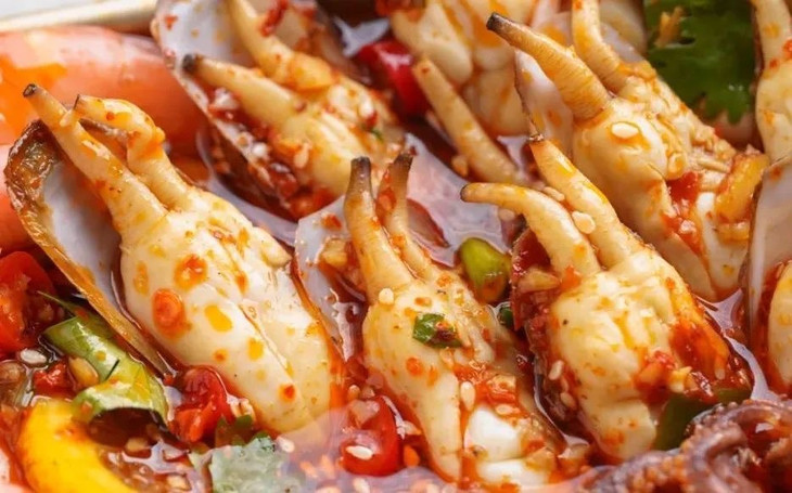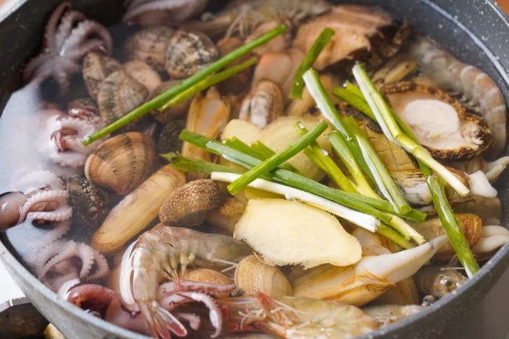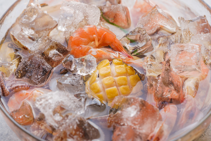 捞出海鲜浸入冰水,待完全冷却后沥干水分备用