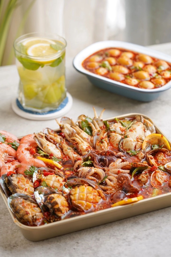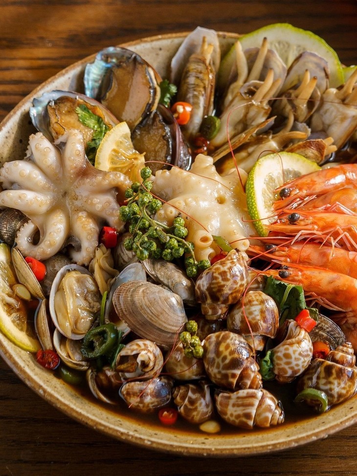 大盘的捞汁海鲜是盛夏味蕾的满足 游过冰水后的海鲜 能把凉爽的嚼劲和鲜美体现得淋漓尽致 海鲜自带鲜甜,只需调一碗料汁,便激发出最大的鲜美 八爪鱼弹牙、生蚝爽滑、蛏子肥美、虾仁Q弹、花蛤软嫩,改过花刀的厚实鲍鱼…… 剩余的捞汁不想浪费 浸个鹌鹑蛋也特别妙 放嘴里啵唧一下流出软金似的溏心 是鲜味的小炮弹。 吃完海鲜,再用这个捞汁来拌一碗面吧 充分利用到最后一滴,一定要试试