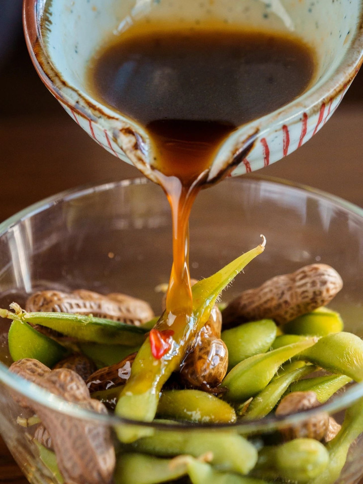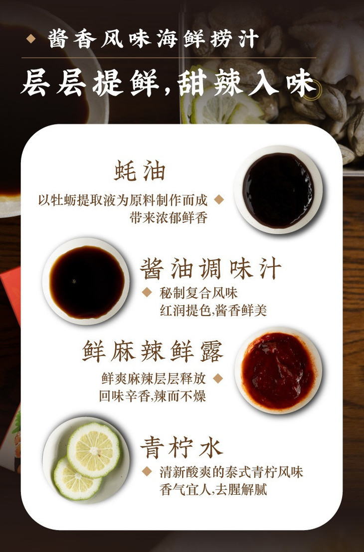 工艺和配料: 鲜牡蛎提取鲜汁制成蚝油; 复合酱油调味汁选择了更适合凉拌的秘制配方; 麻辣鲜露用来提升香味和口感; 青柠水的芳香帮助提升清新度,去腥膻。 此外我们采用巴氏杀菌工艺,精准控温,用心还原鲜滋味