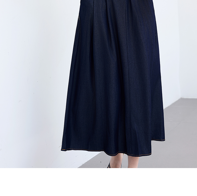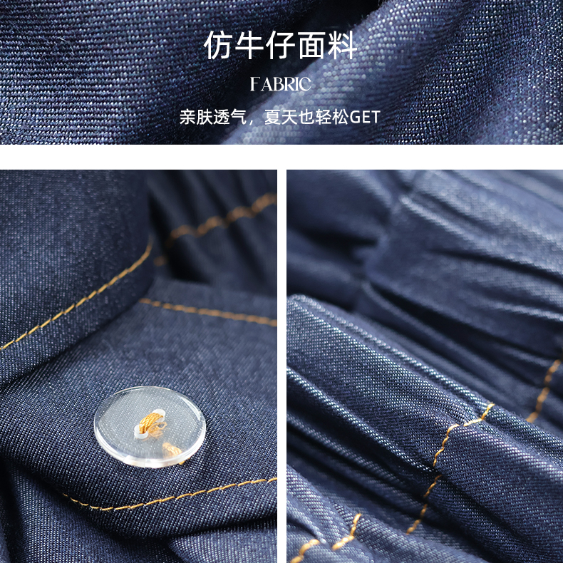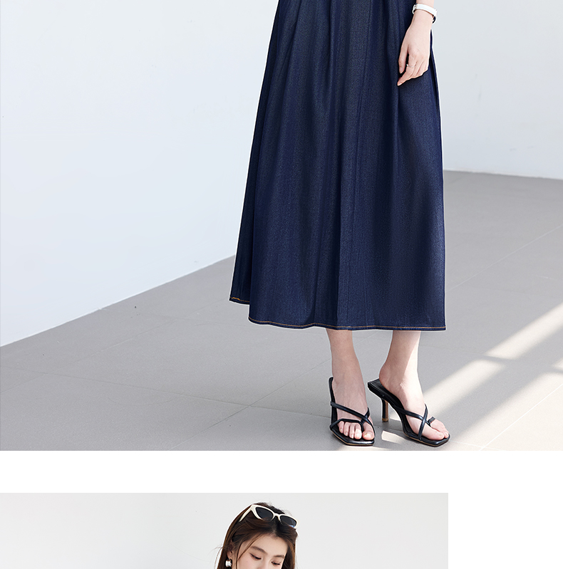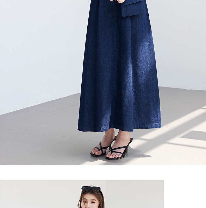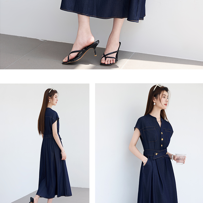 VICTORIA&VERA夏季“影迹交织”仿牛仔无袖连衣裙中长款交叉腰纽扣装饰显瘦遮胯休闲裙---V9013L18