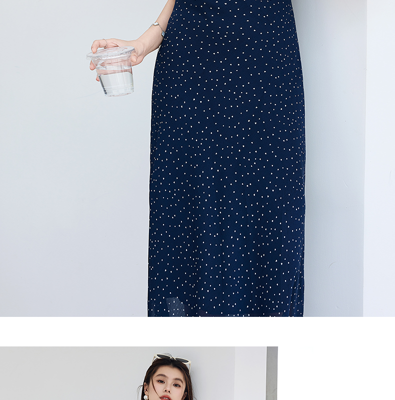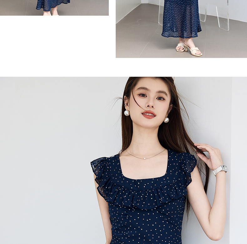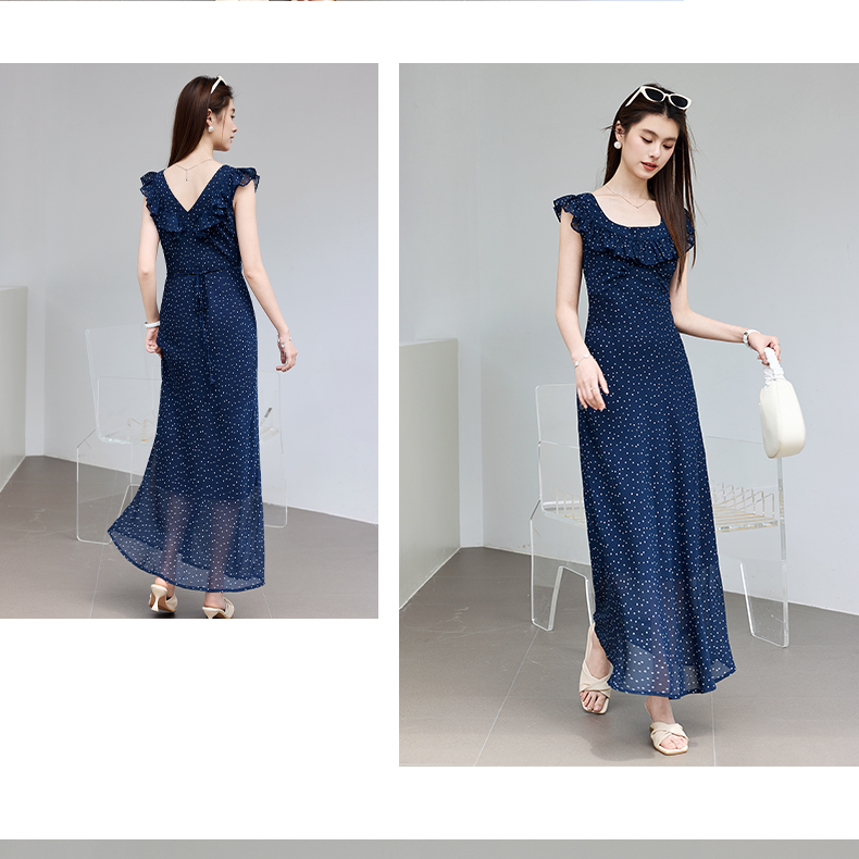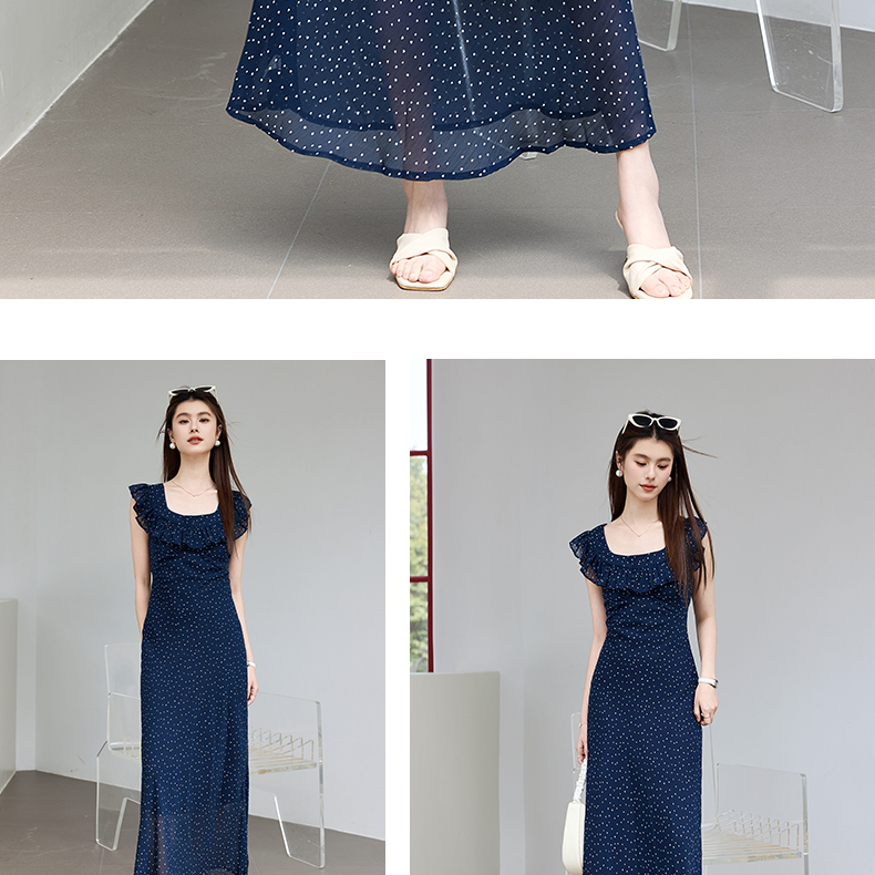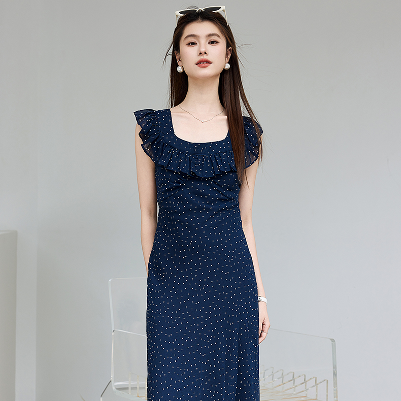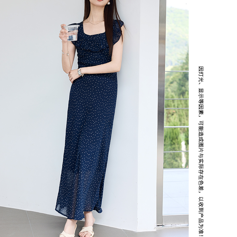 VICTORIA&VERA夏季“复古胶片”法式波点连衣裙荷叶边方领系带收腰显瘦遮副乳通勤度假风---V9013L12