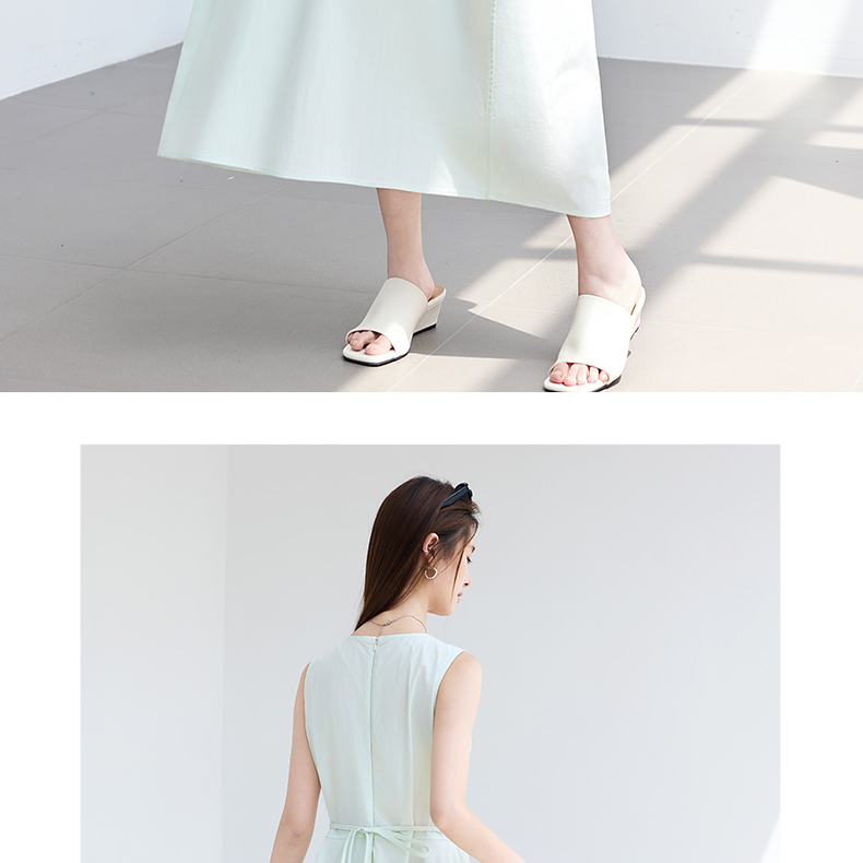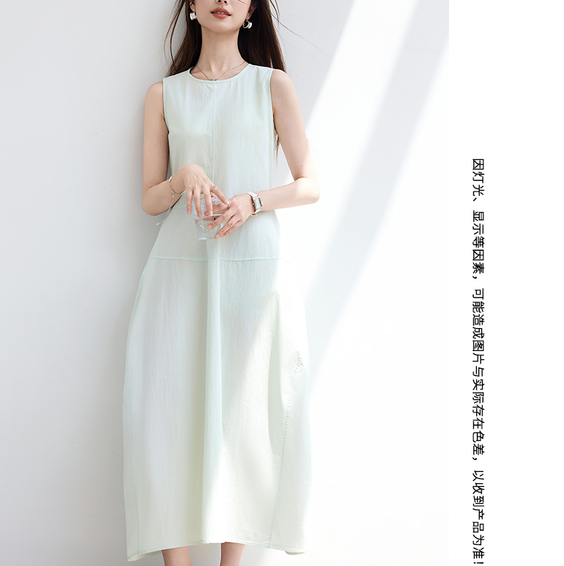VICTORIA&VERA夏季“绿野呼吸”系列法式无袖花苞连衣裙系带收腰显瘦遮胯通勤度假风---V9013L11