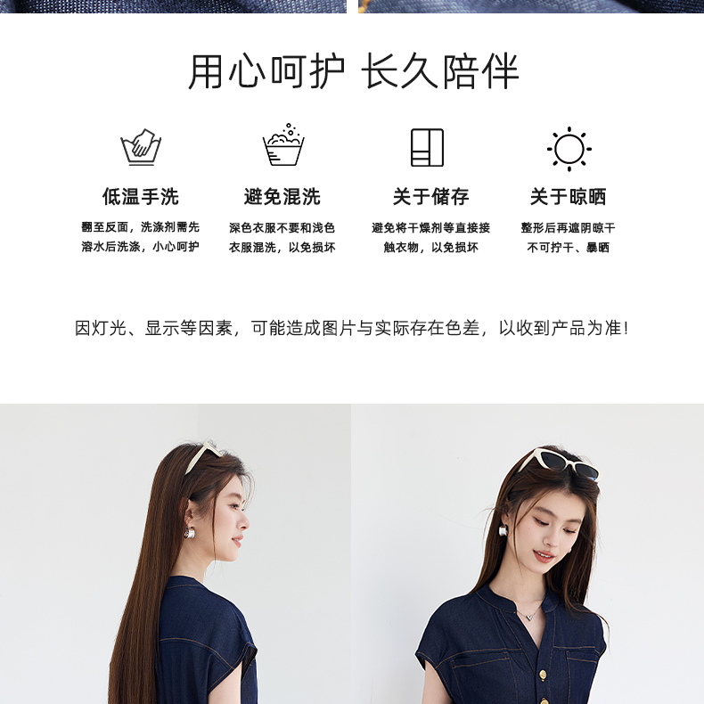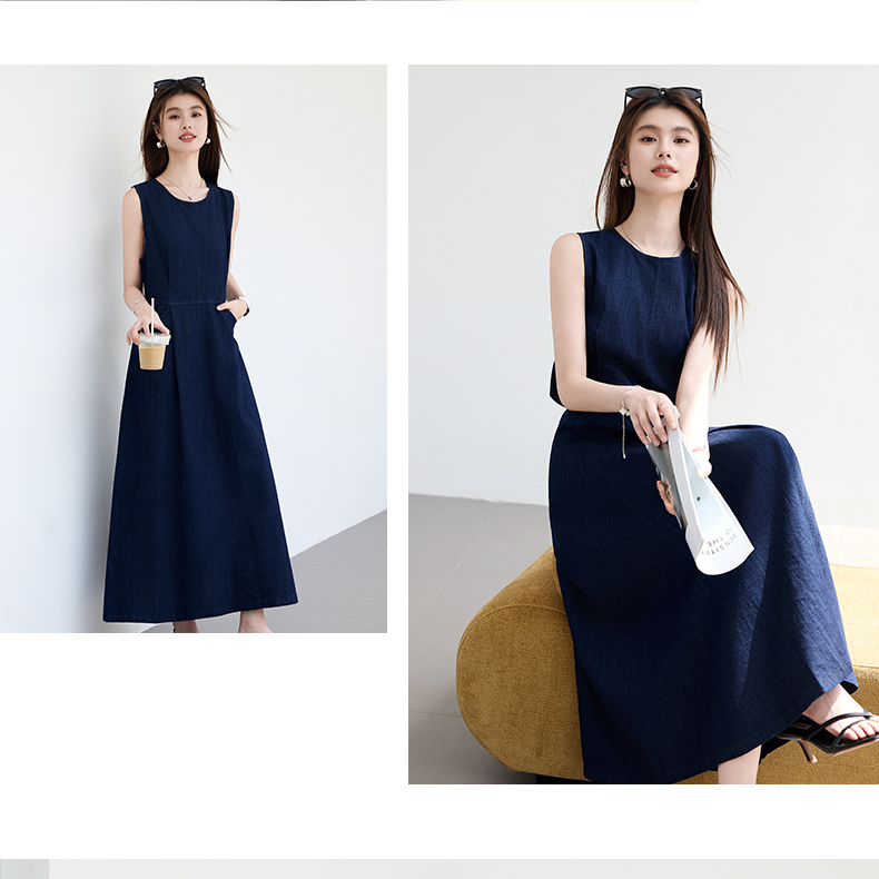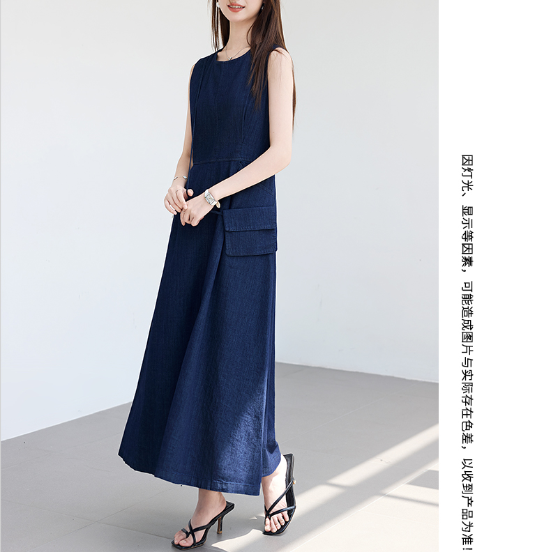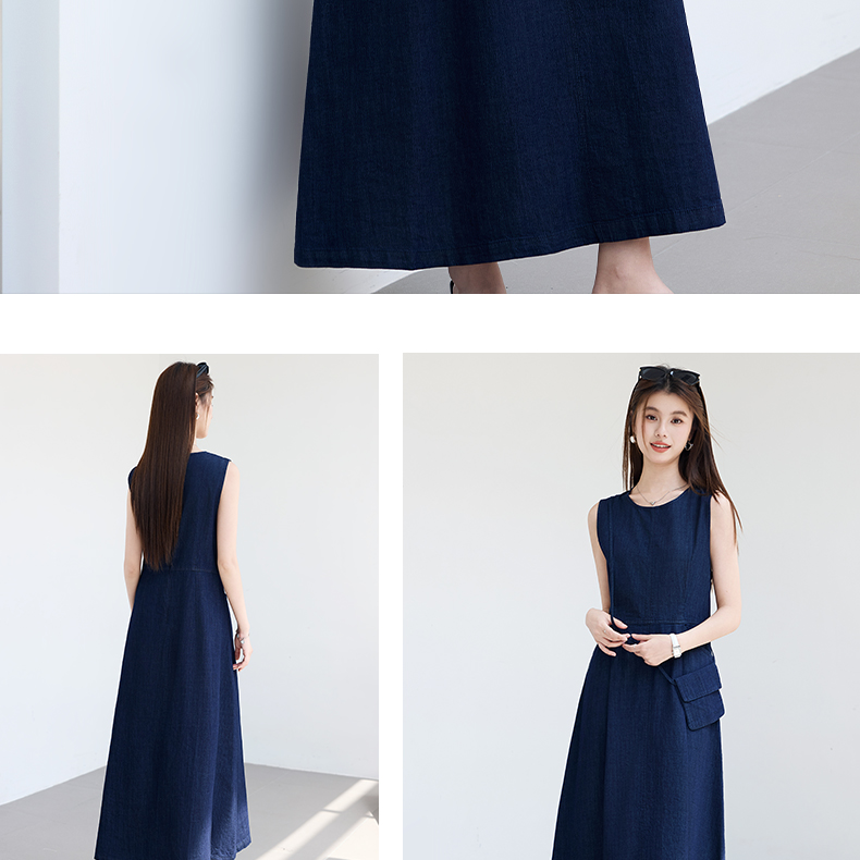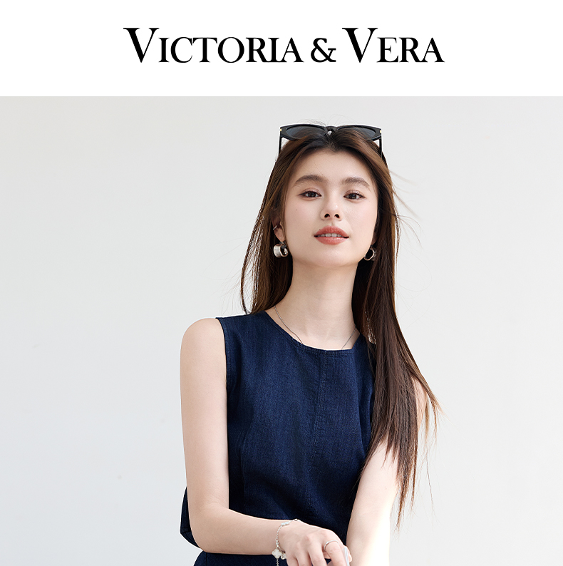 VICTORIA&VERA夏季“蓝氧漫游”仿牛仔无袖连衣裙慵懒垂感+赠同色系mini包遮肉度假套装---V9013L19