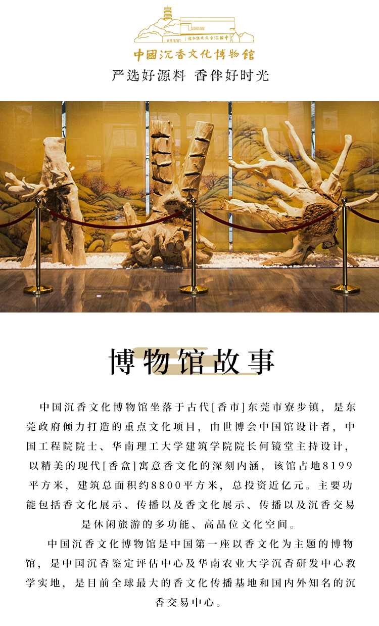 中国沉香文化博物馆坐落于古代[香市]东莞市寮步镇,是东莞政府倾力打造的重点文化项目,由世博会中国馆设计者,中国工程院院士、华南理工大学建筑学院院长何镜堂主持设计,以精美的现代[香盒]寓意香文化的深刻内