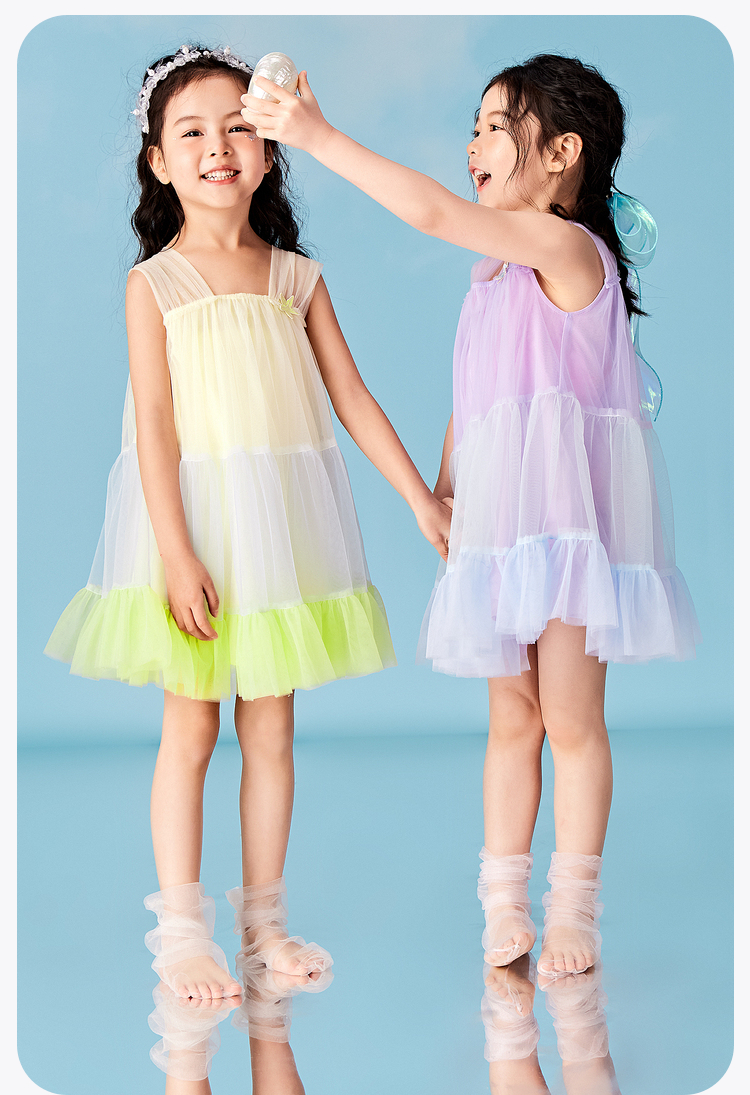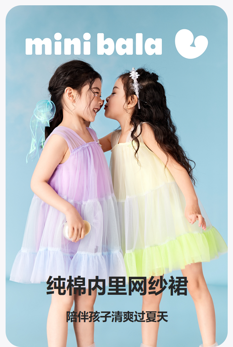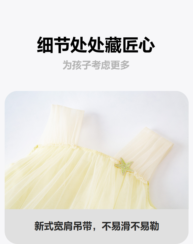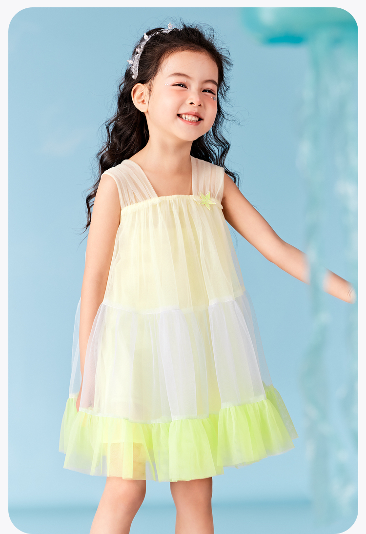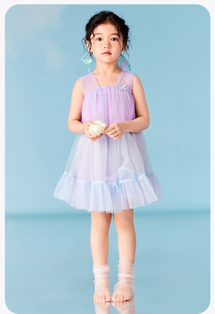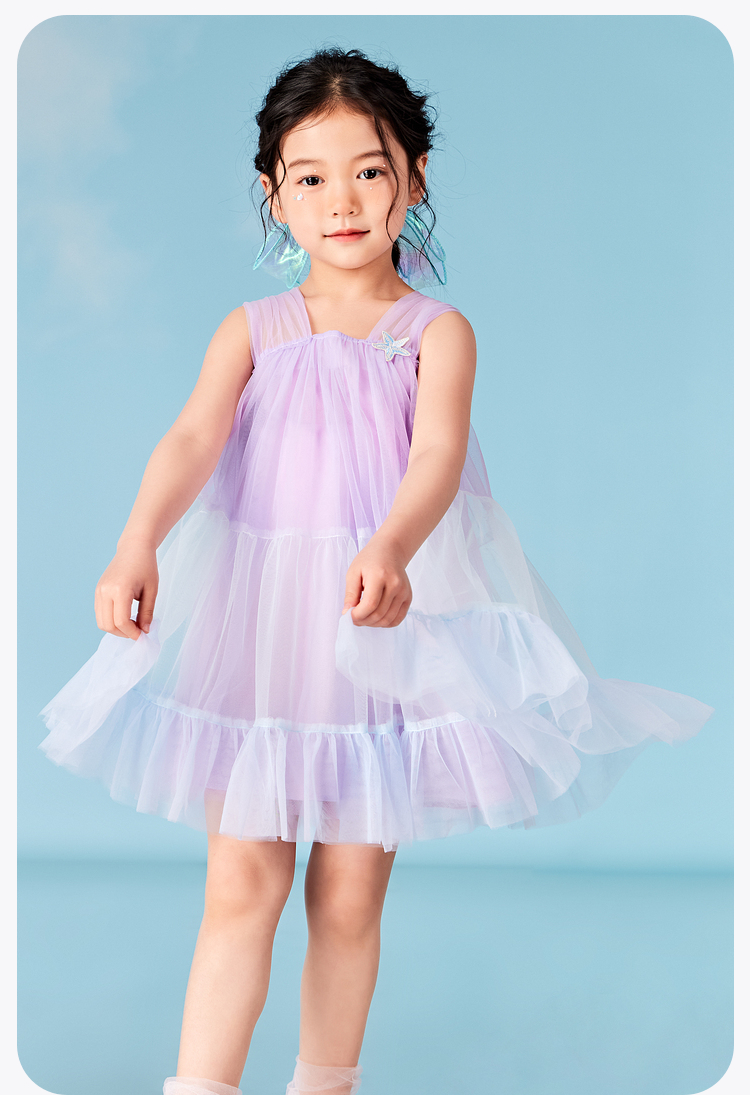迷你巴拉女童连衣裙夏纯棉甜美海洋风网纱蓬蓬裙宽松时髦百搭