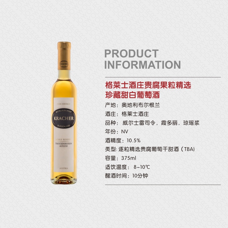 格莱士TBA贵腐果粒精选珍藏甜白葡萄酒375ml