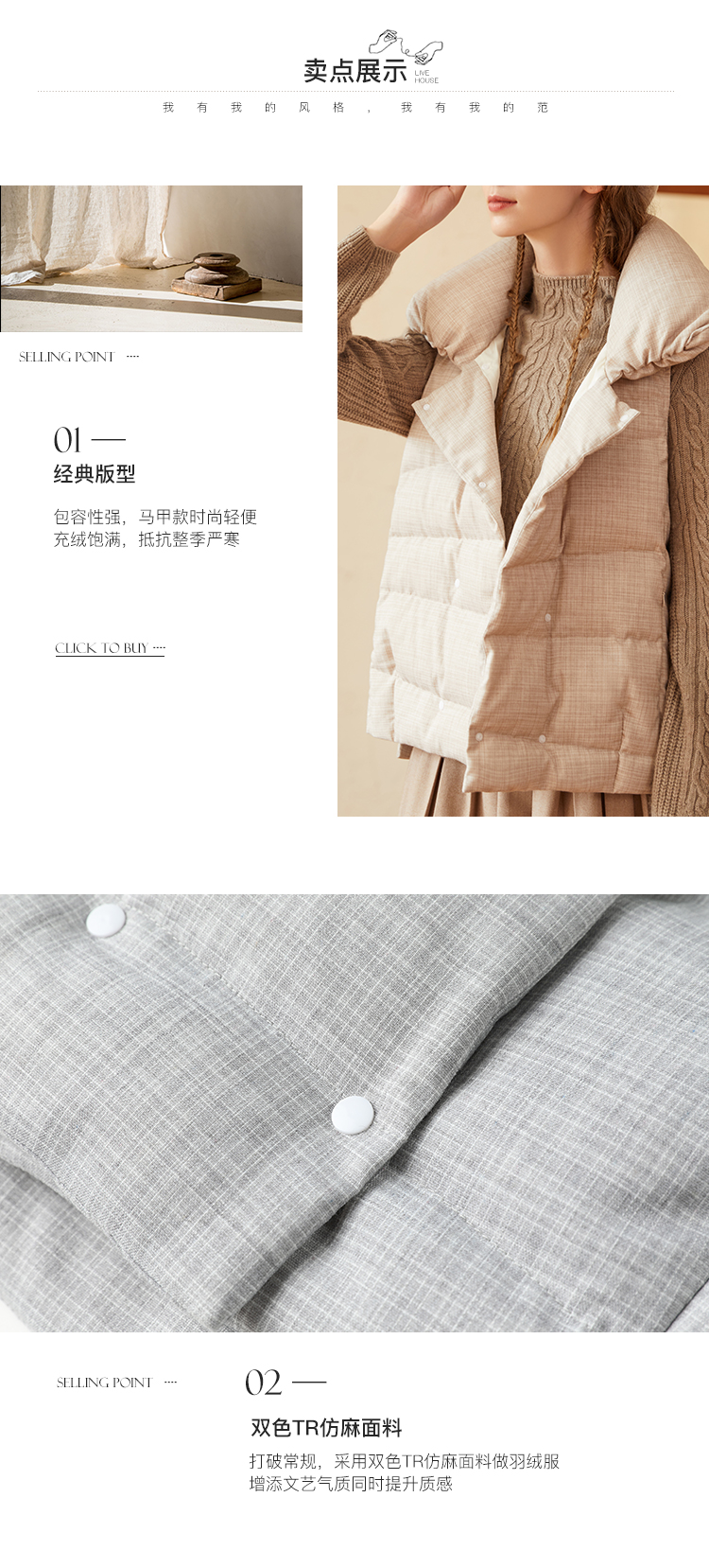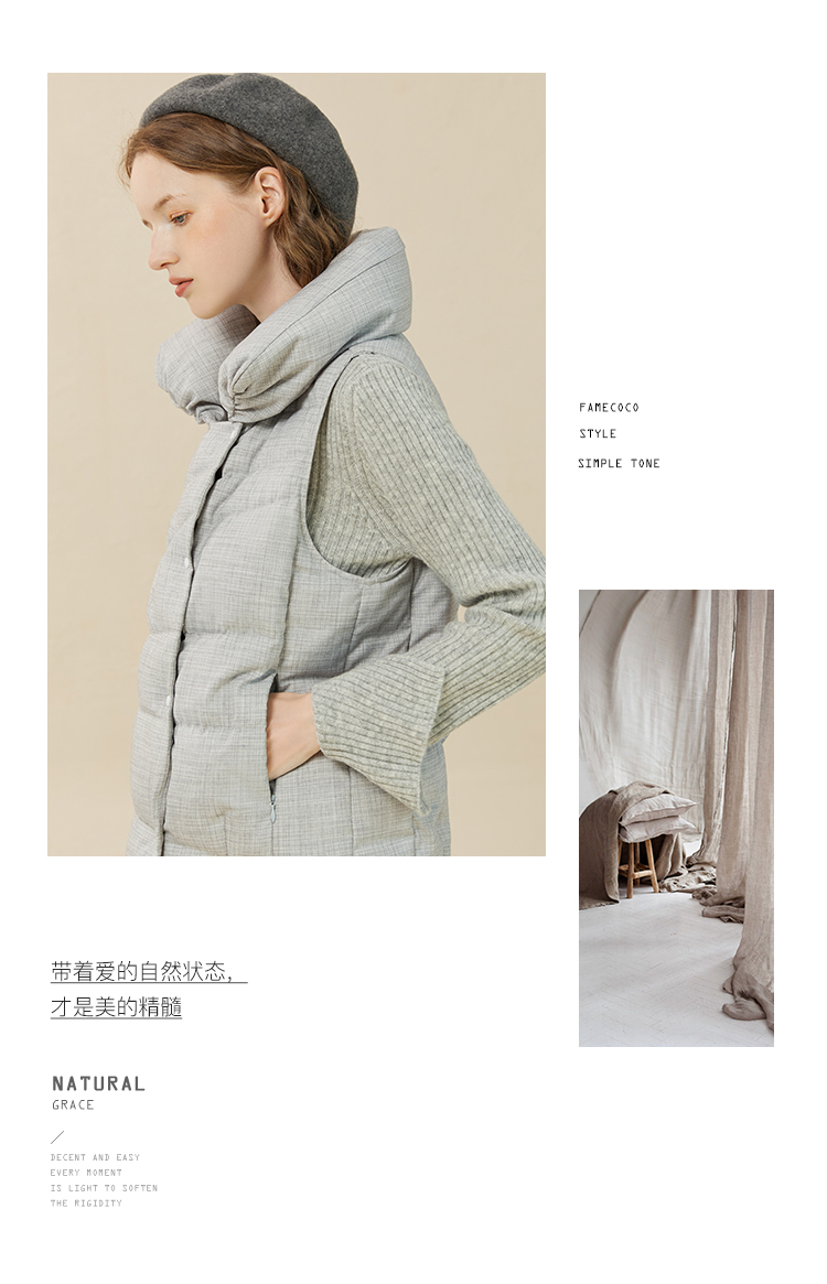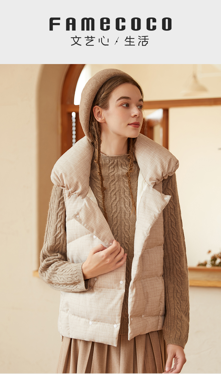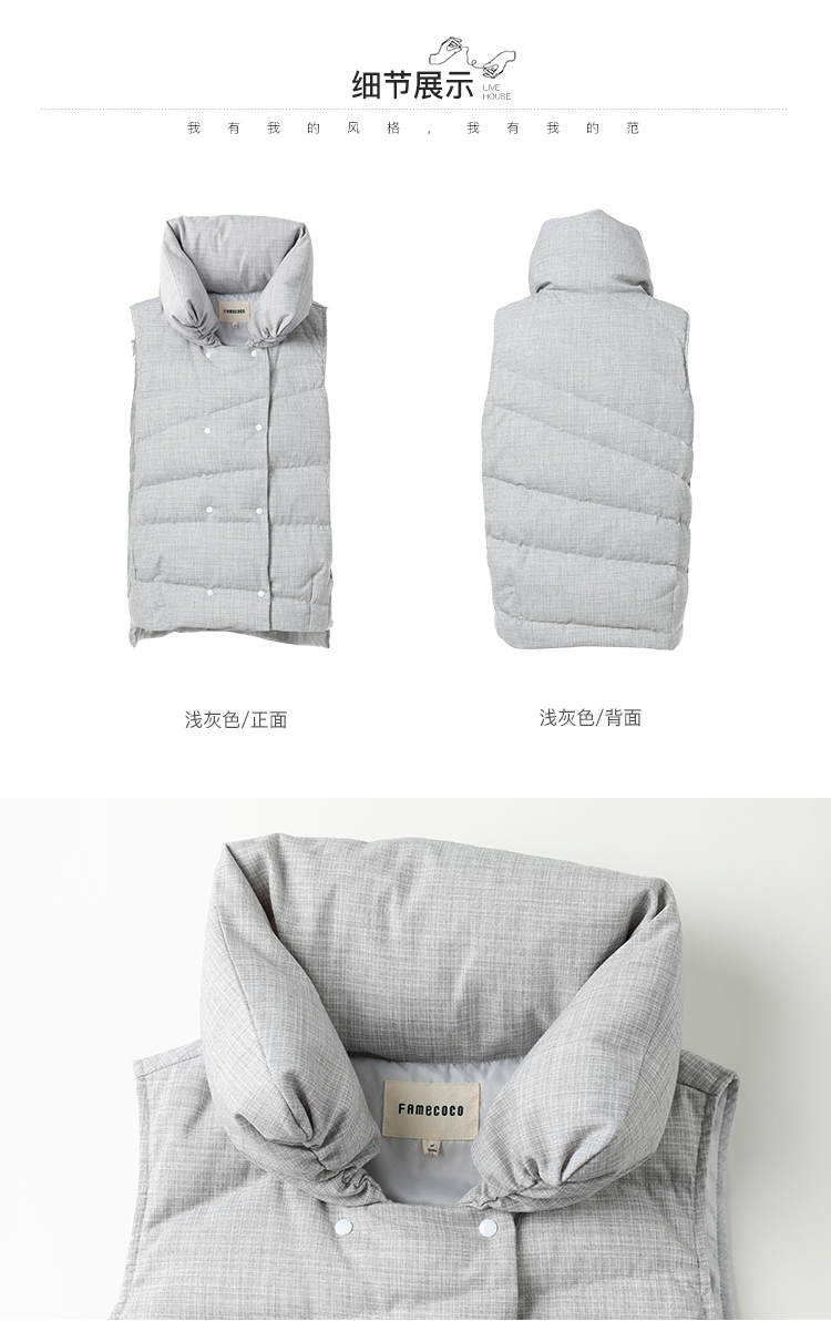 famecoco范可儿羽绒马甲背心女冬季外穿立领坎肩上衣外套F228CA007