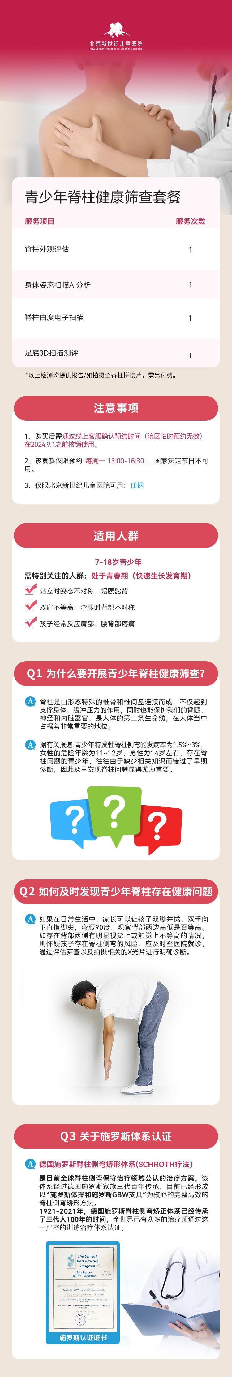 1、该套餐仅限预约北京新世纪儿童医院每周一,小儿骨科任钢主任专属套餐号源(后续随产品销量动态调整号源类别)国家法定节日不可用。购买后需通过线上客服联系预约