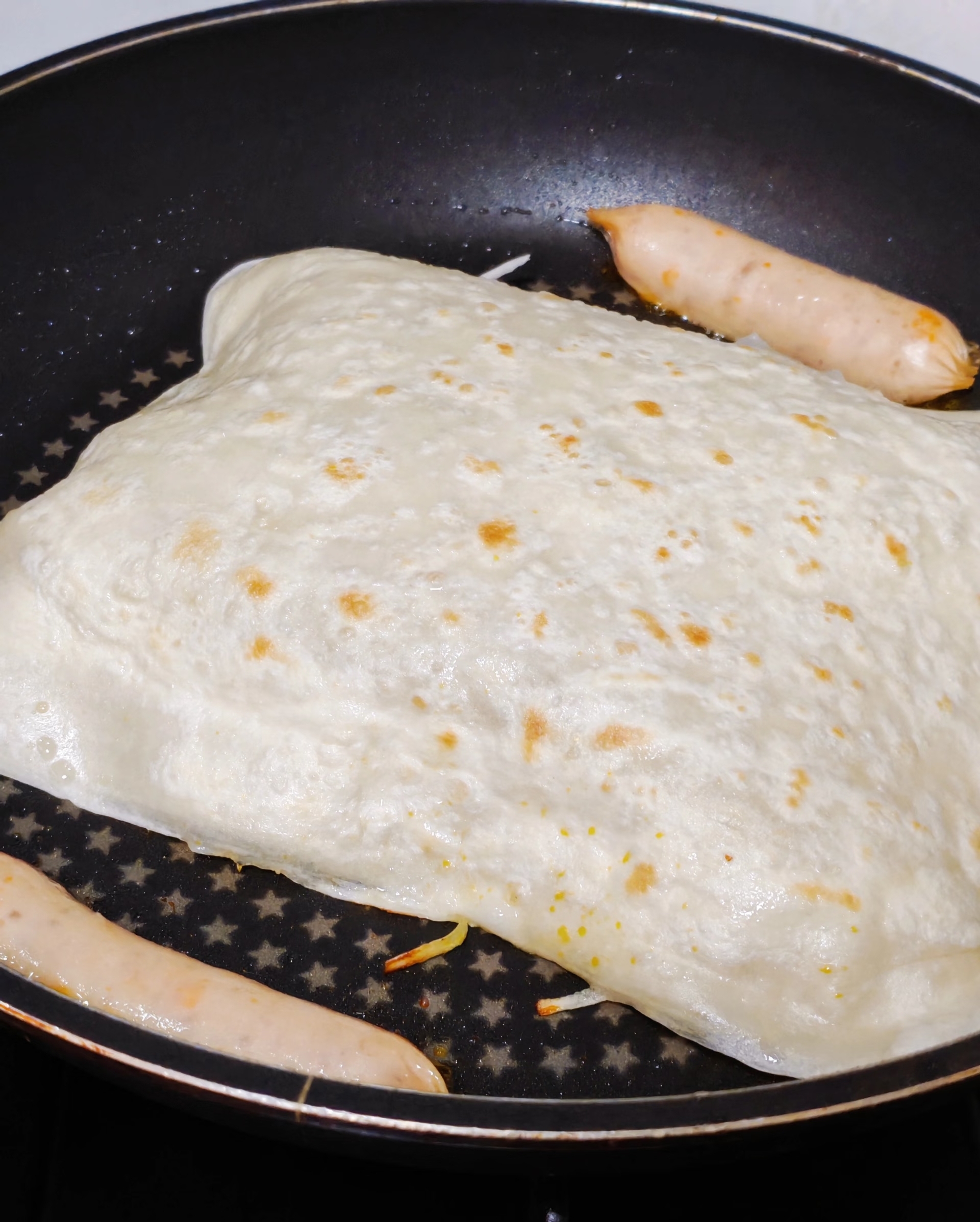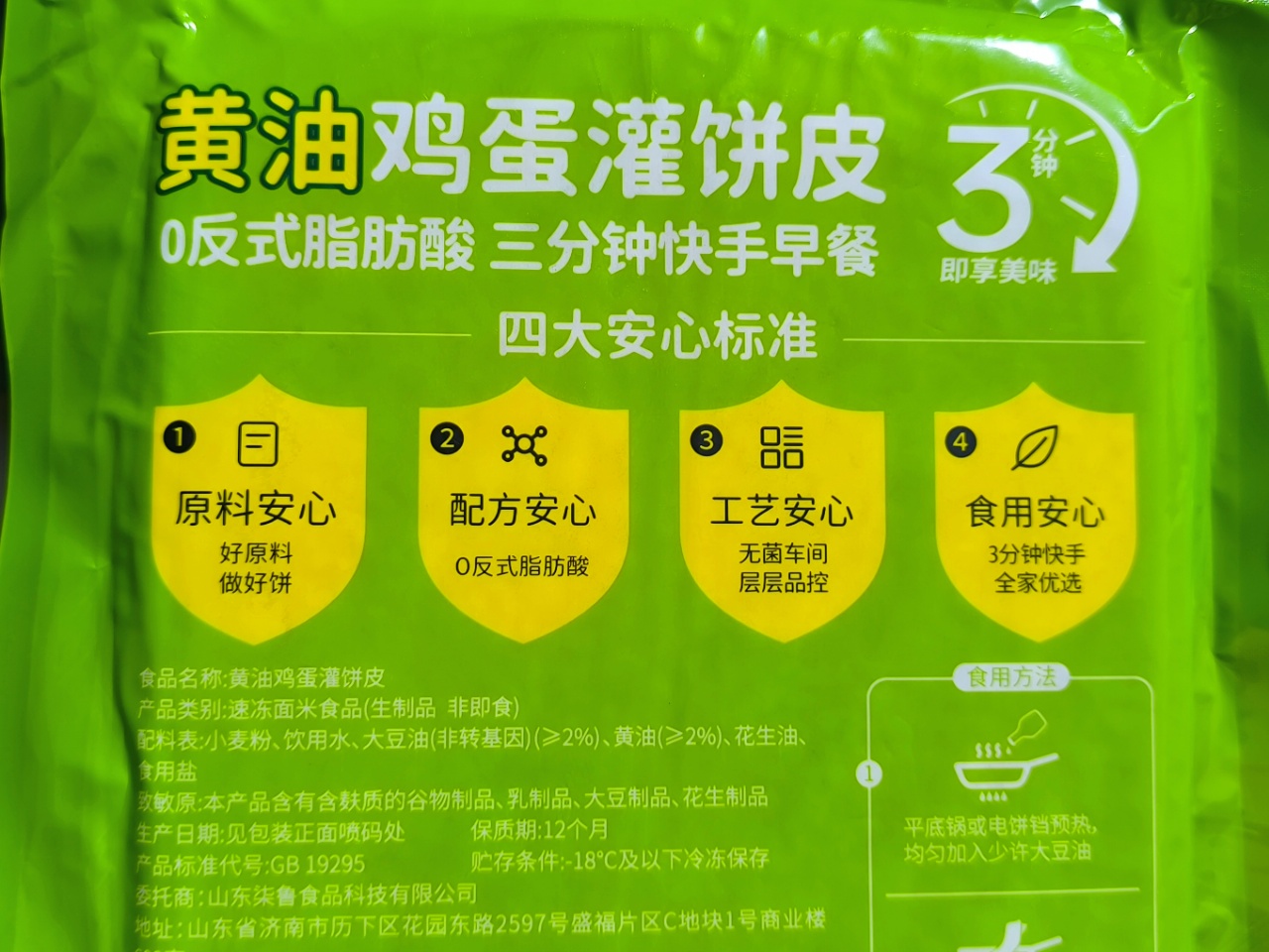 🥚 经典鸡蛋灌饼(最推荐):无需解冻,平底锅刷一层薄油,中小火放入饼皮,煎30秒至饼皮鼓起大泡,用筷子戳一个小洞,倒入打散的鸡蛋液(可加少许盐、葱花提味),翻面再煎30-60秒,直到鸡蛋熟透、饼皮金黄,出锅后抹上甜面酱、蒜蓉酱,卷鸡排/烤肠,一口解锁同款美味!