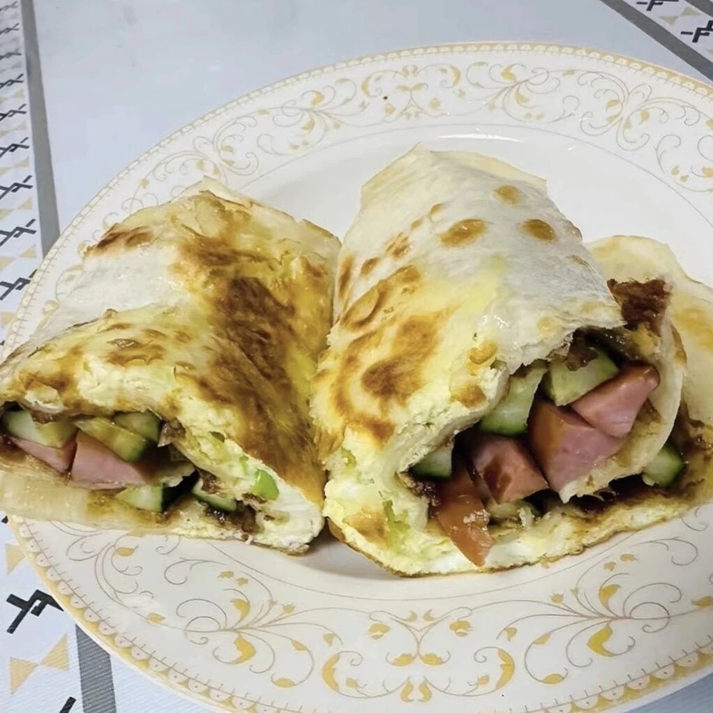 🔺一片金黄灌饼+灵魂酱料+绿油油生菜/黄瓜,清爽解腻,低卡无负担
