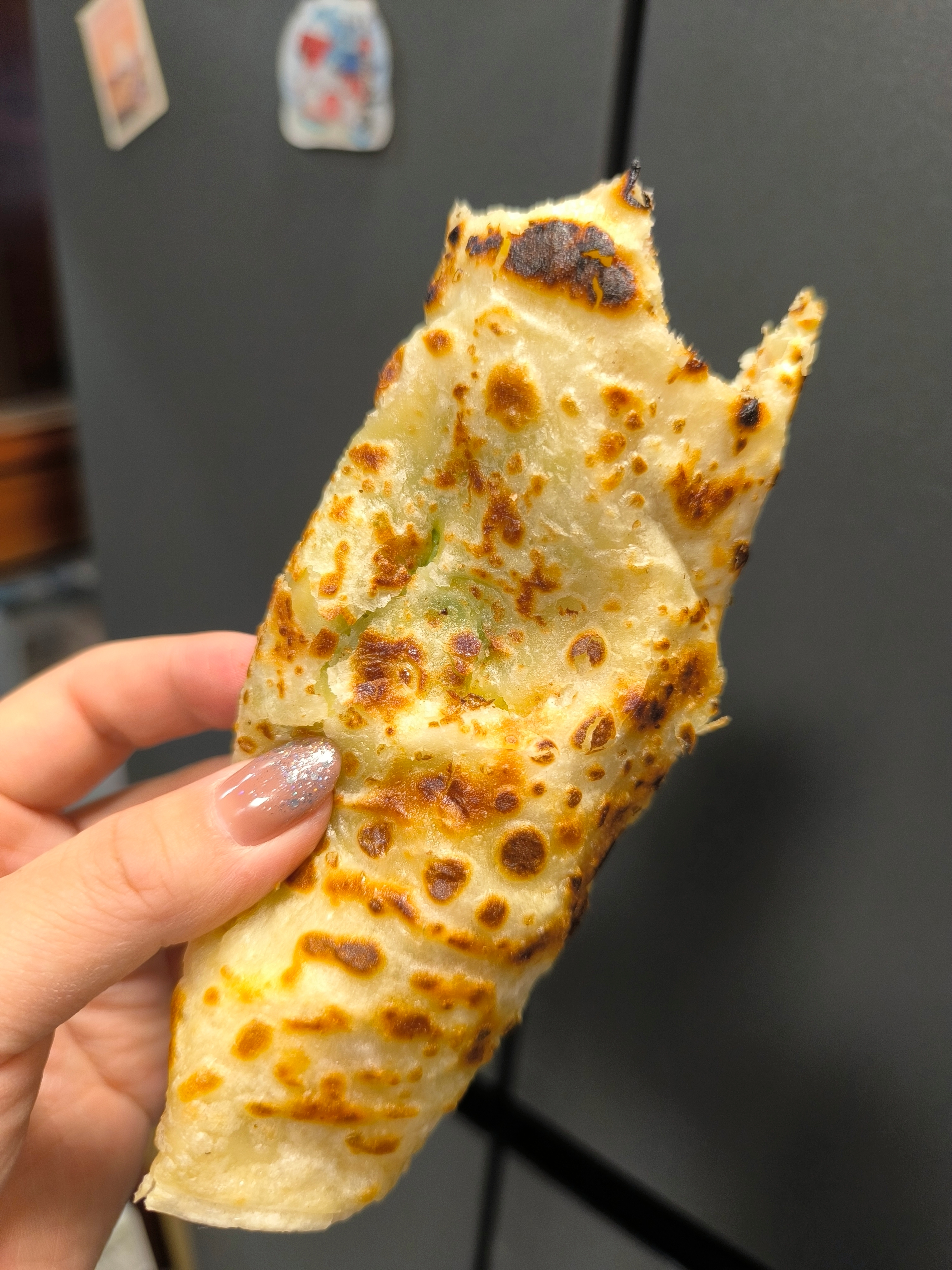 🥞 采用传统半烫面工艺,反复揉制擀压,打造出多层起酥的口感,外皮微脆、内里软韧,咬一口酥香掉渣,黄油的醇香裹着鸡蛋的鲜香,比街头早餐摊的更干净、更入味,没有多余的油腻感,空口吃都能炫两张😋!
