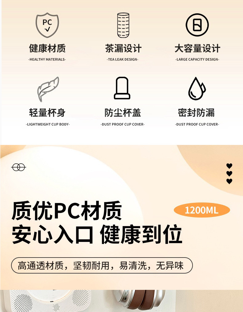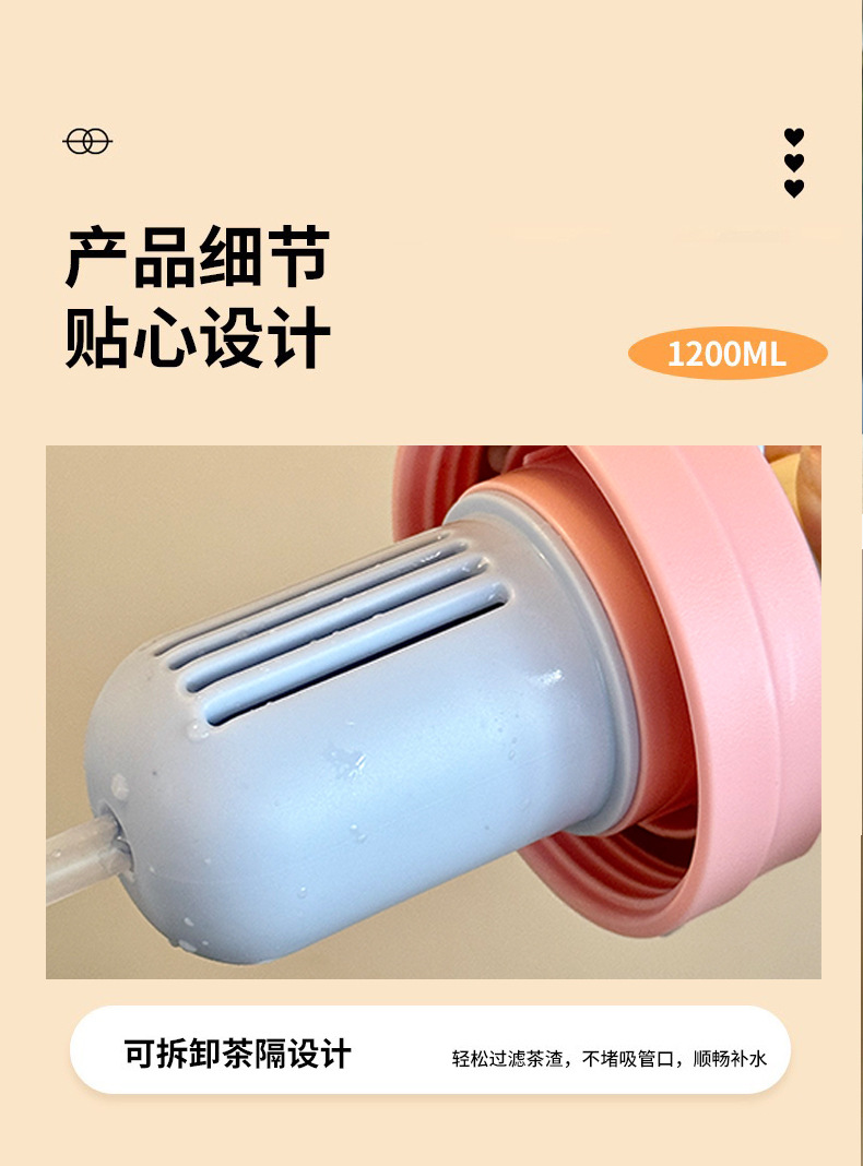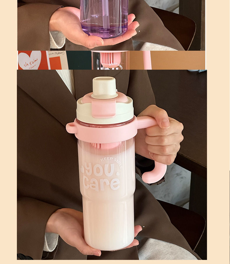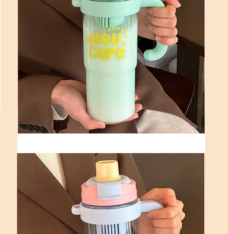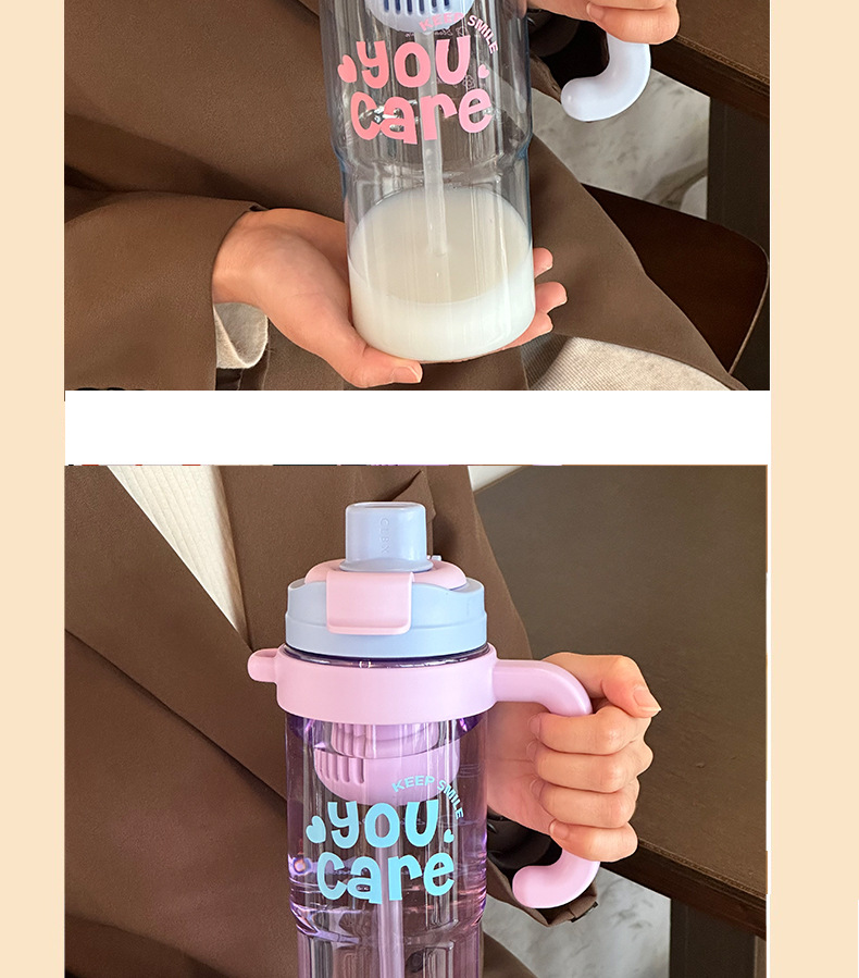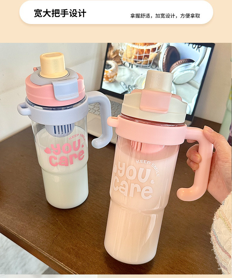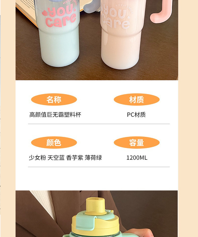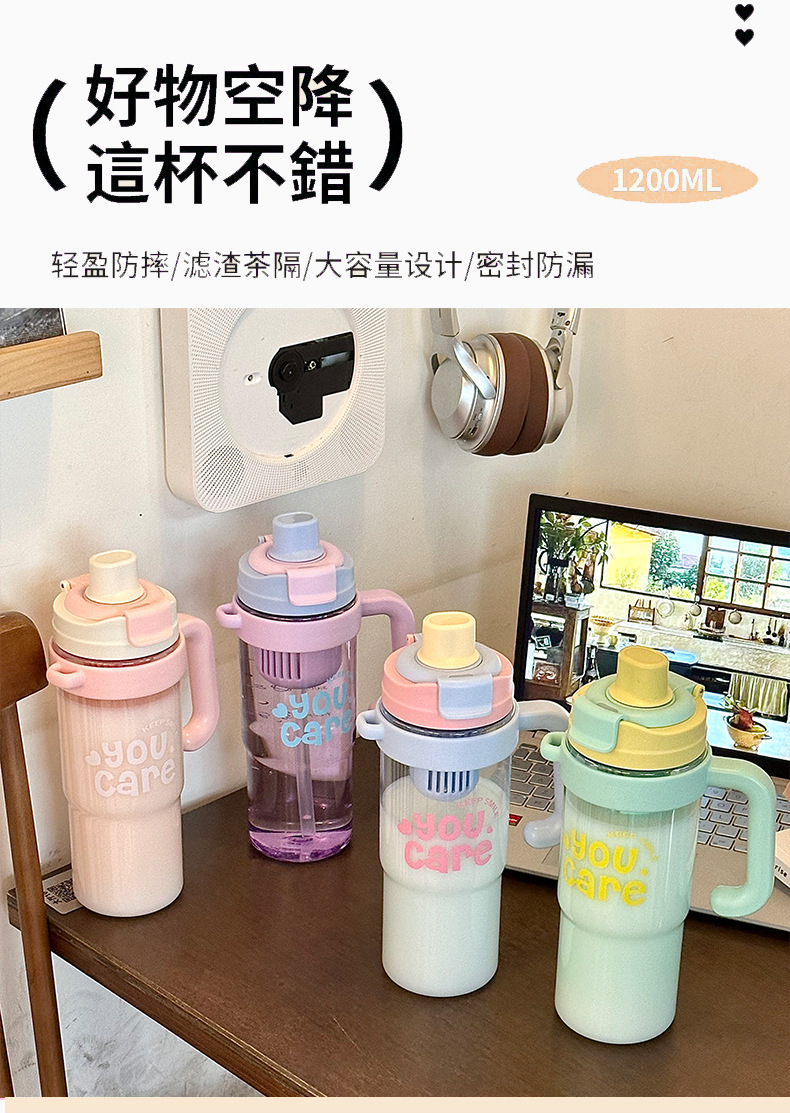 【1200ml超大容量❗️双饮冰霸杯吸管杯】吸喝(双饮)增加饮水趣味,一盖两用直饮&吸管,解锁两种喝法,夏季女大容量吸管杯手柄水杯便携杯子,耐高温塑料杯双饮冰霸杯L