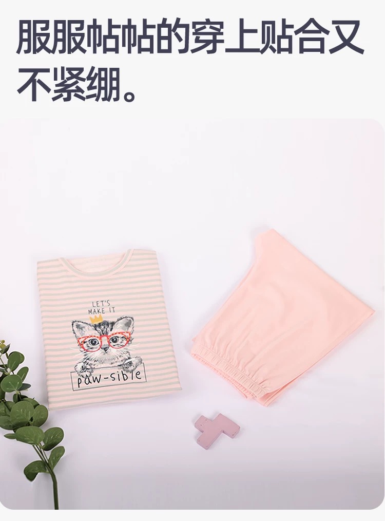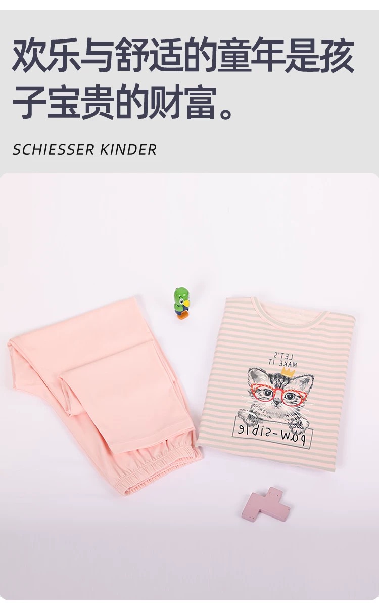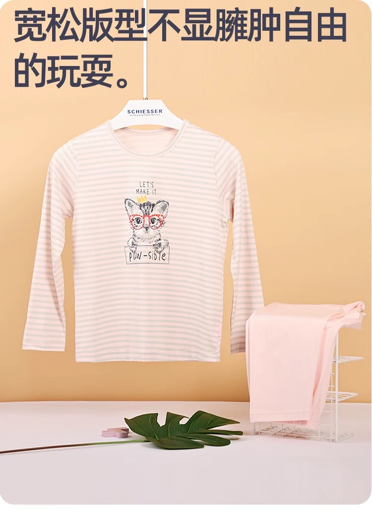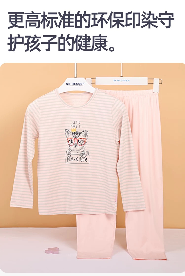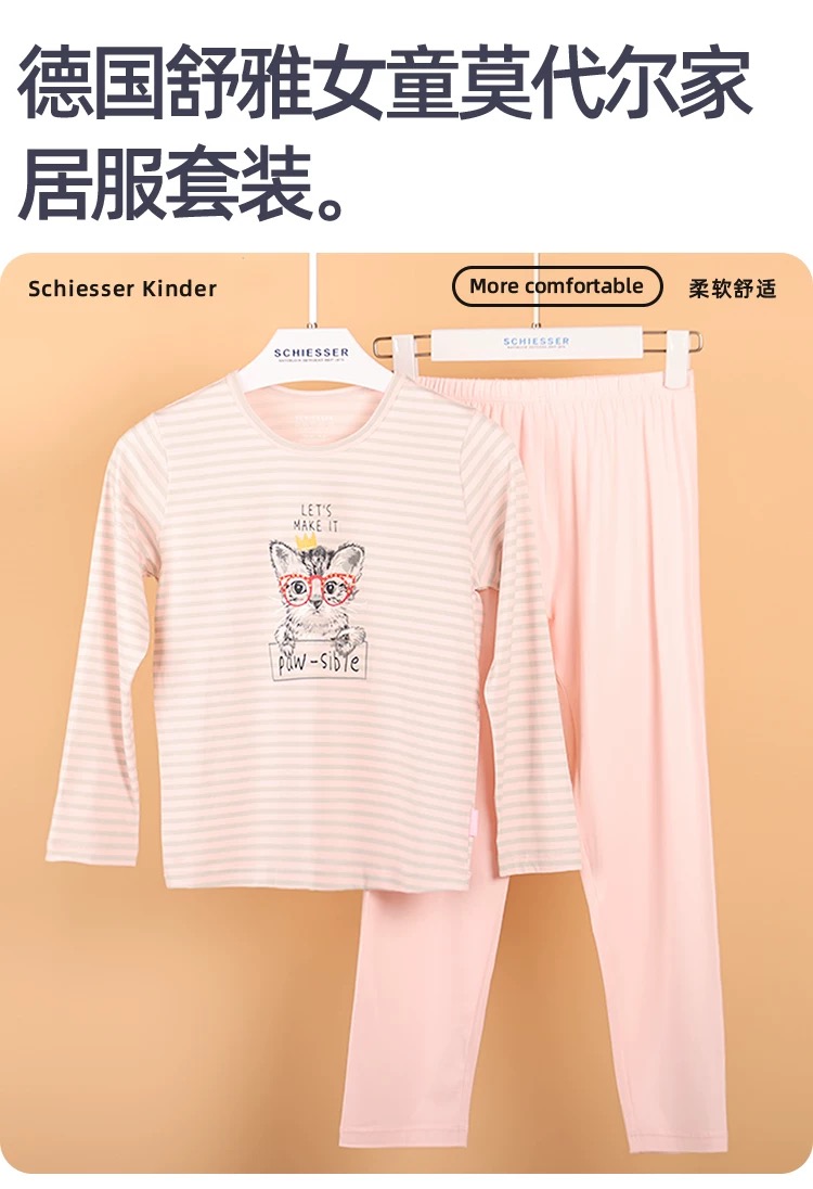 【棉莫可爱小猫咪】SCHIESSER德国舒雅女童棉莫面料可爱小猫咪新款家居服套装3F/23331H
