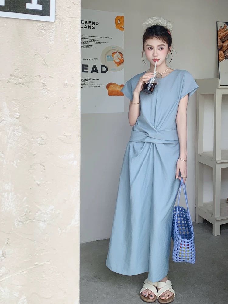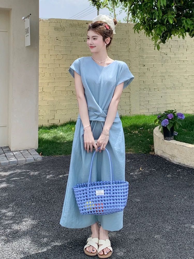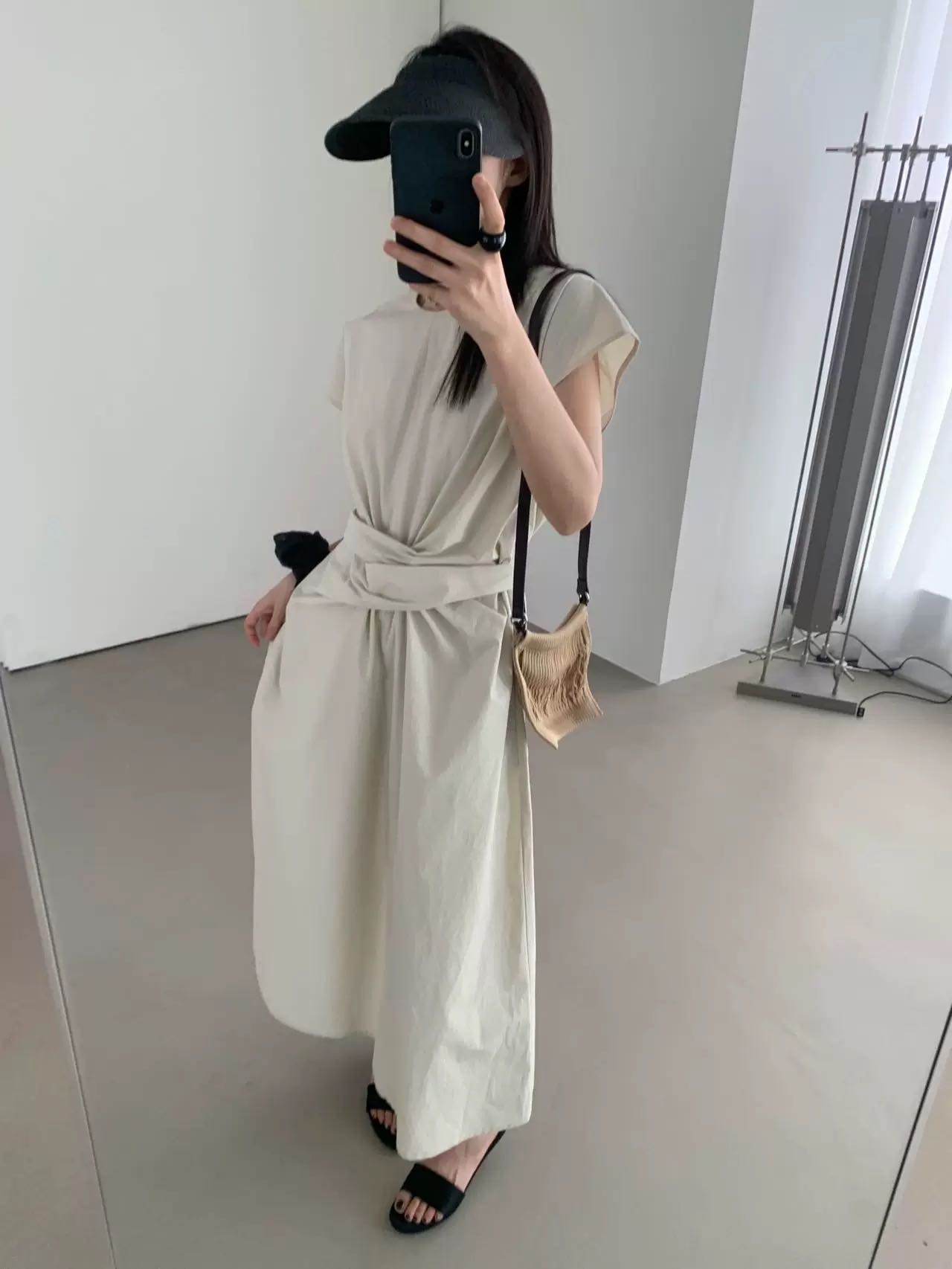 【GZ】无忧购法式温柔交叉系带蝴蝶结收腰a字连衣裙1953(截单后3-5天发货)