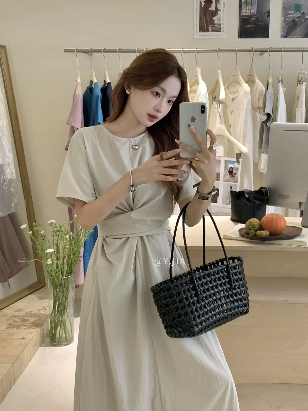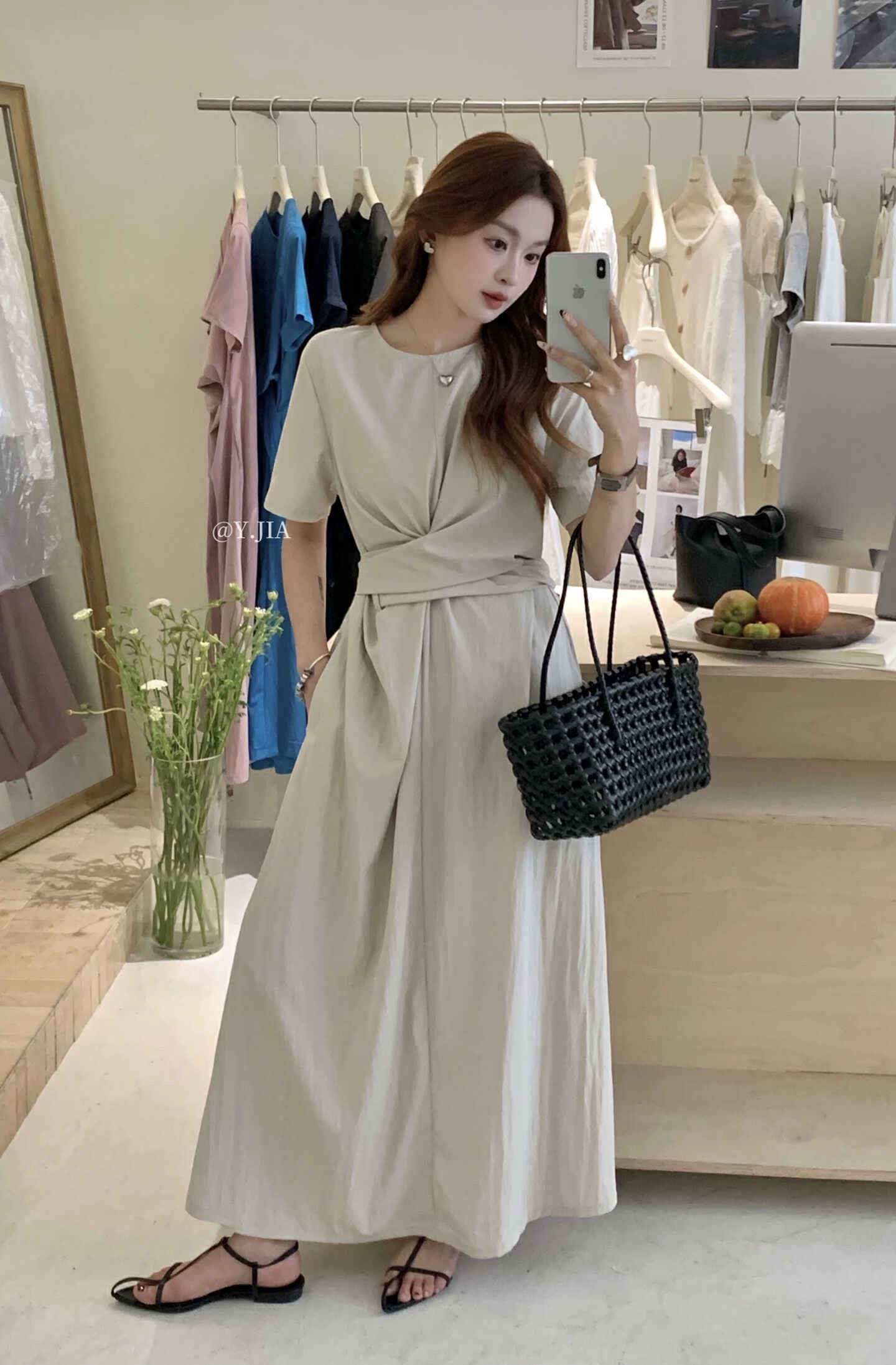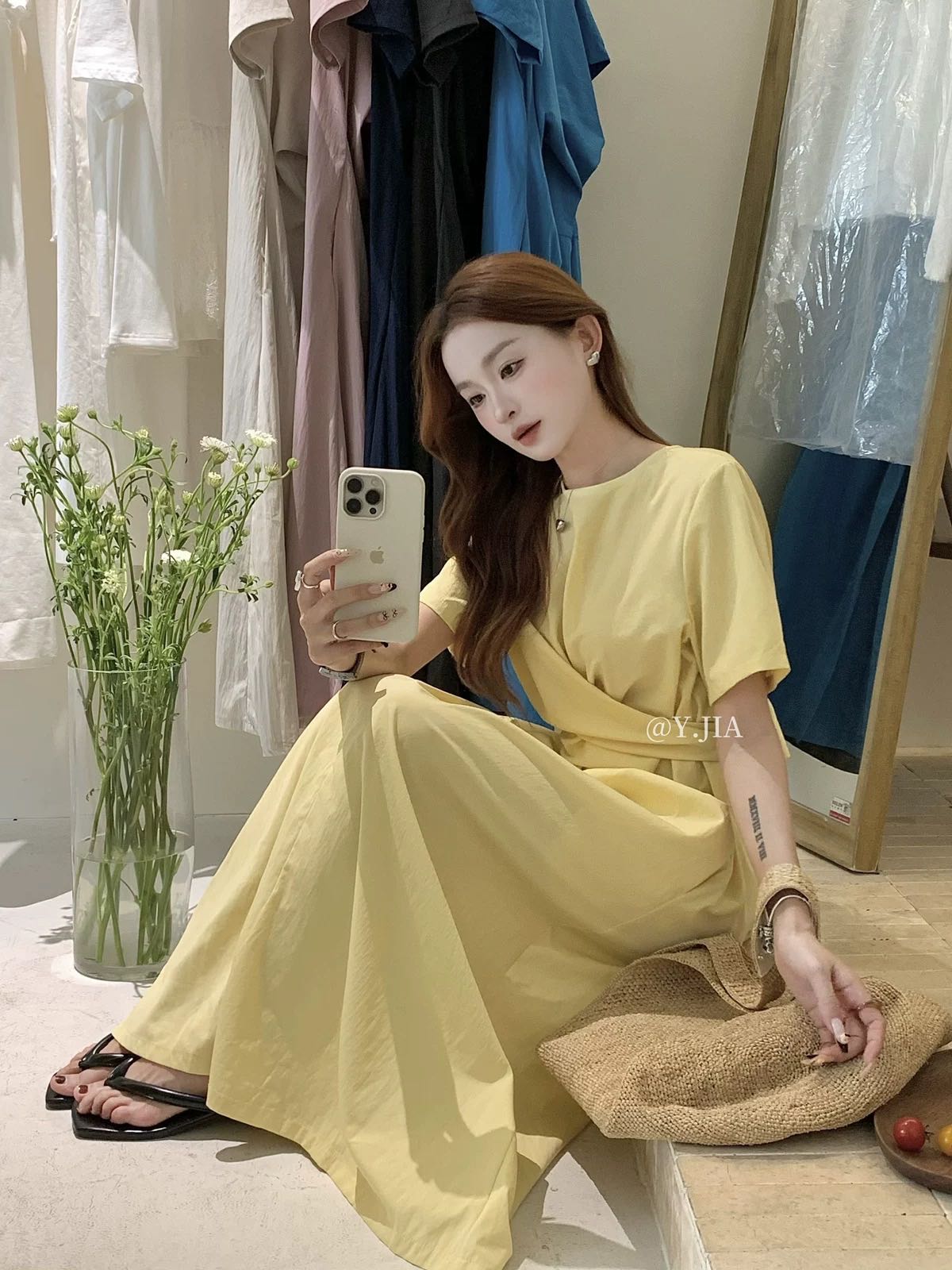 【GZ】无忧购法式温柔交叉系带蝴蝶结收腰a字连衣裙1953(截单后3-5天发货)